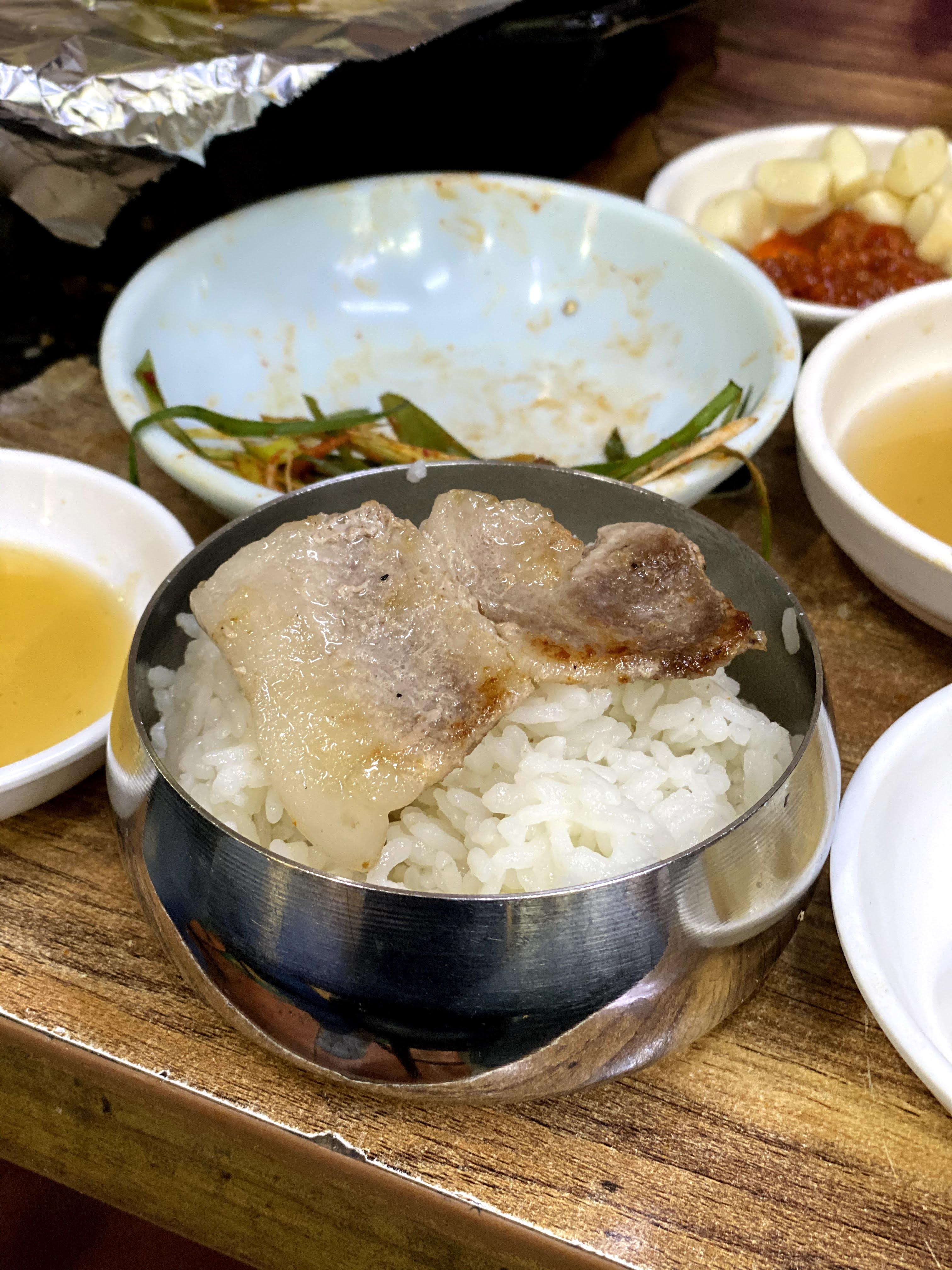 고소한 삼겹을 안주로 소주한잔 넘기니 슬슬 탄수화물 생각도 난다.