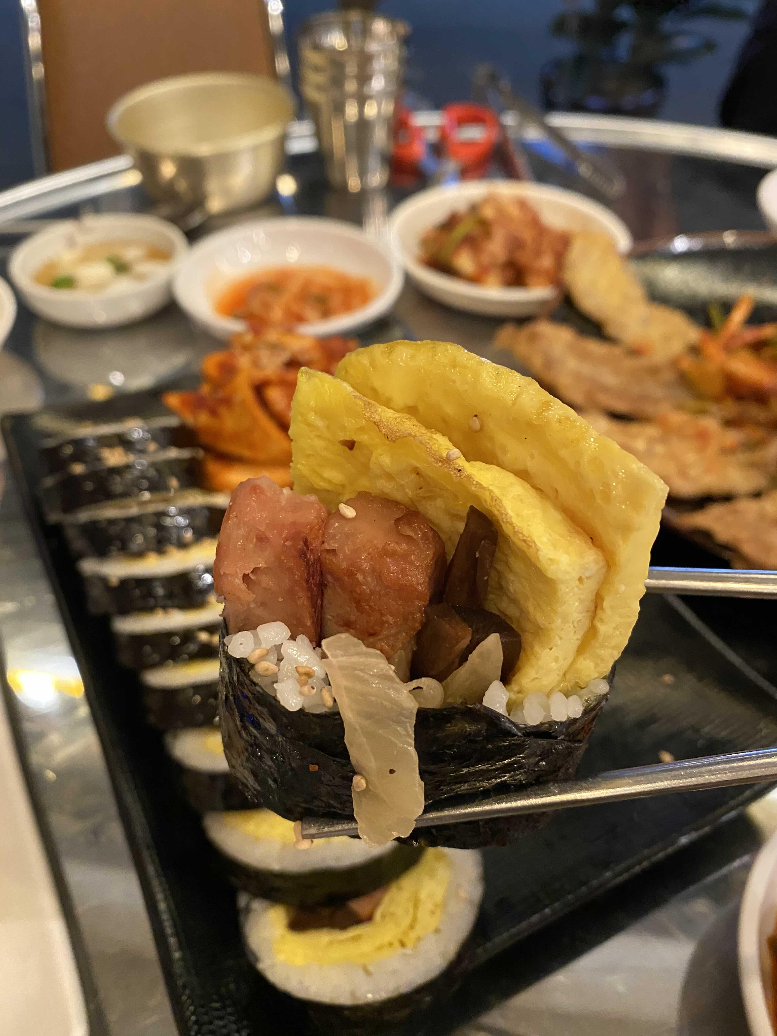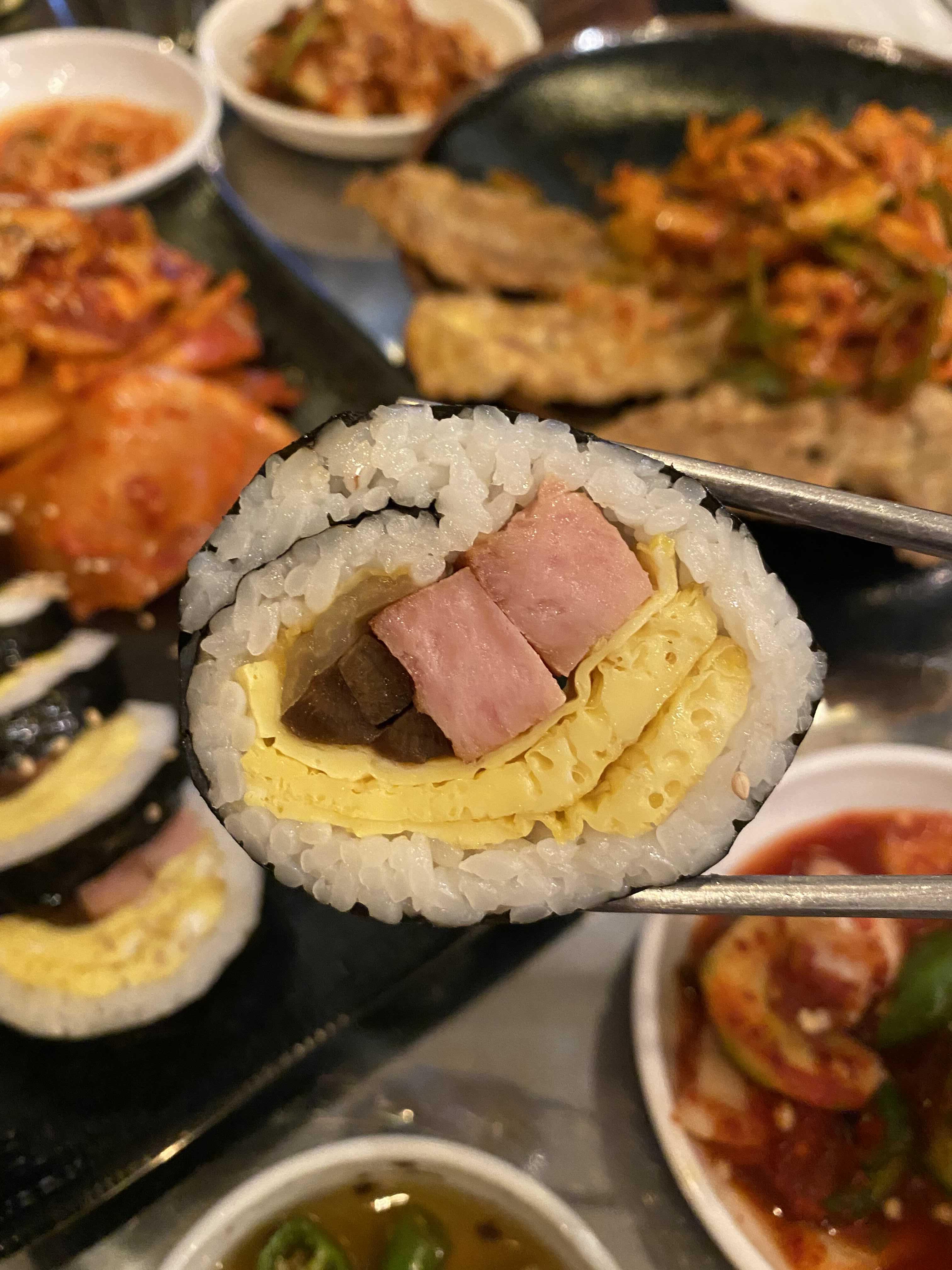 아무리 배가 불러도 탄수화물, 특히 김밥을 거부할 수는 없다.