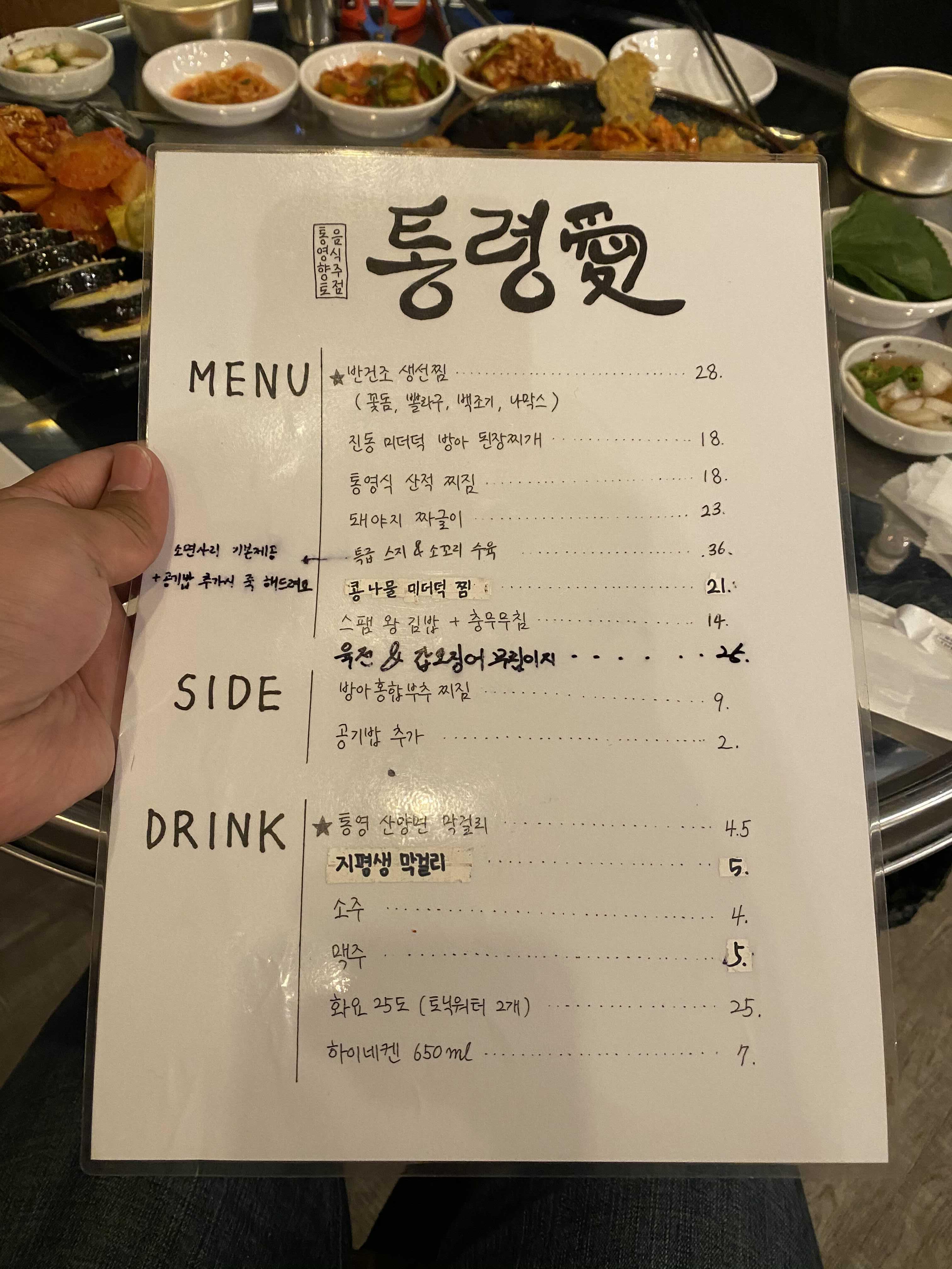 오픈 초기에 눈여겨 봤던 통영식 유곽은 메뉴에서 빠져 맛볼수는 없었고, 시그니처인 소꼬리수육과 반건조생선찜은 배가 불러 다음을 기약 해 본다.