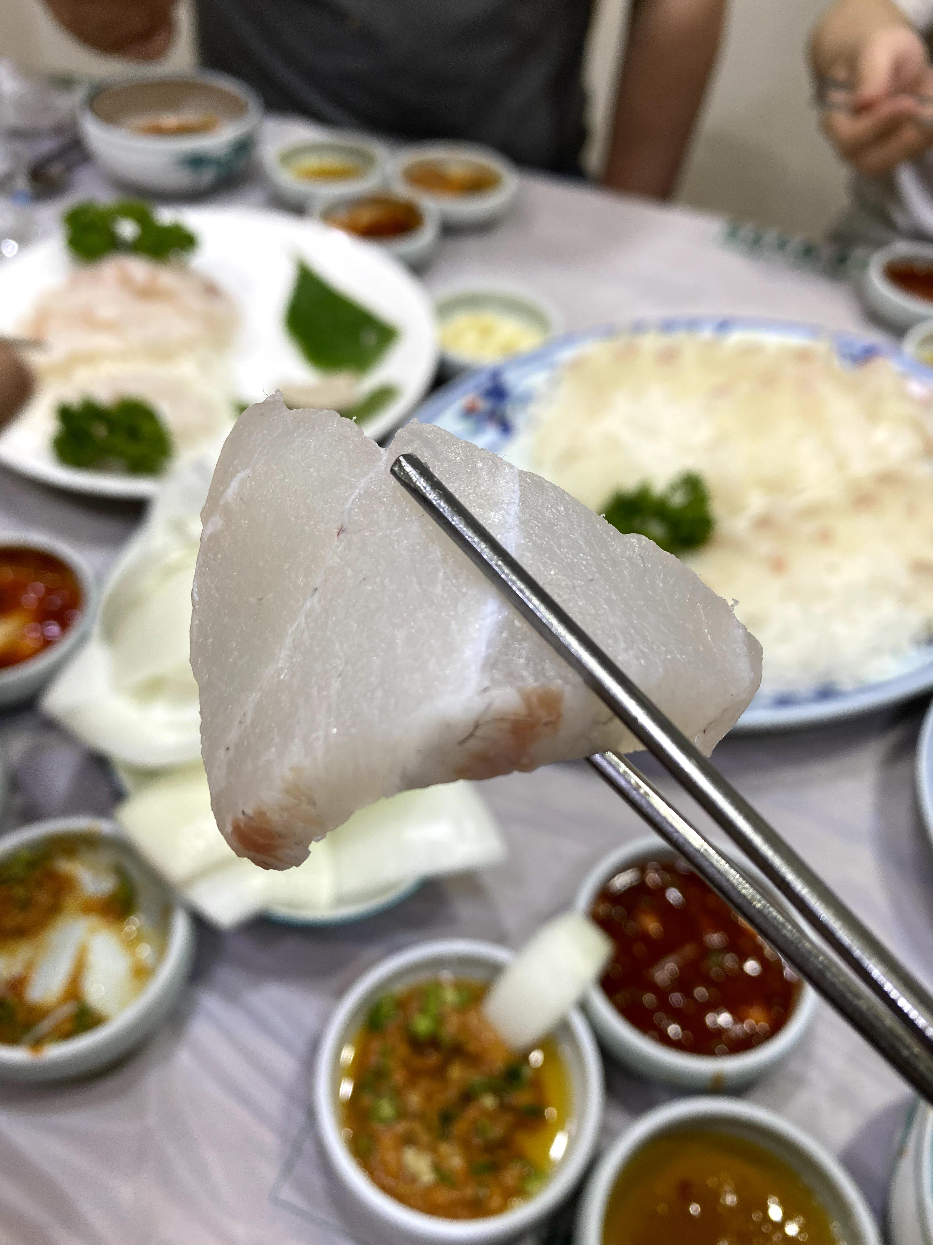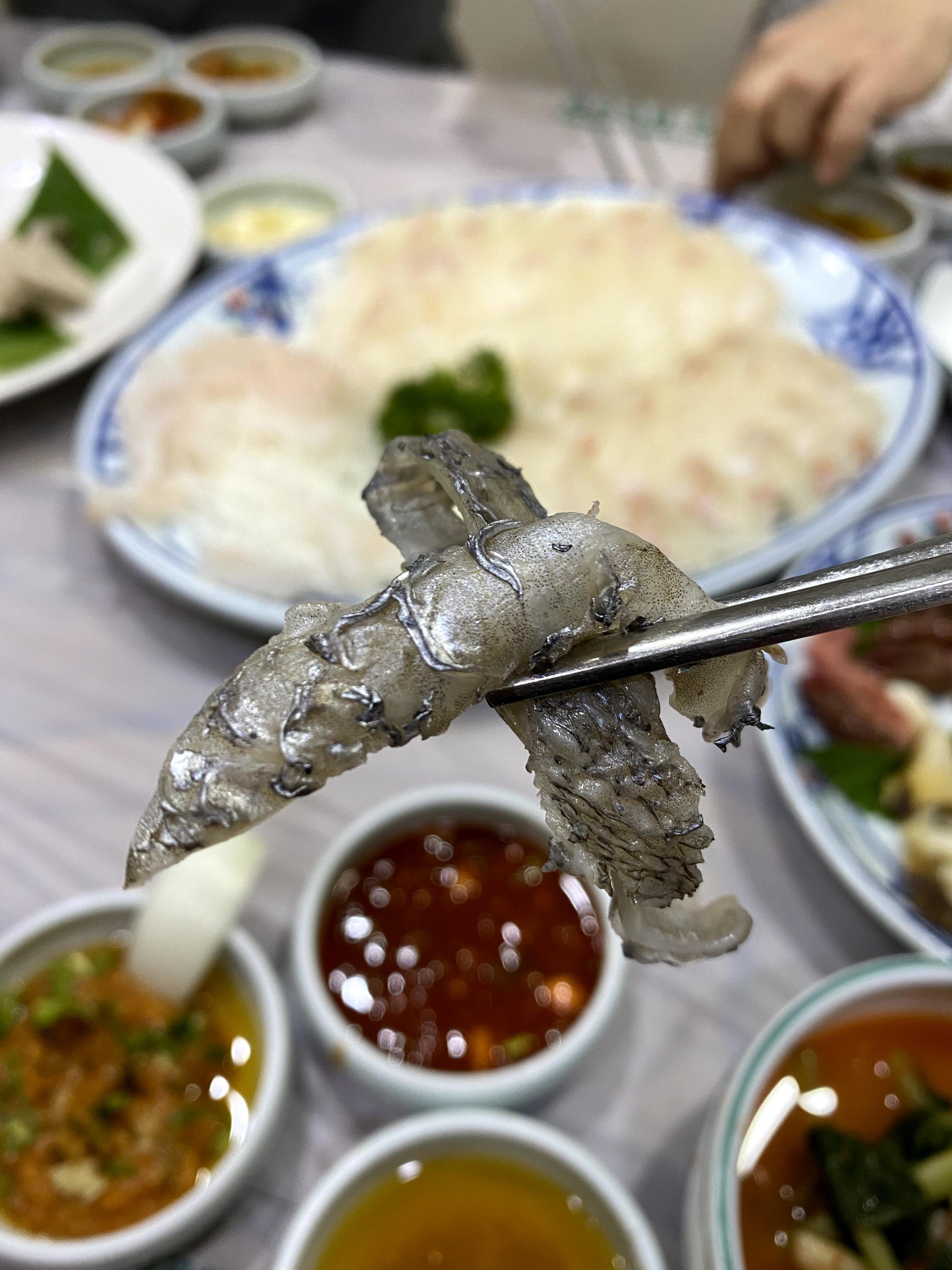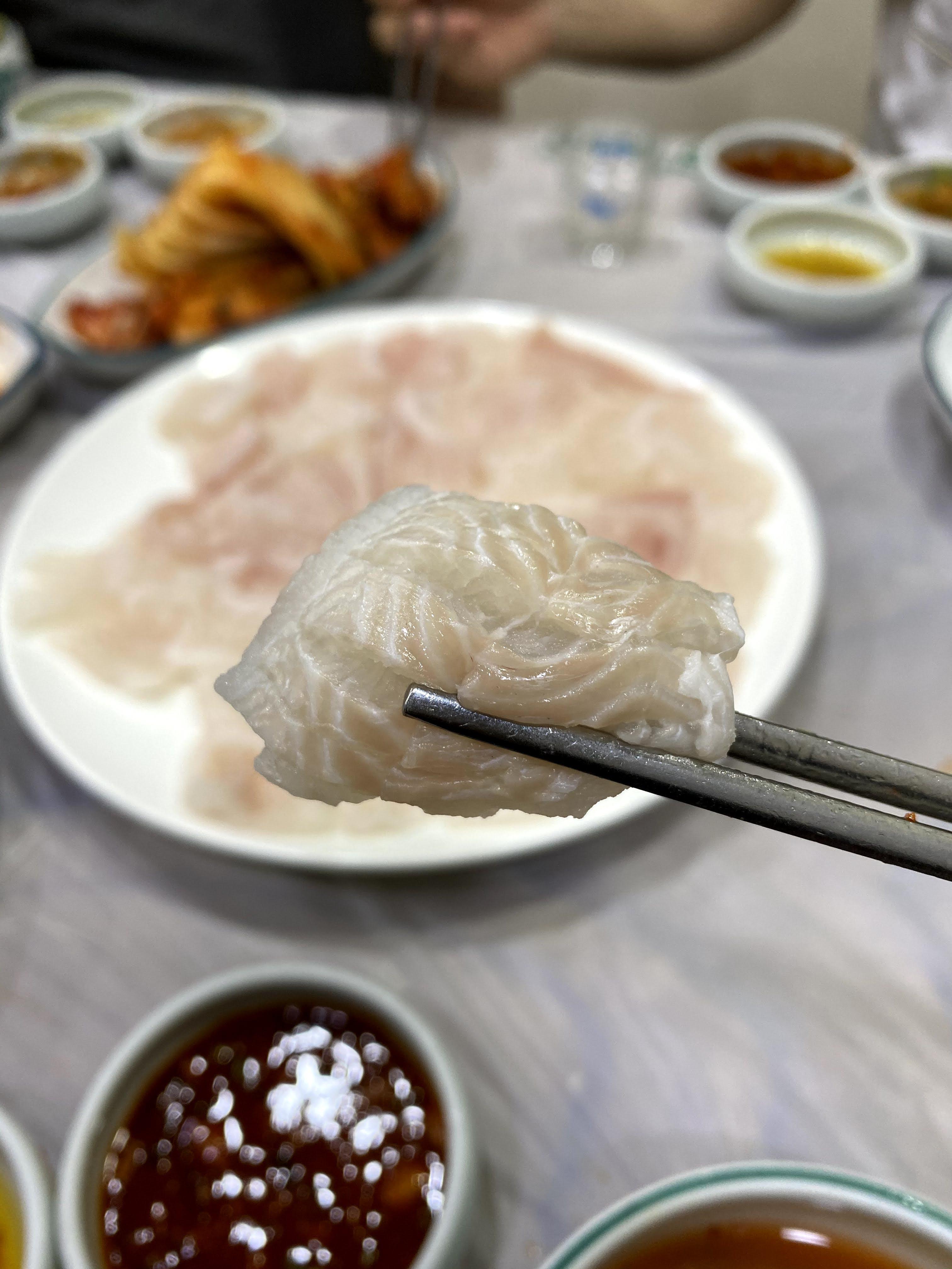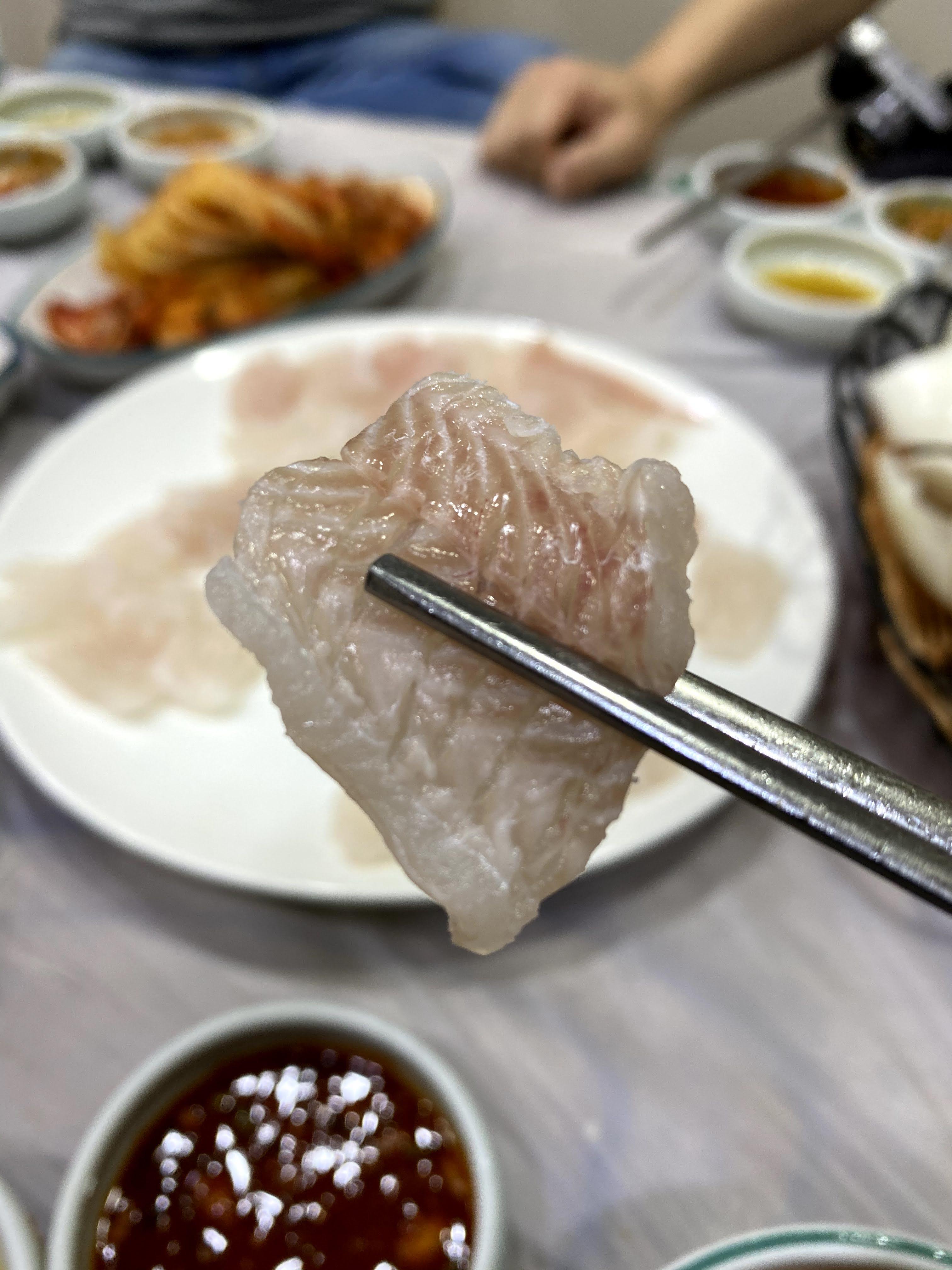 선어라서 그런지, 어종 자체가 그런 식감을 주는지 활 민어를 먹어보지 못해서 원인은 모르겠지만,
