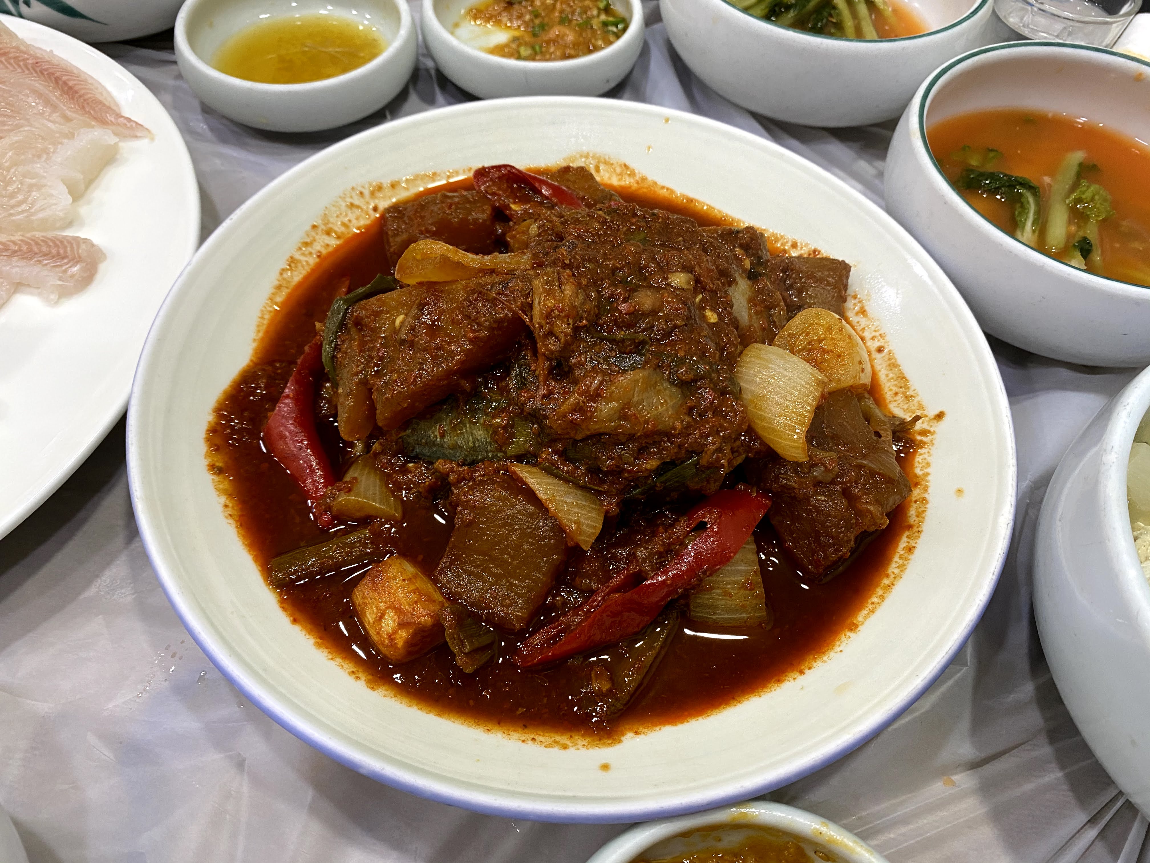 국물의 표면을 보면 민어에서 나온 기름이 보일 정도로 진하다.