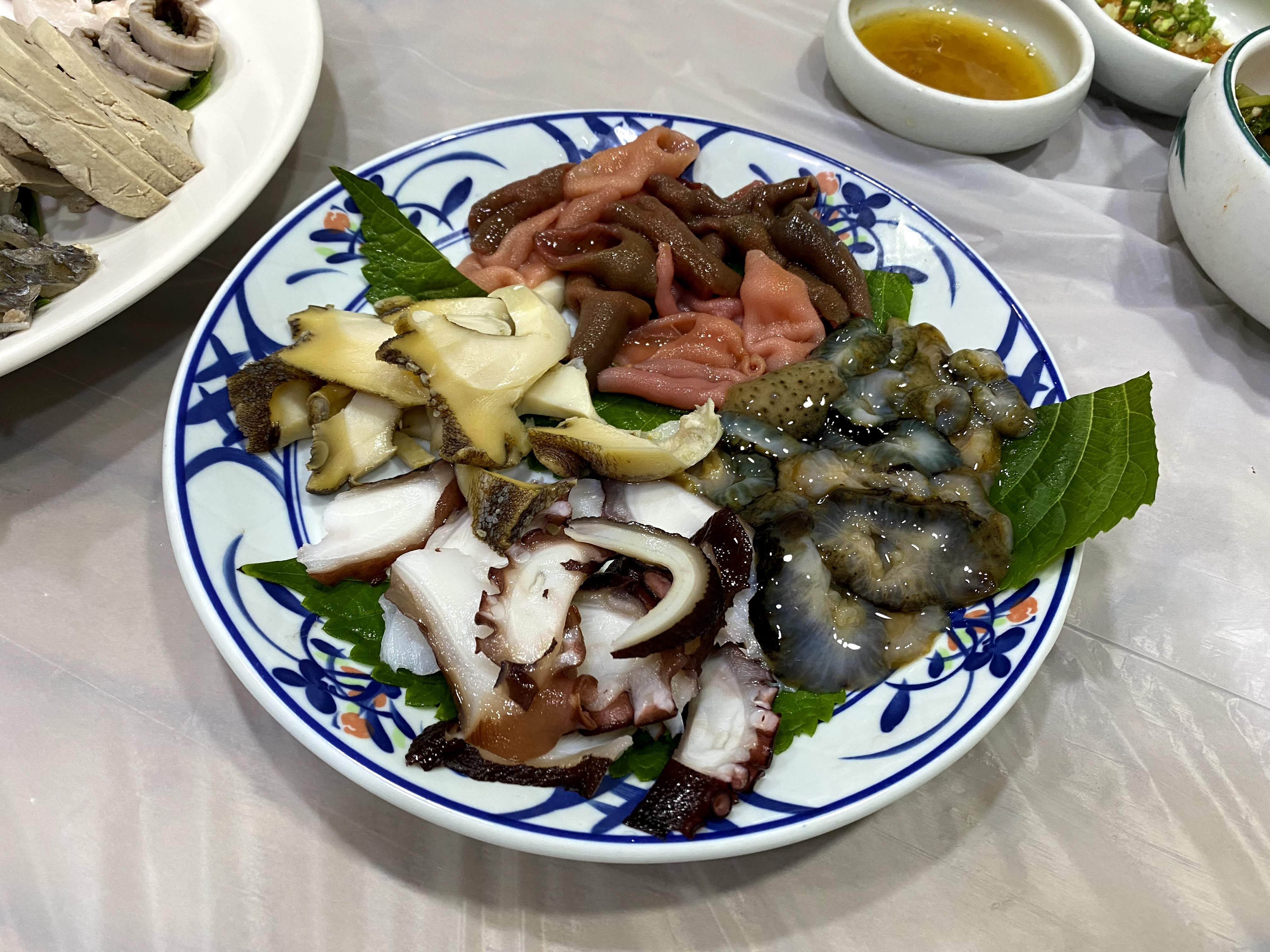 문어, 소라, 해삼, 개불 섞어서 한 접시.