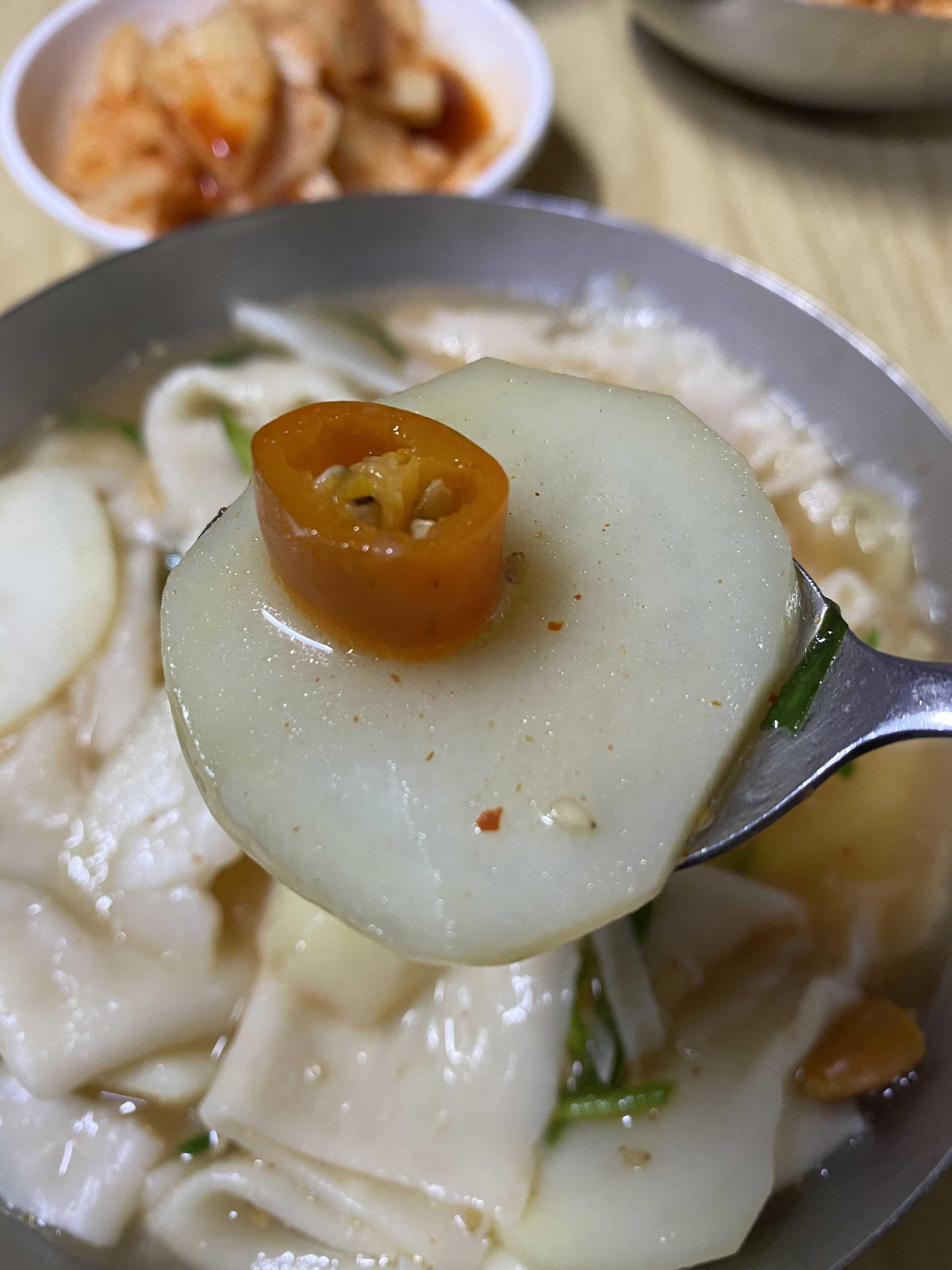 수제비, 칼국수에 감자, 국물까지 하얗고 말은데