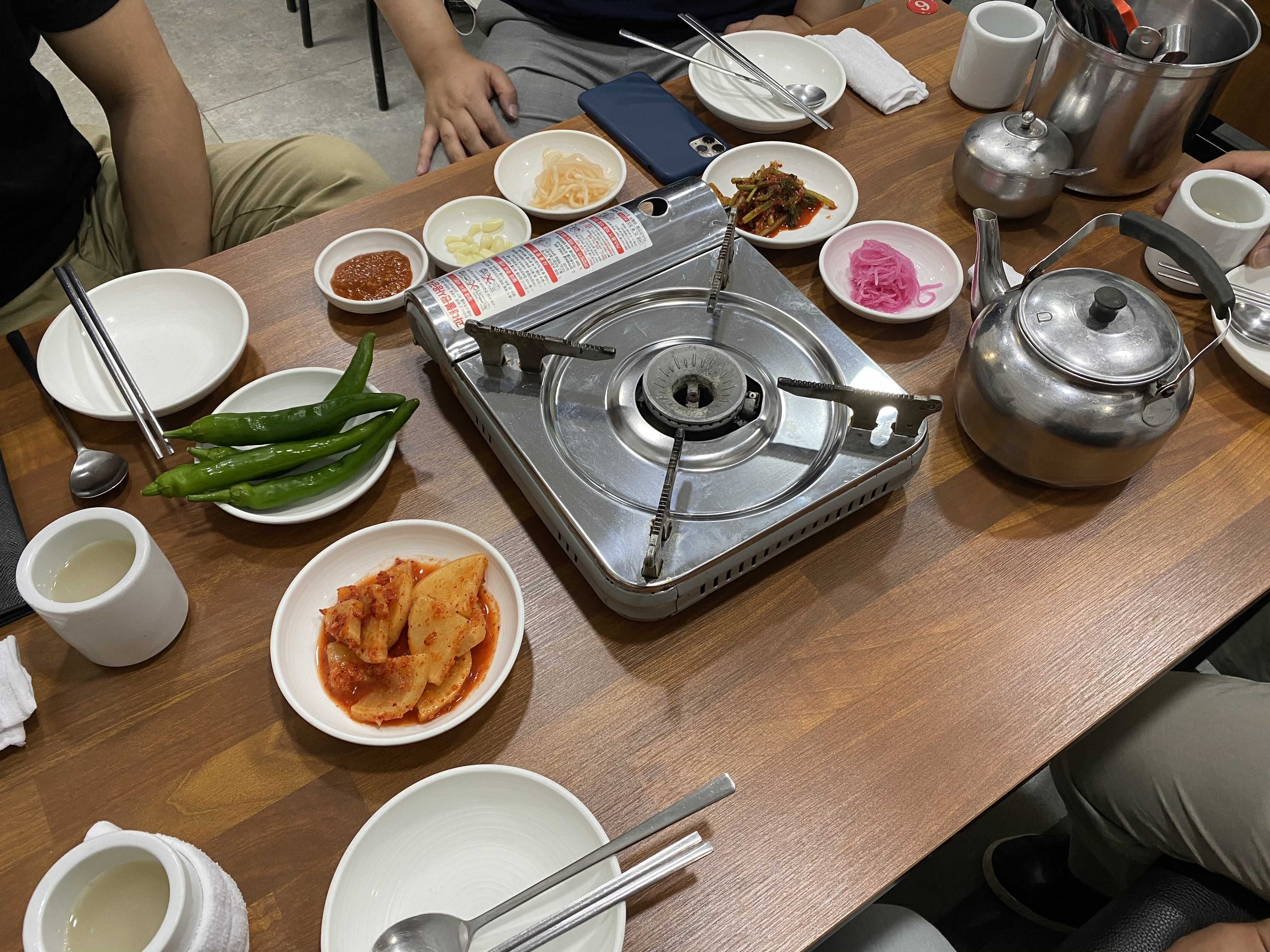 뜨끈뜨끈 구수하고 짭조름한 육수를 홀짝이고 있으니 매운갈비찜용 가스버너와 곁들임을 내어준다.