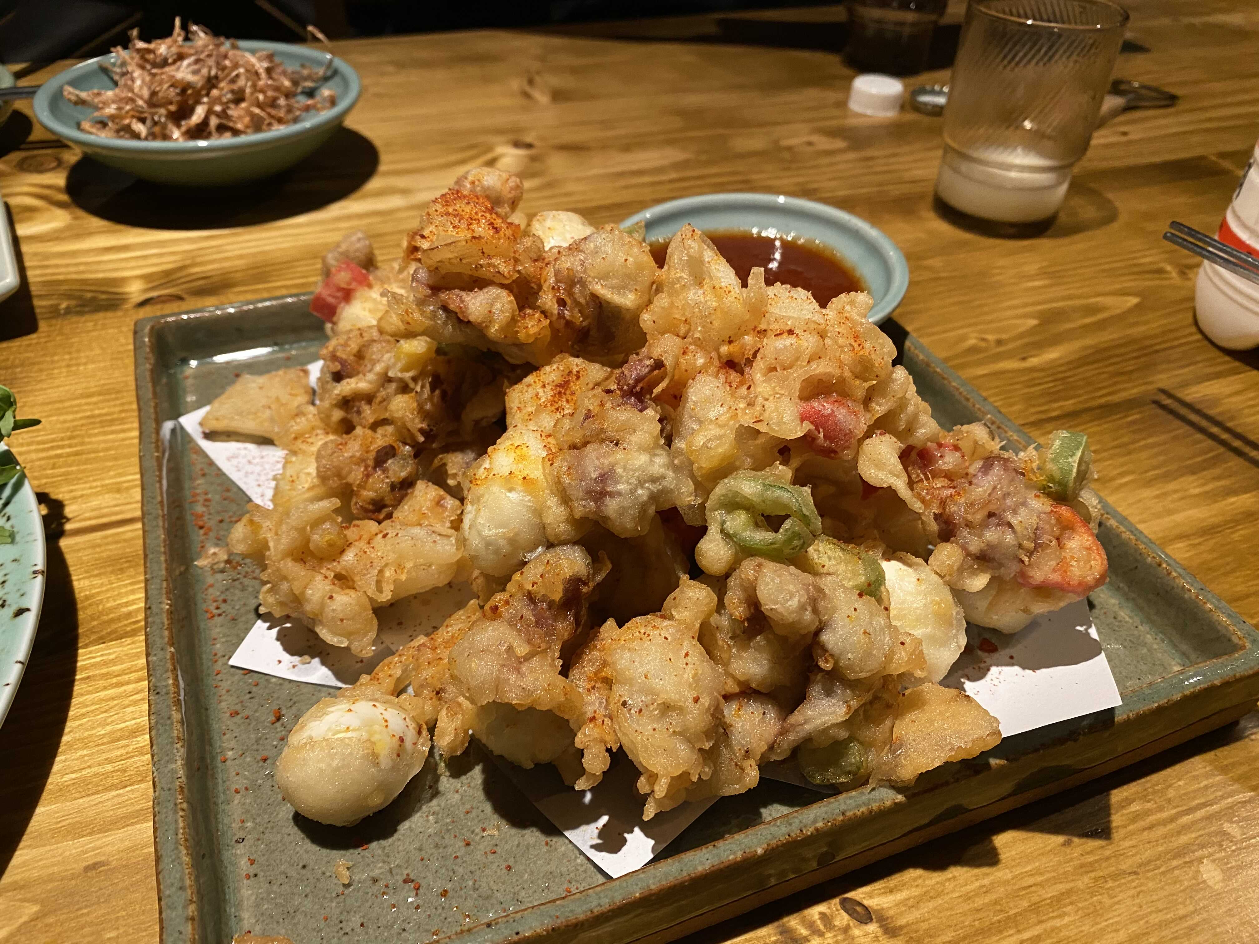 똥집과 메추리알, 양파, 고추 등 메뉴 이름처럼 이것저것 튀겼다.