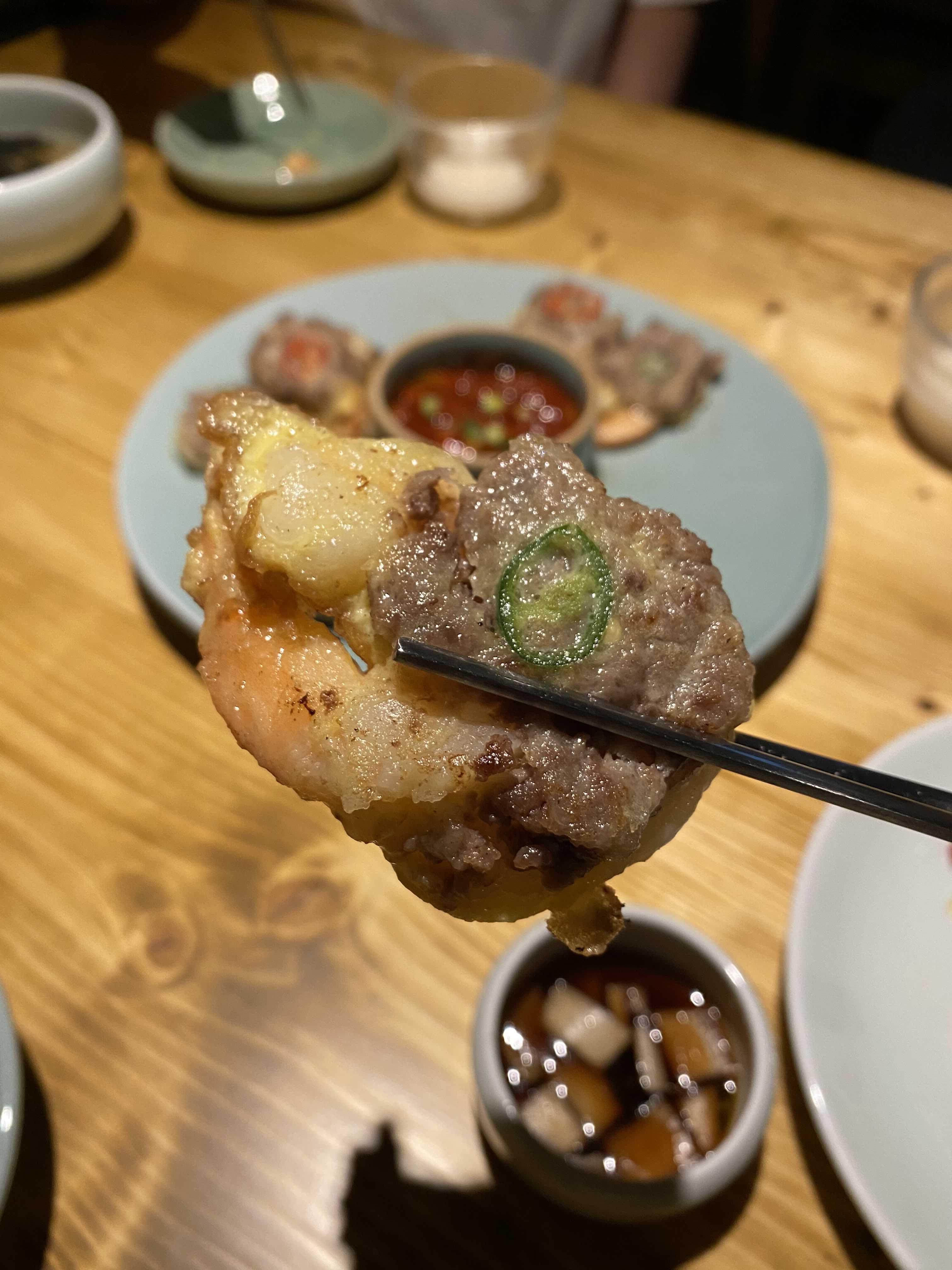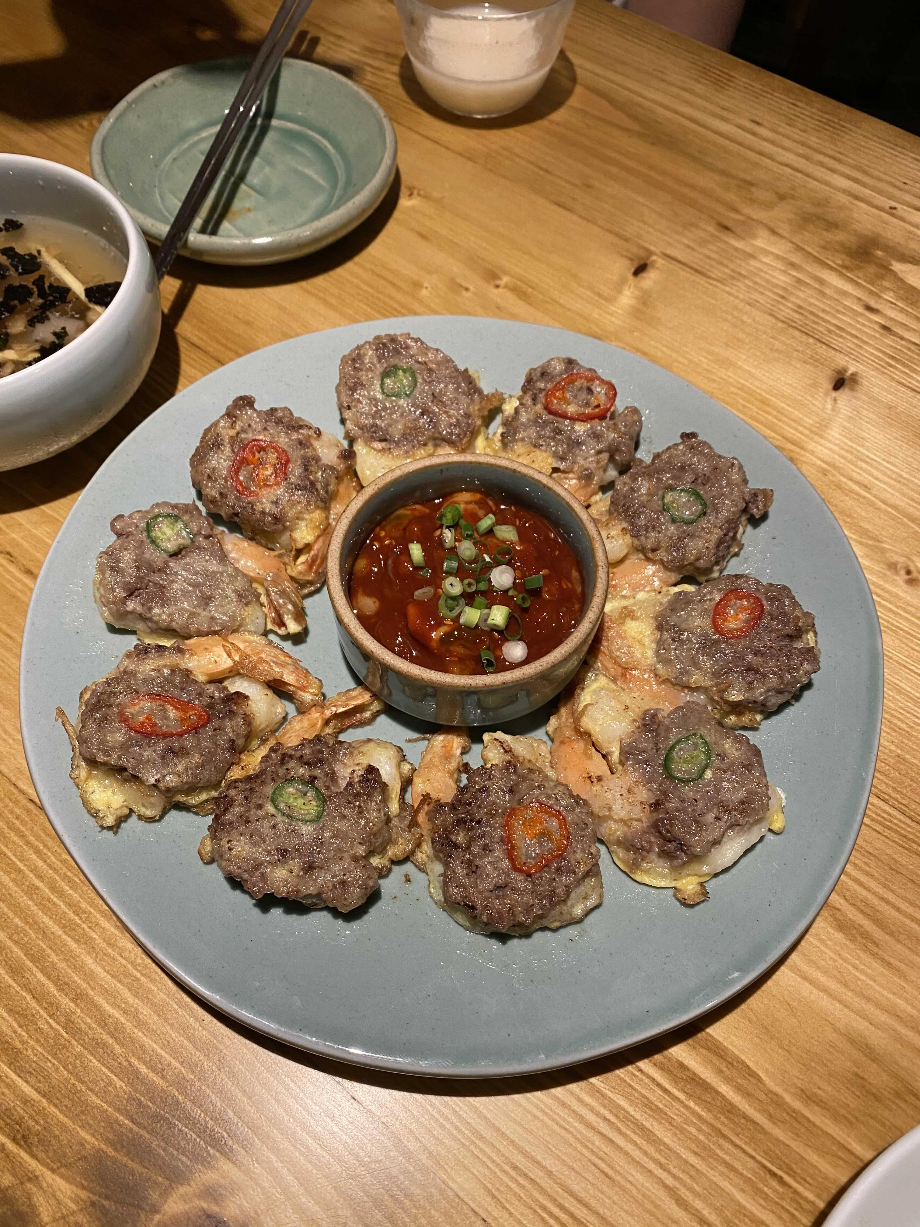 새우 위에 다진고기를 올려 부친 통새우 완자전.