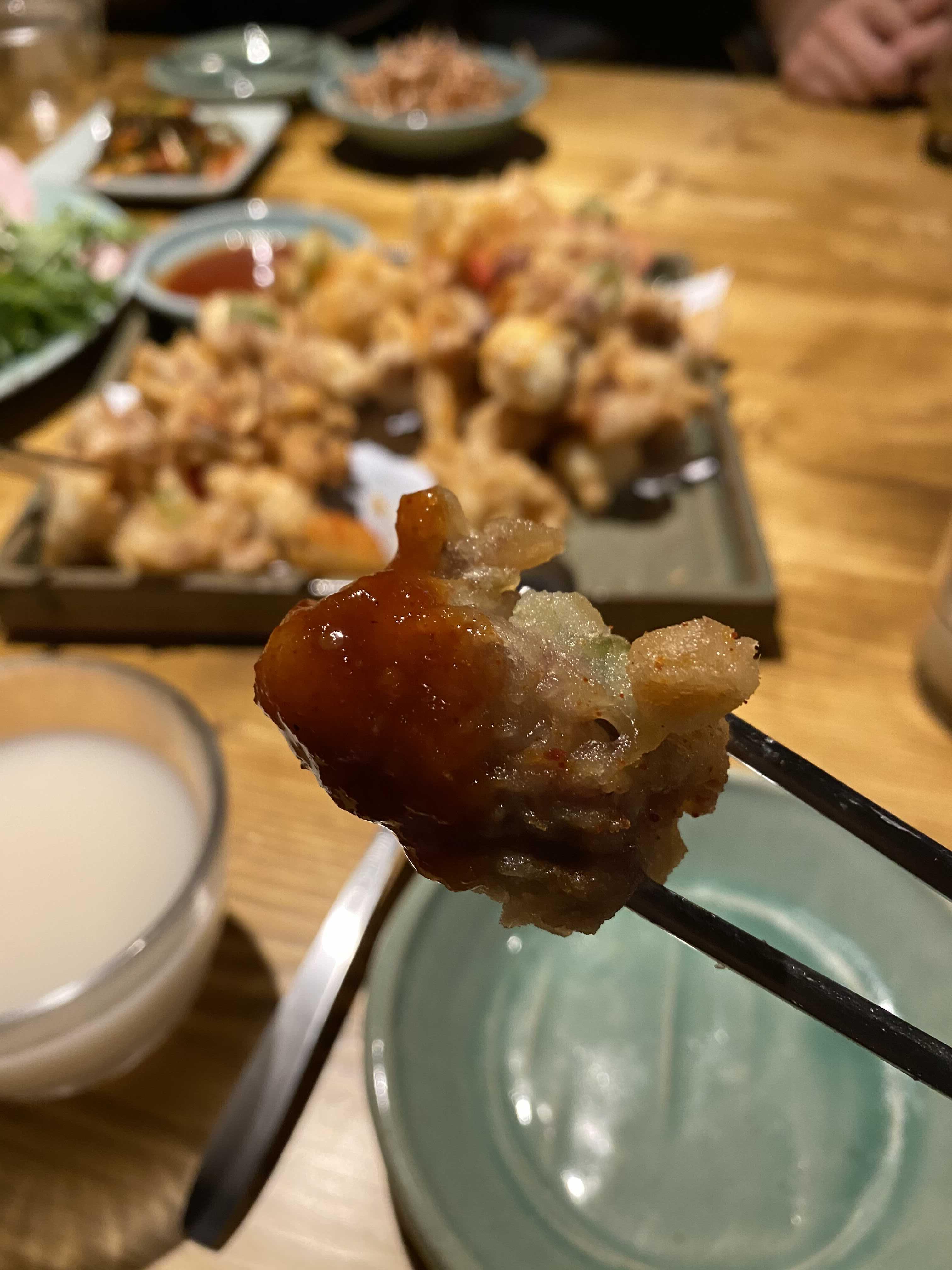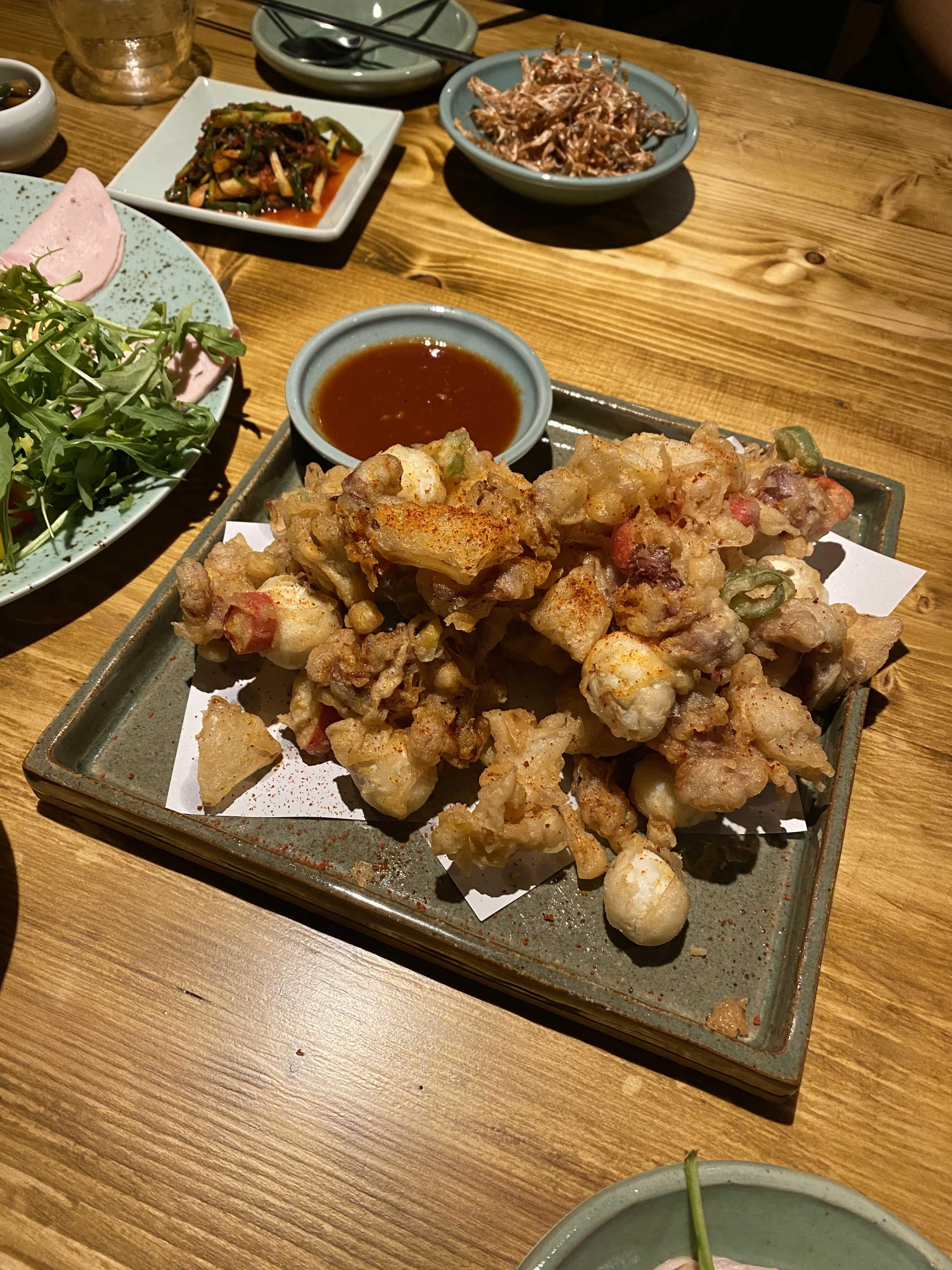 메뉴가 나왔을 때의 느낌은 구서동 더조은치킨바베큐 똥집튀김의 고급스러운 버전이랄까.