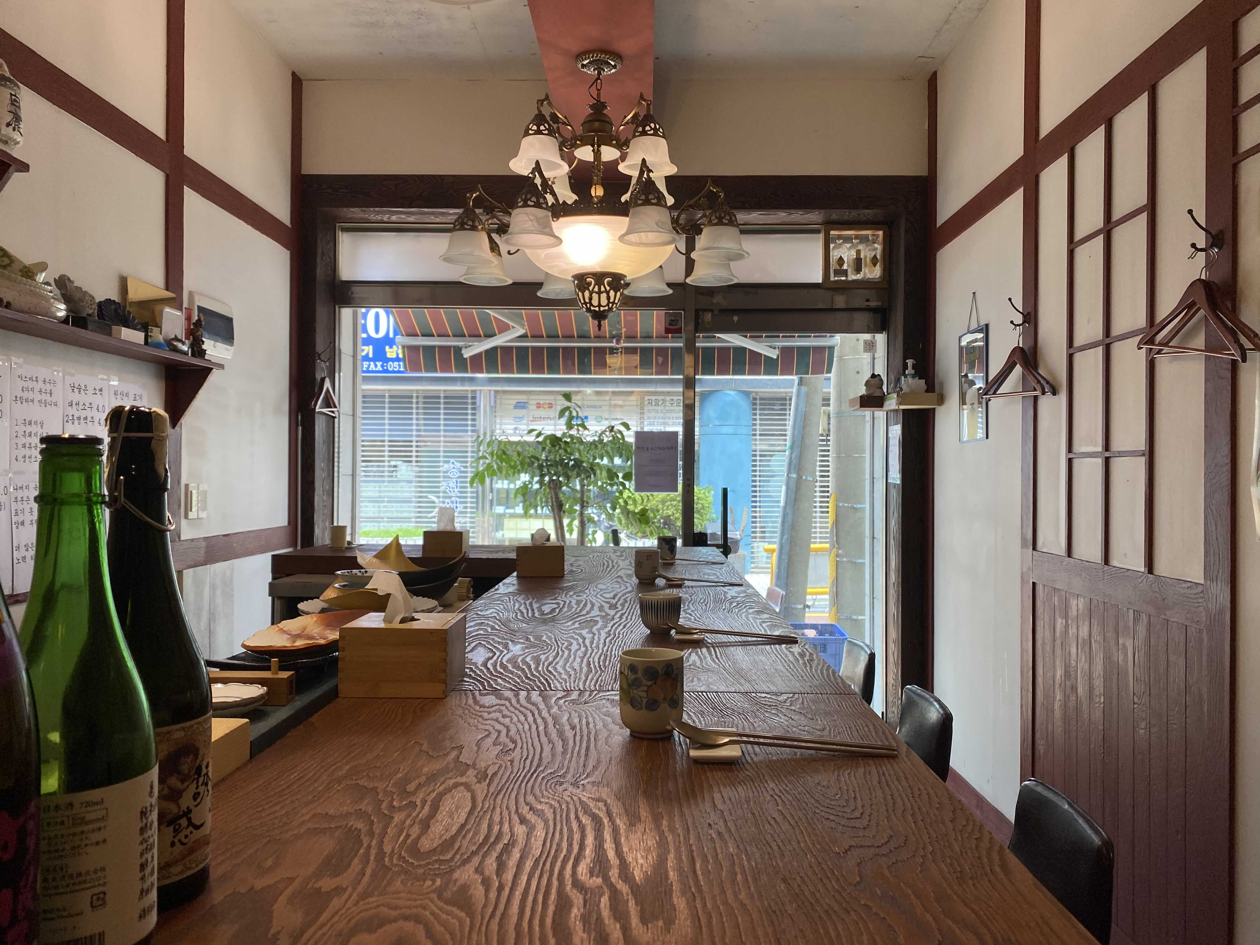 바형 테이블로 이루어진 아담한 가게.