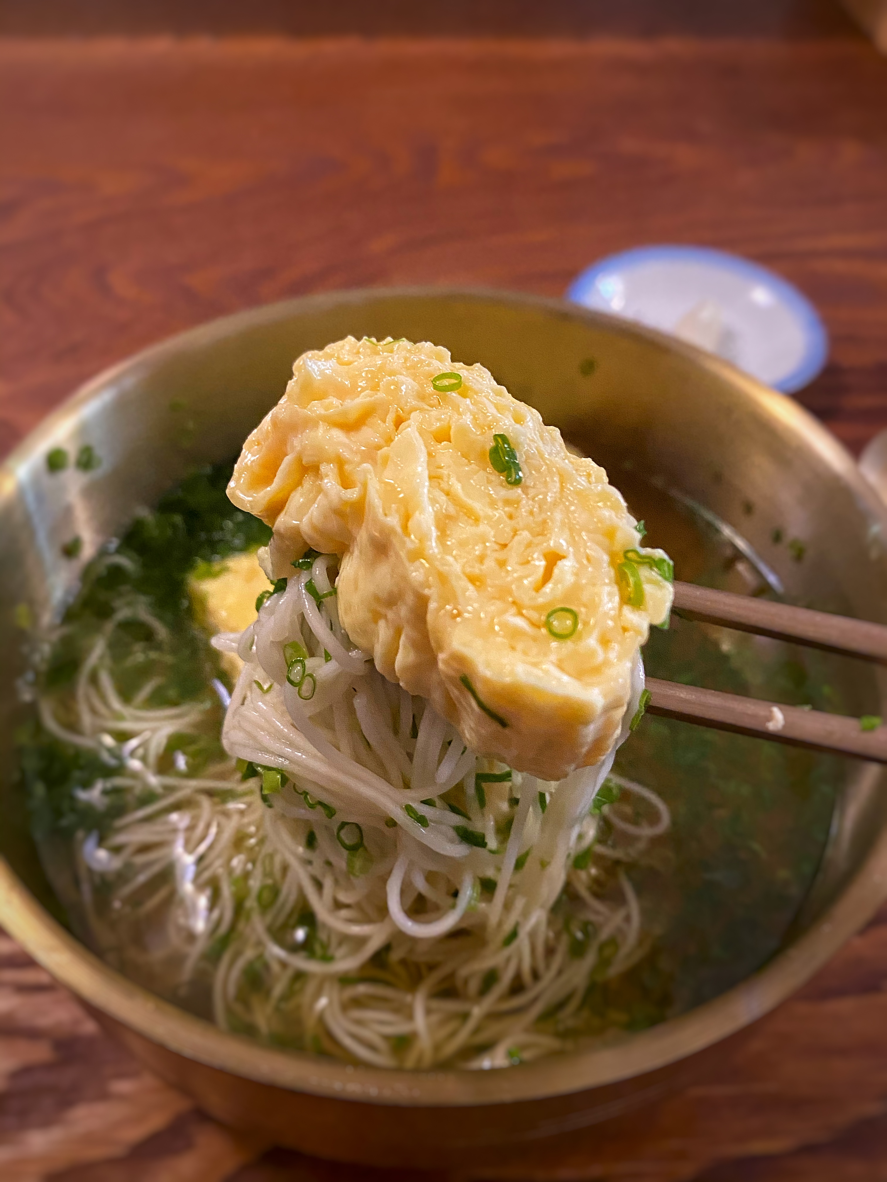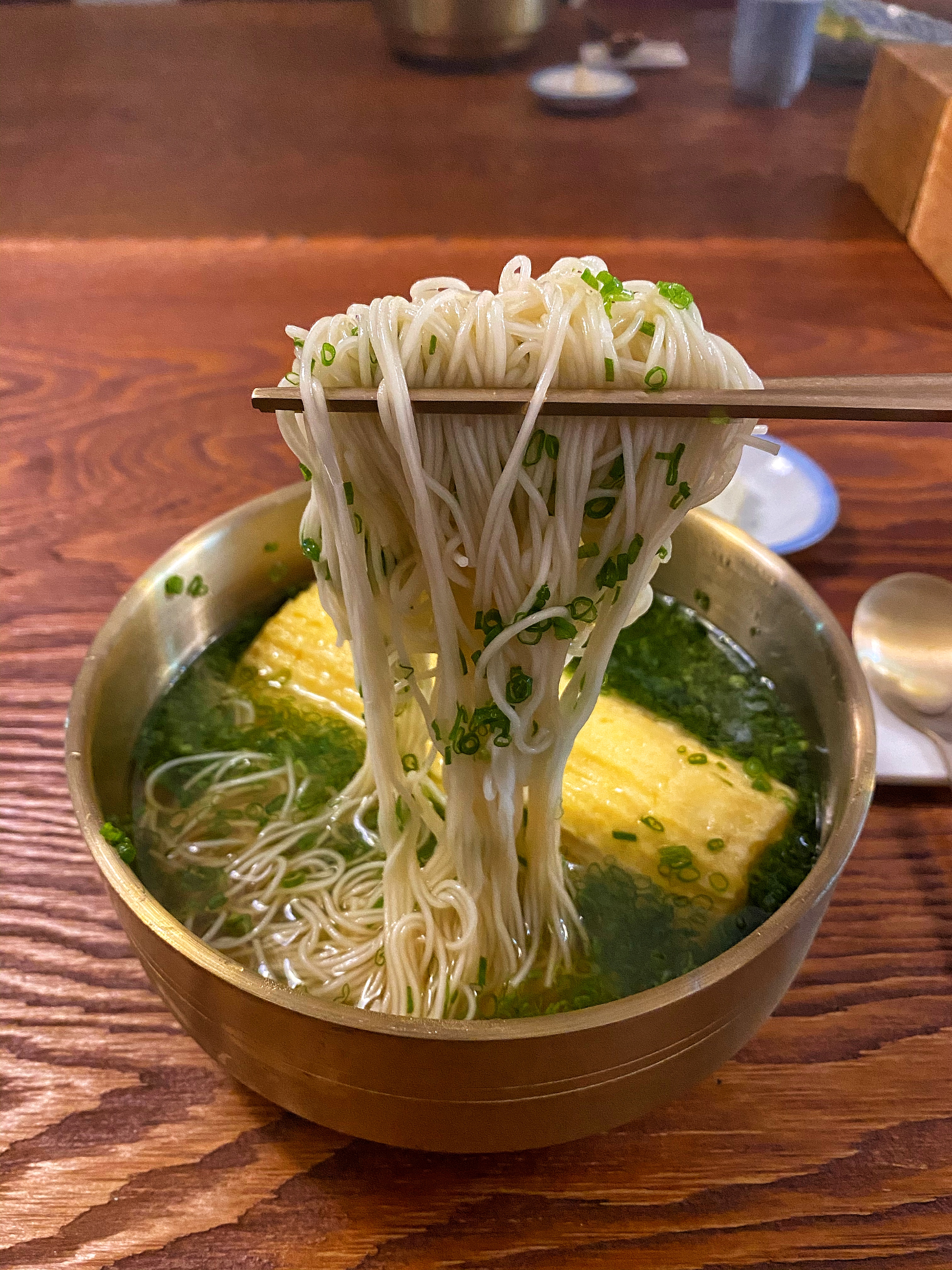 대접에 가느다란 소면을 담고