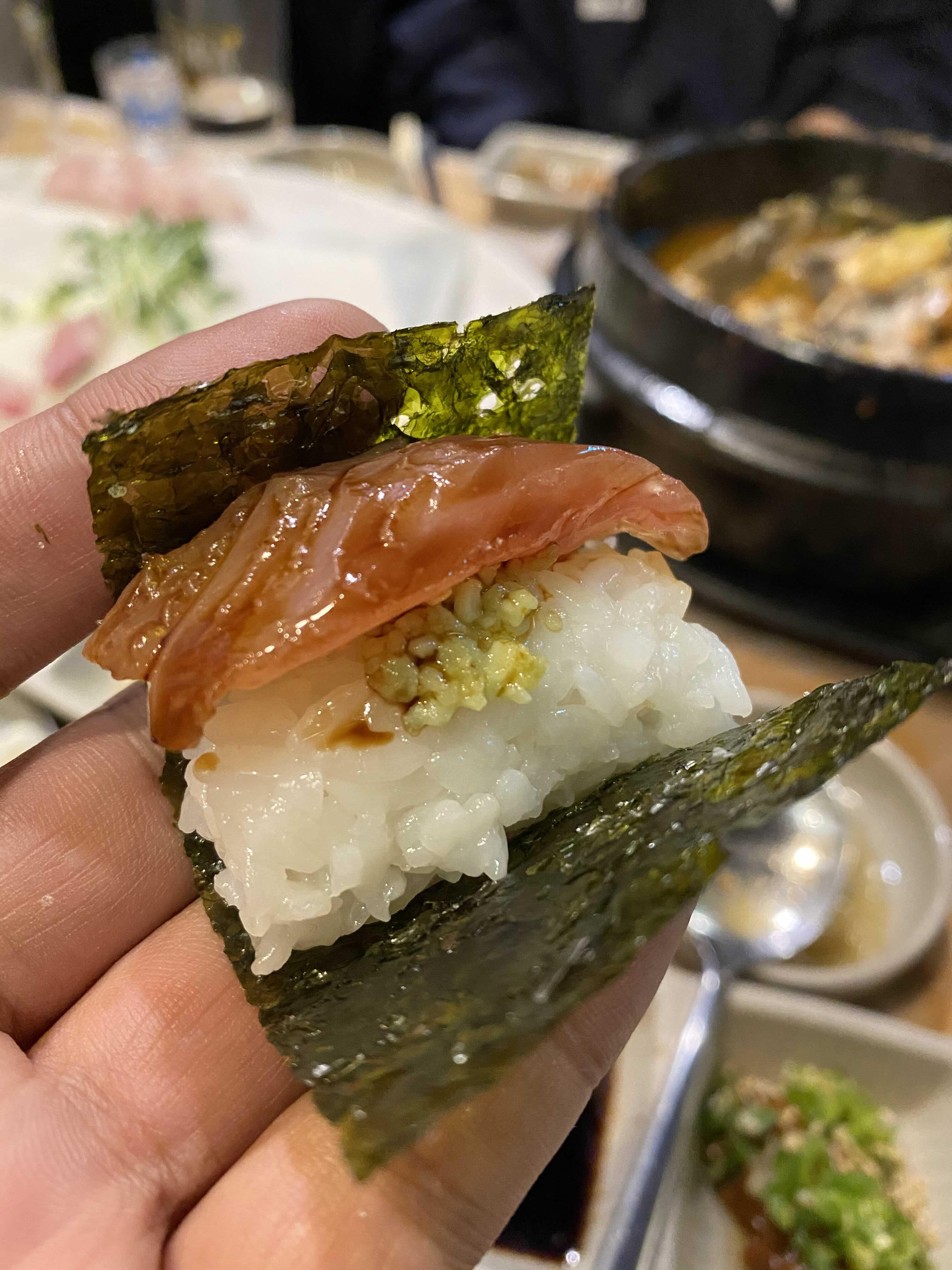 남은 대방어는 초밥을 만들어 술안주.