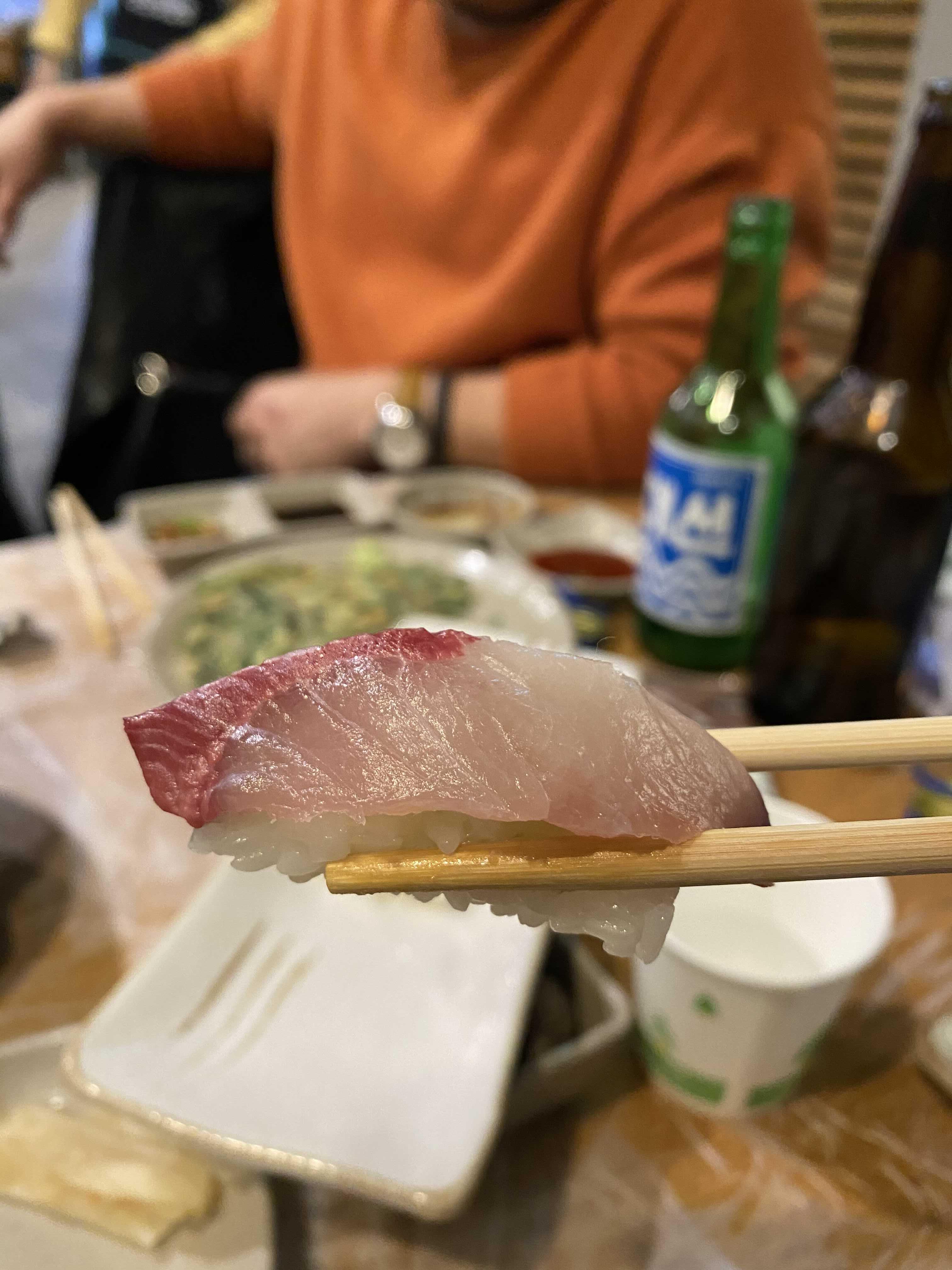 대방어의 기름기에 입이 물린다면, 초간이 된 밥에 대방어회를 올려 초밥을 만들어 먹으면 딱 좋다.