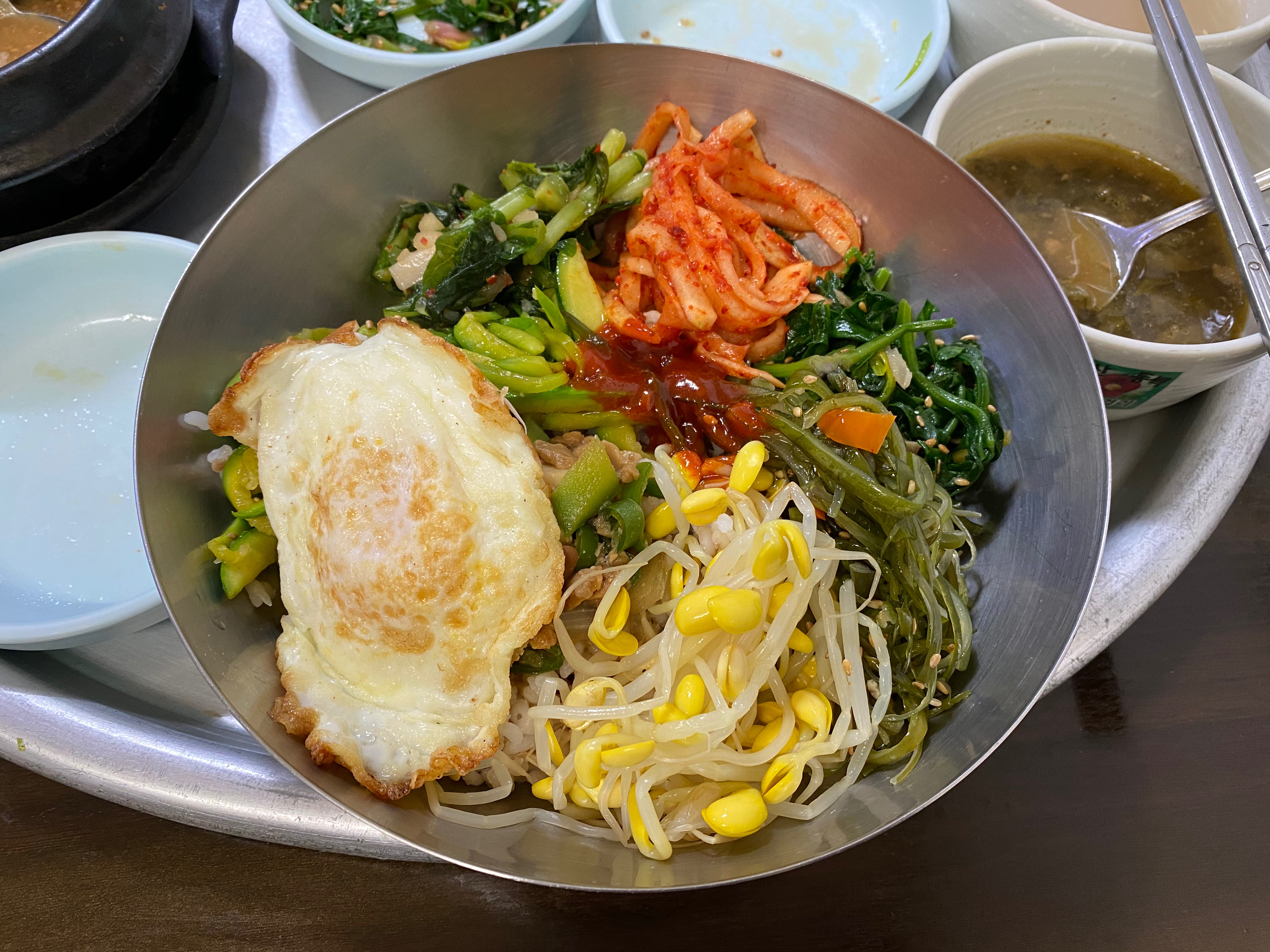 6천원짜리 보리밥 한 상에 반숙 계란후라이가 만족도를 올려준다.
