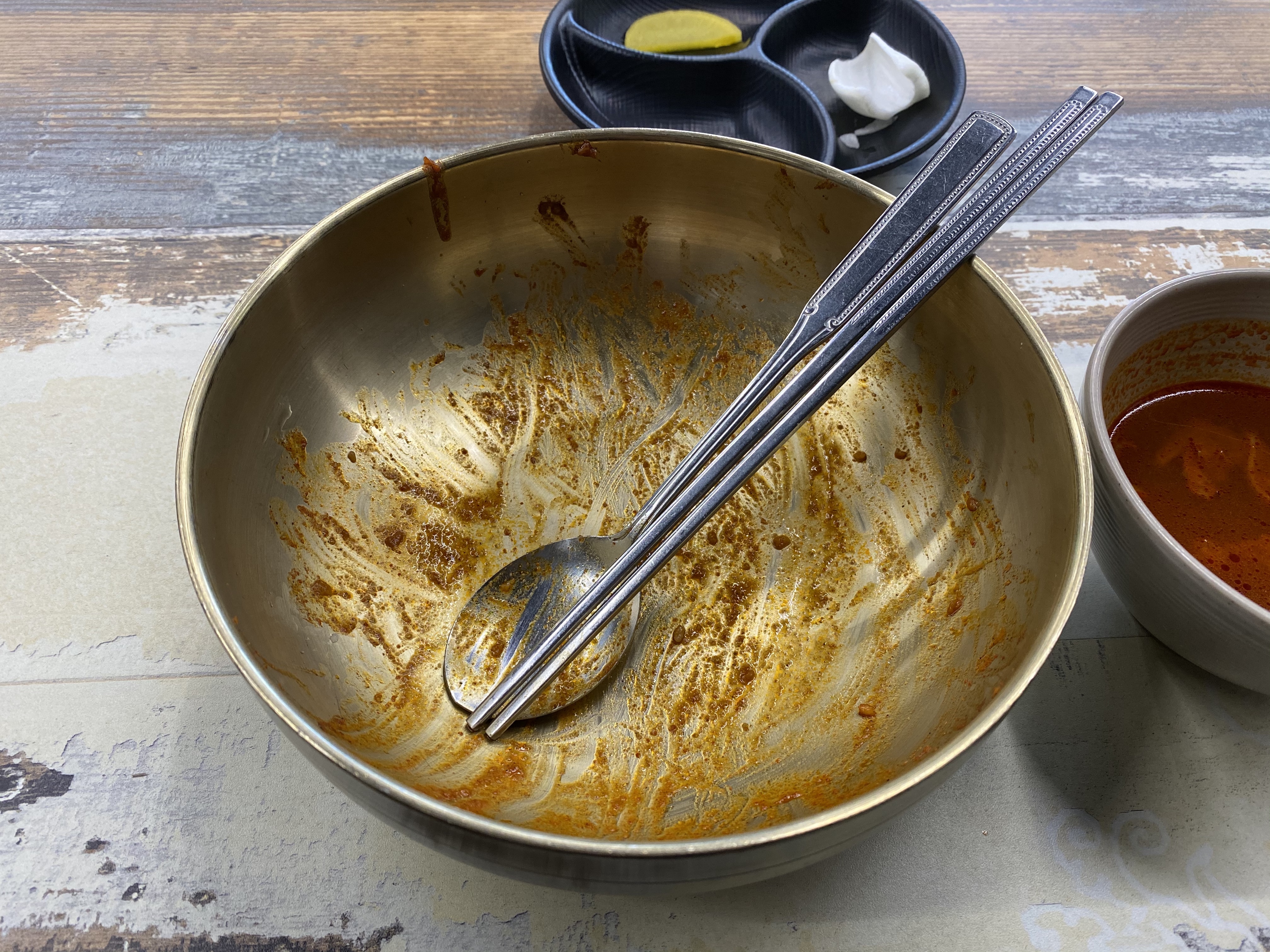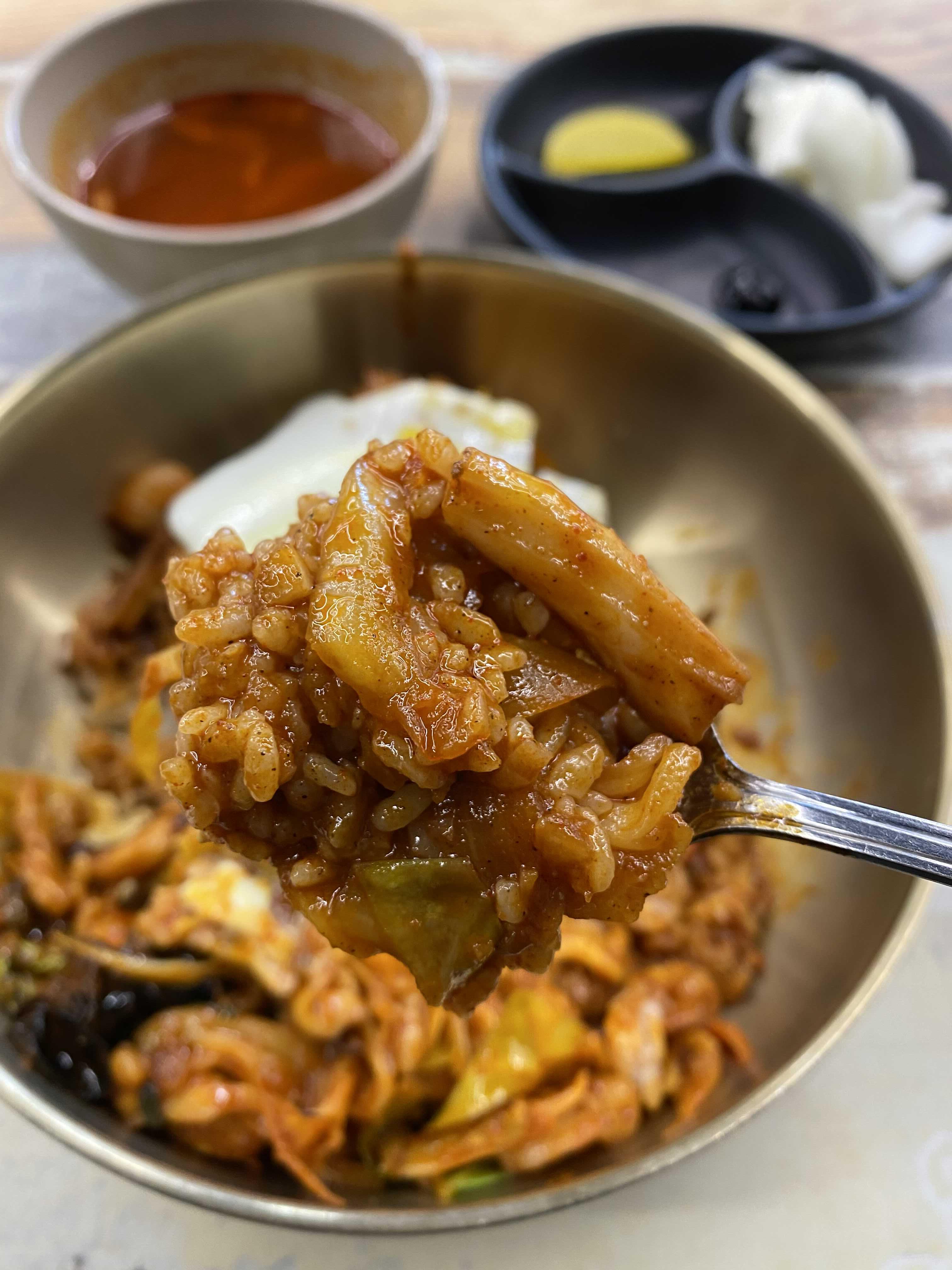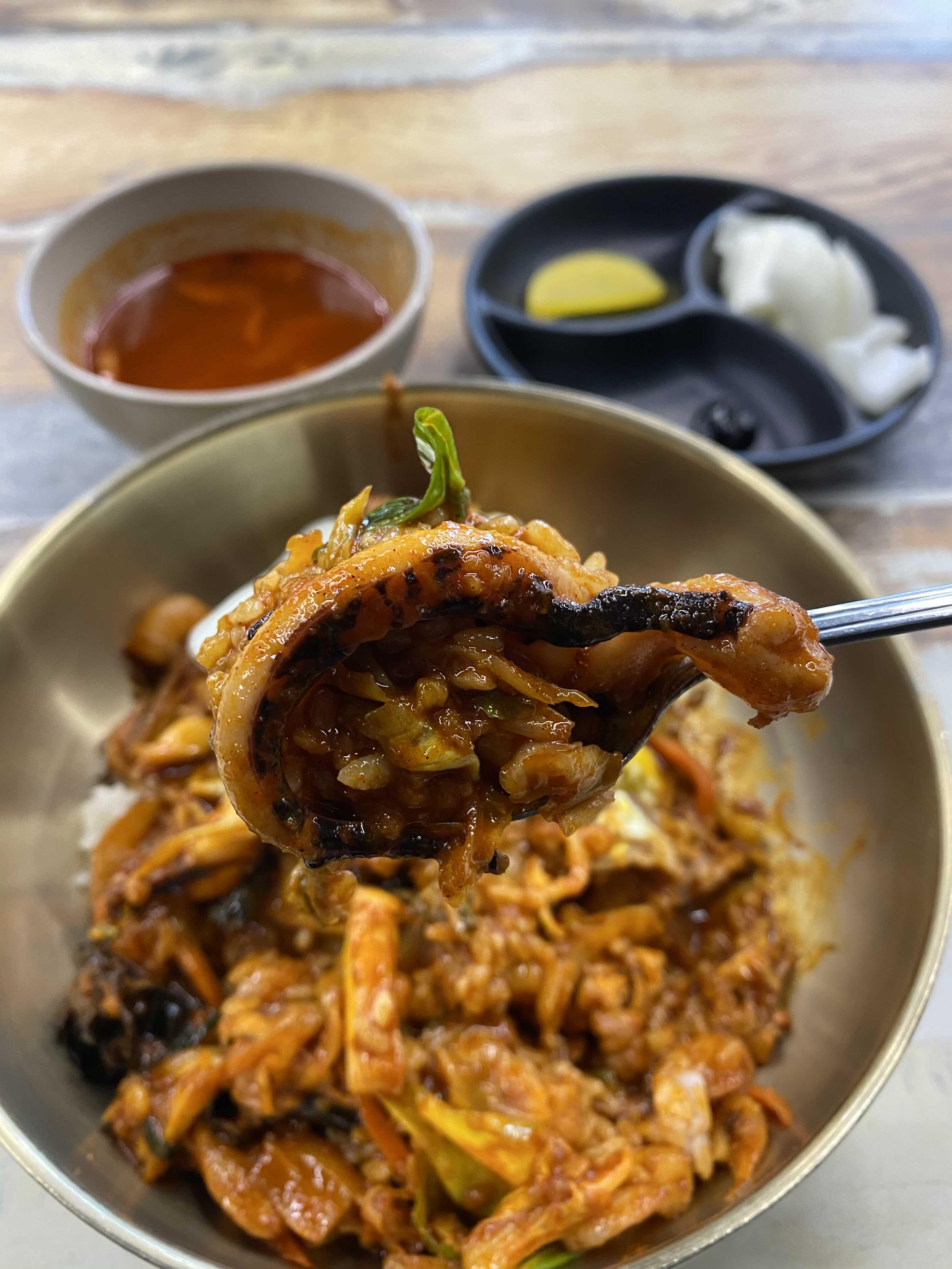 제법 사이즈가 큰 오징어다리와 함께 한 숟가락을 뜬다. 배달로 주문해 먹었을 때 보다 양념이 그리 맵지 않은 것 같은데라고 생각했지만, 그 것은 오산이었다.