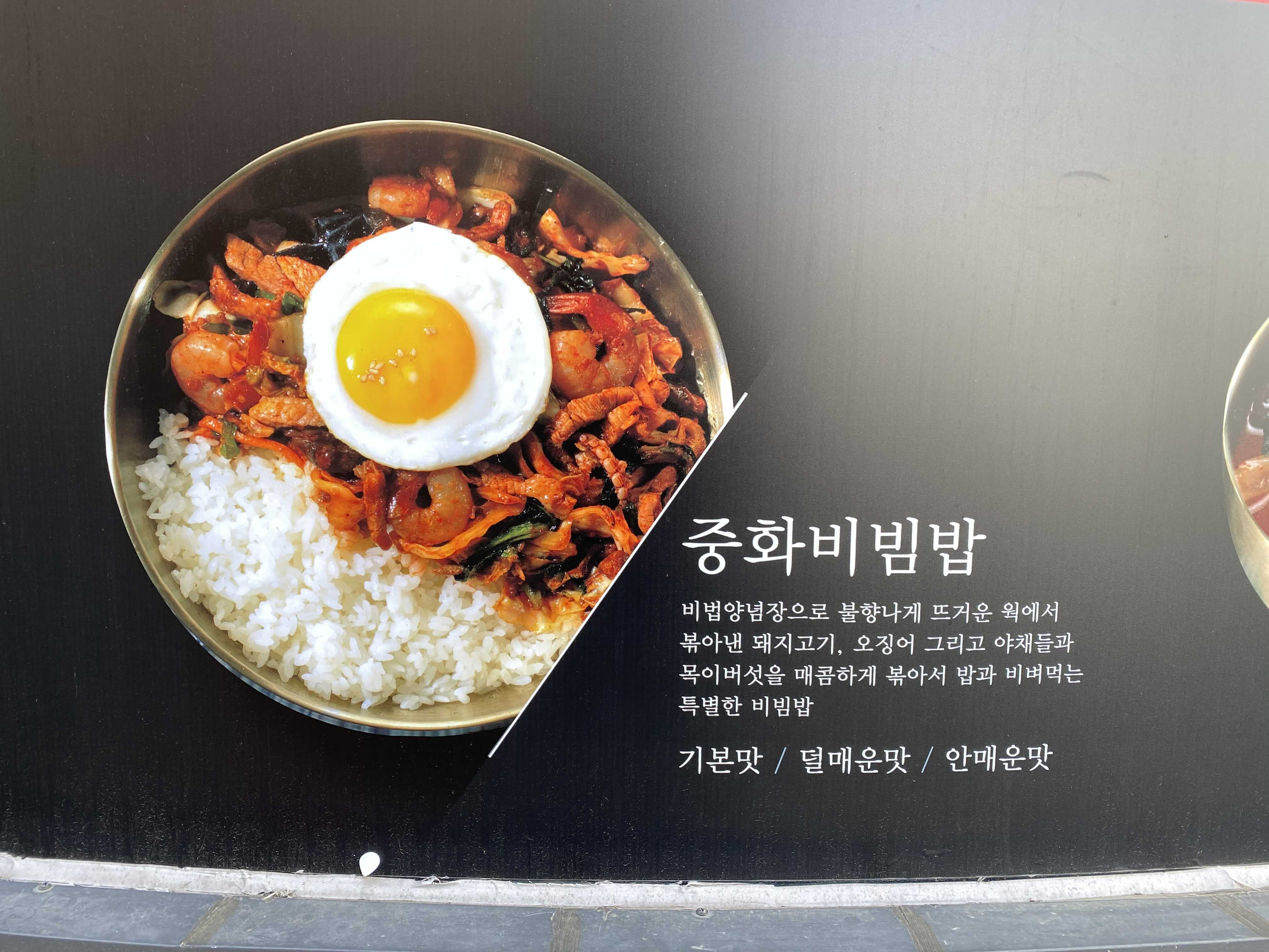 가게 외관에 붙은 중화비빔밥의 설명을 보니 기본맛과 덜매운맛, 안매운맛이 있었다.