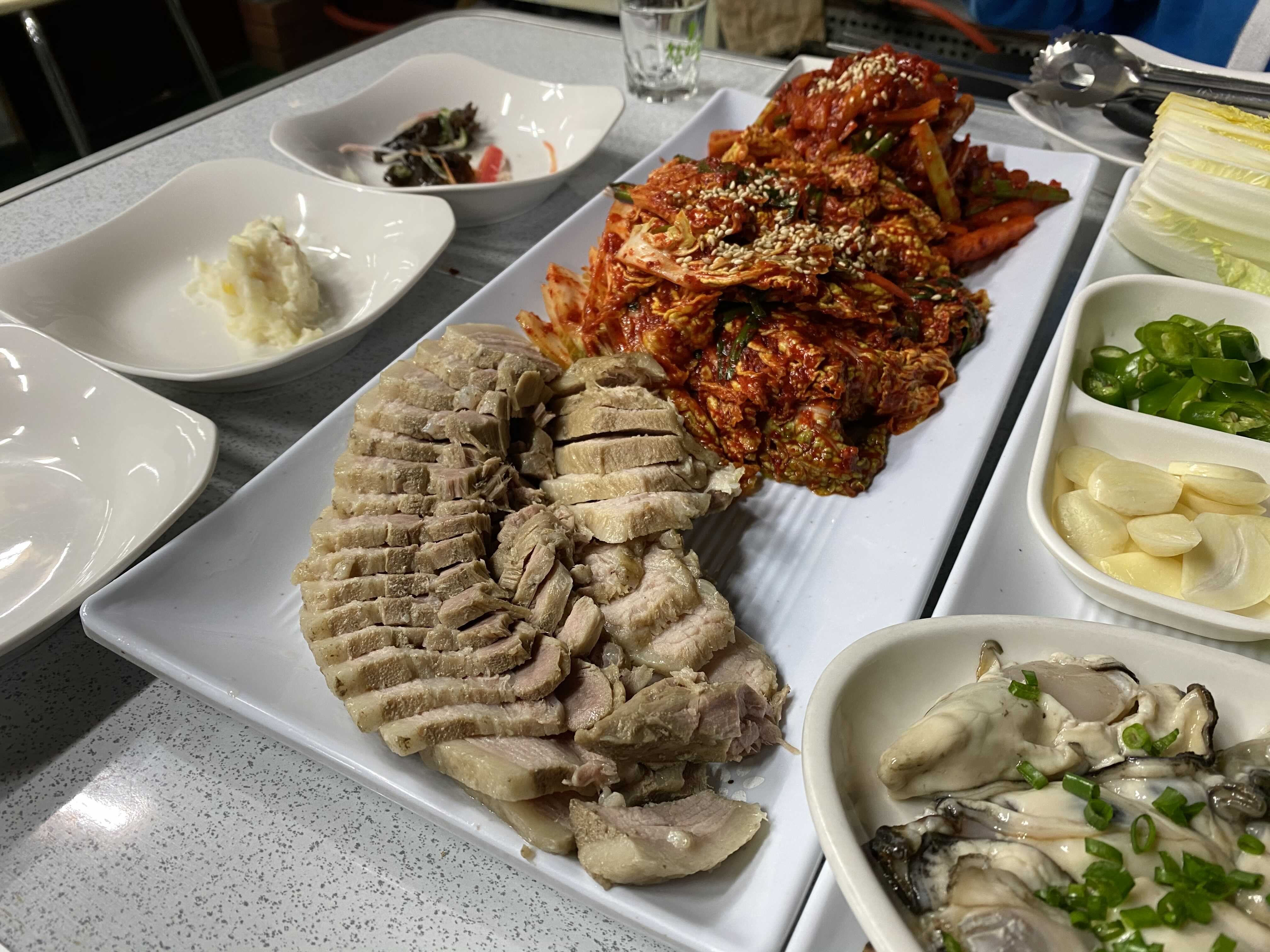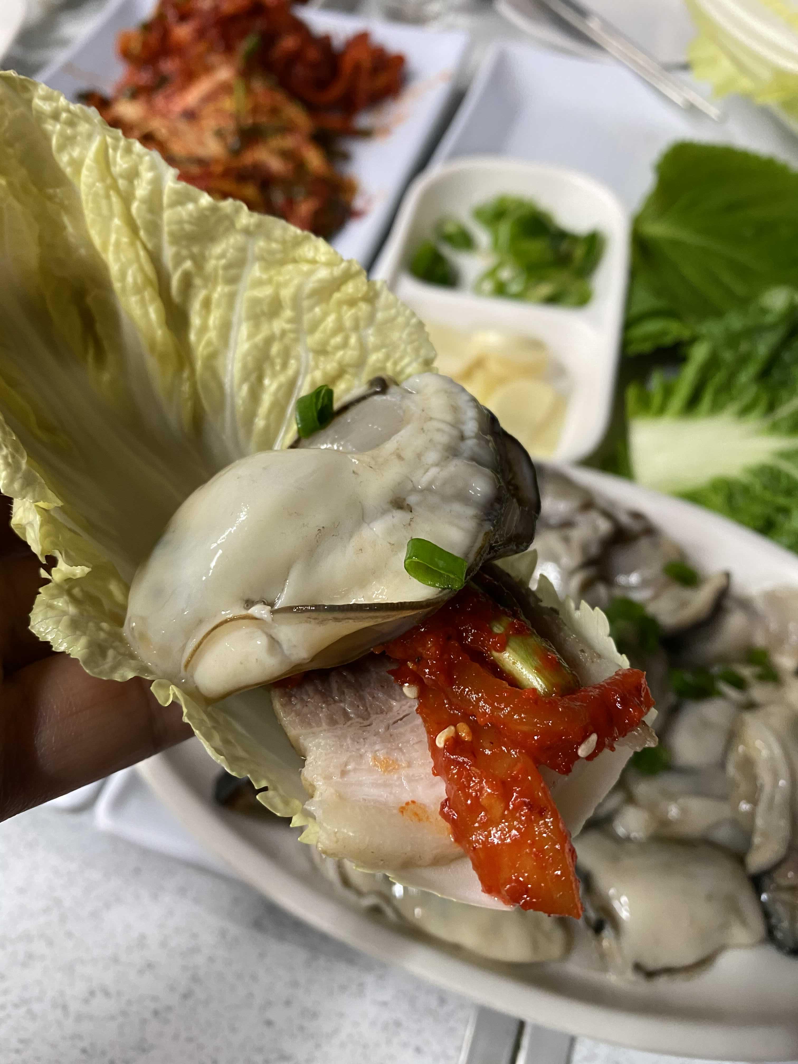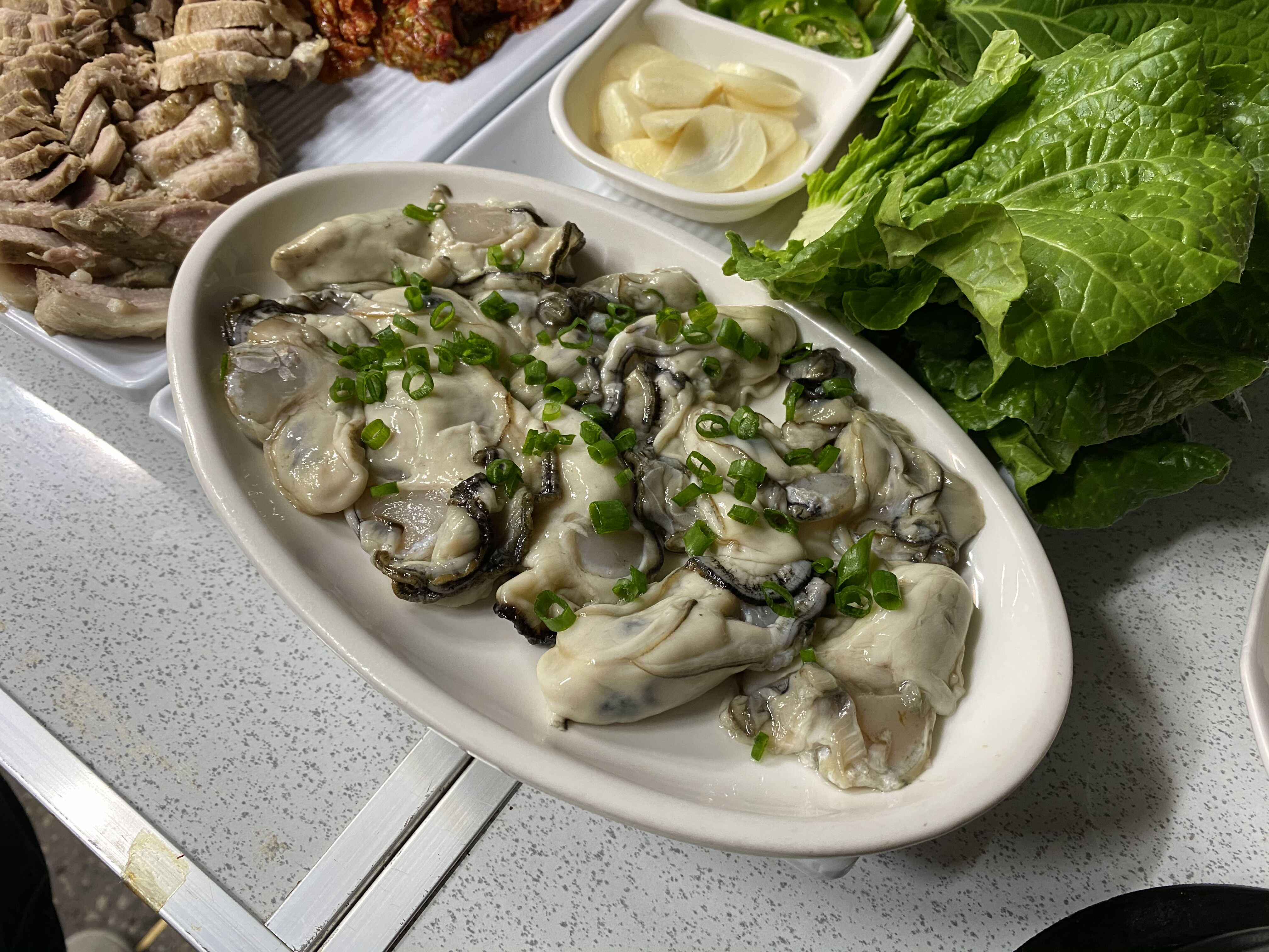 고기는 좀 퍽퍽한 편이었지만, 김치 맛 좋고 생굴 맛 좋고.