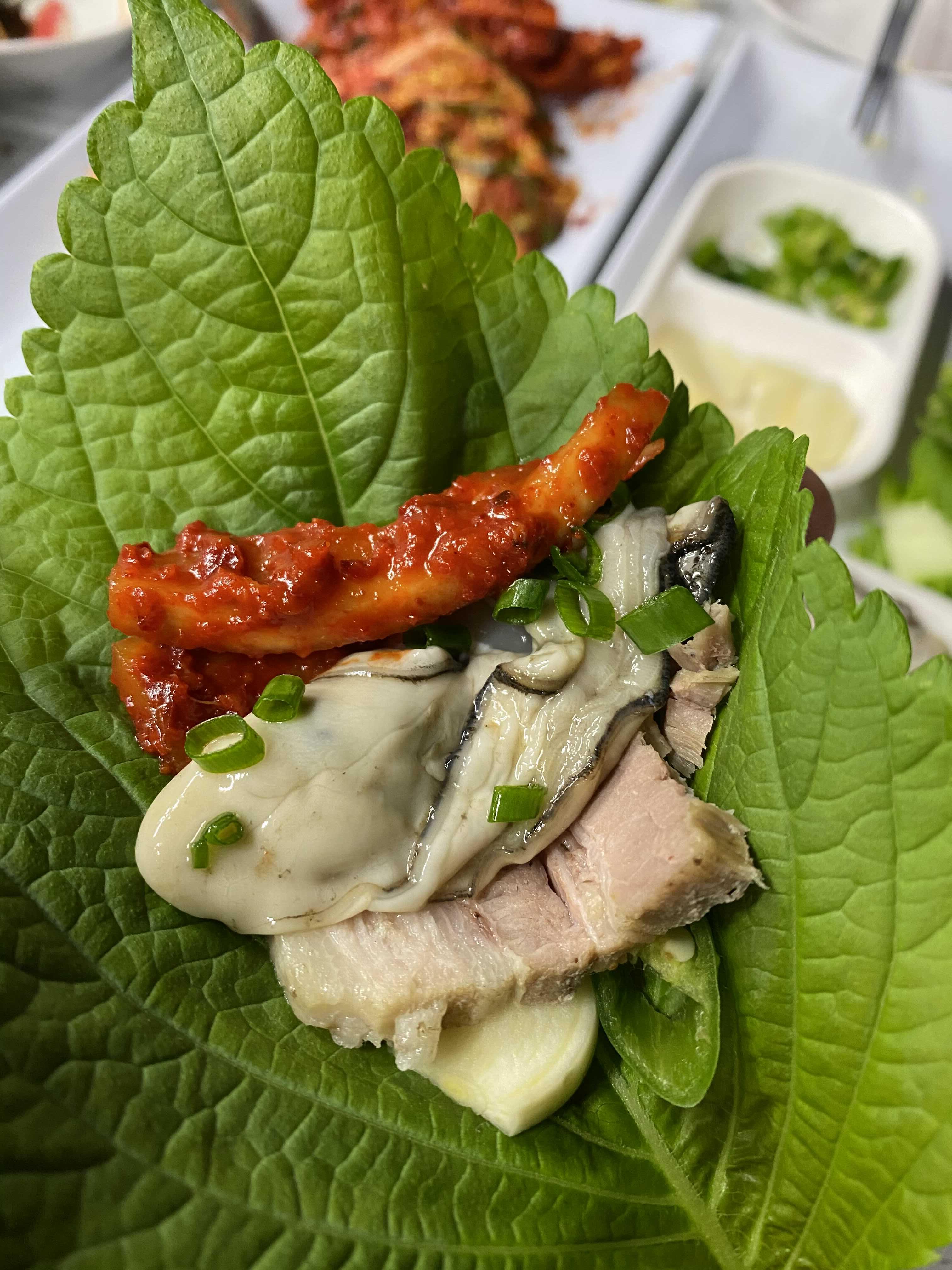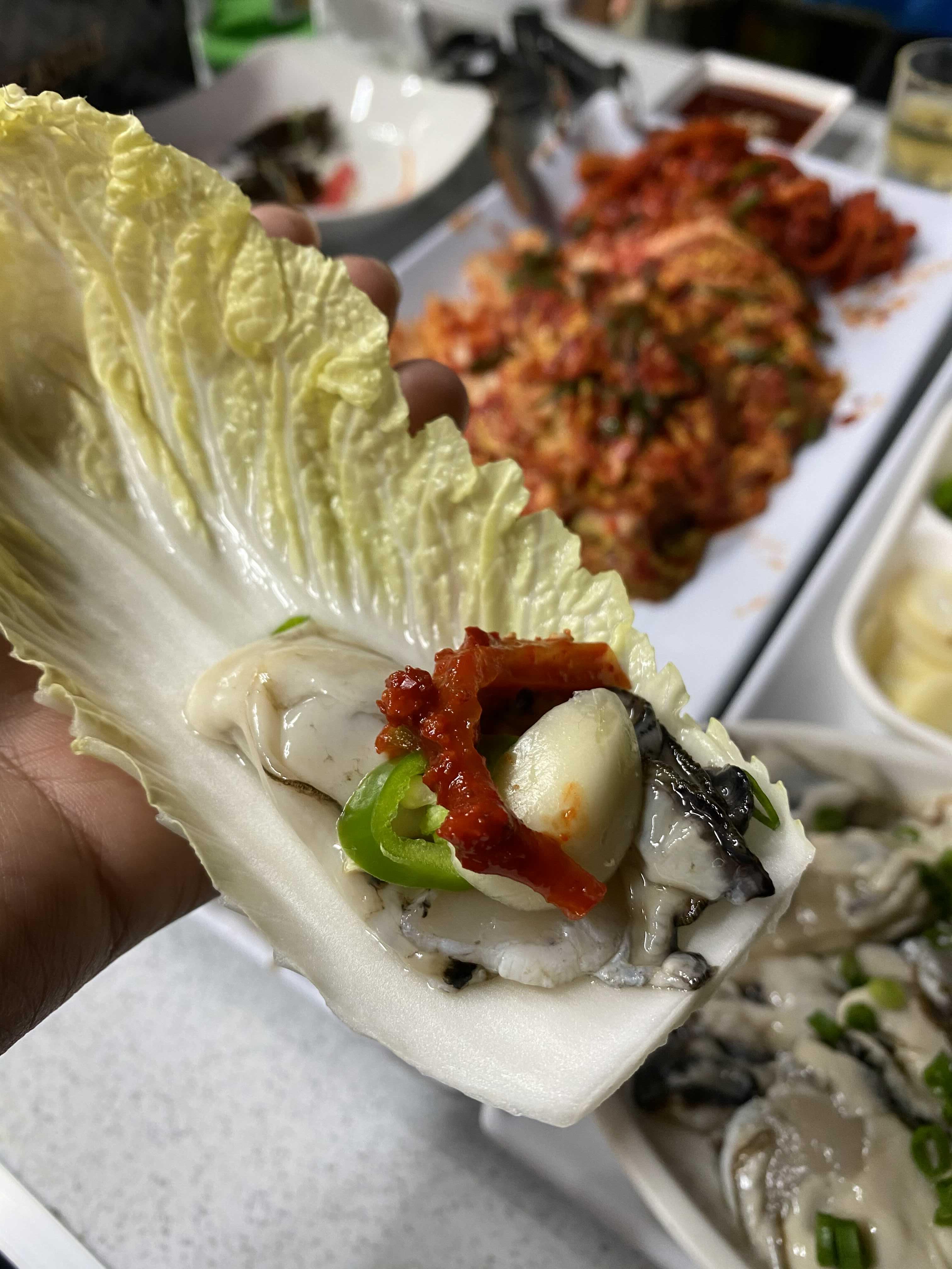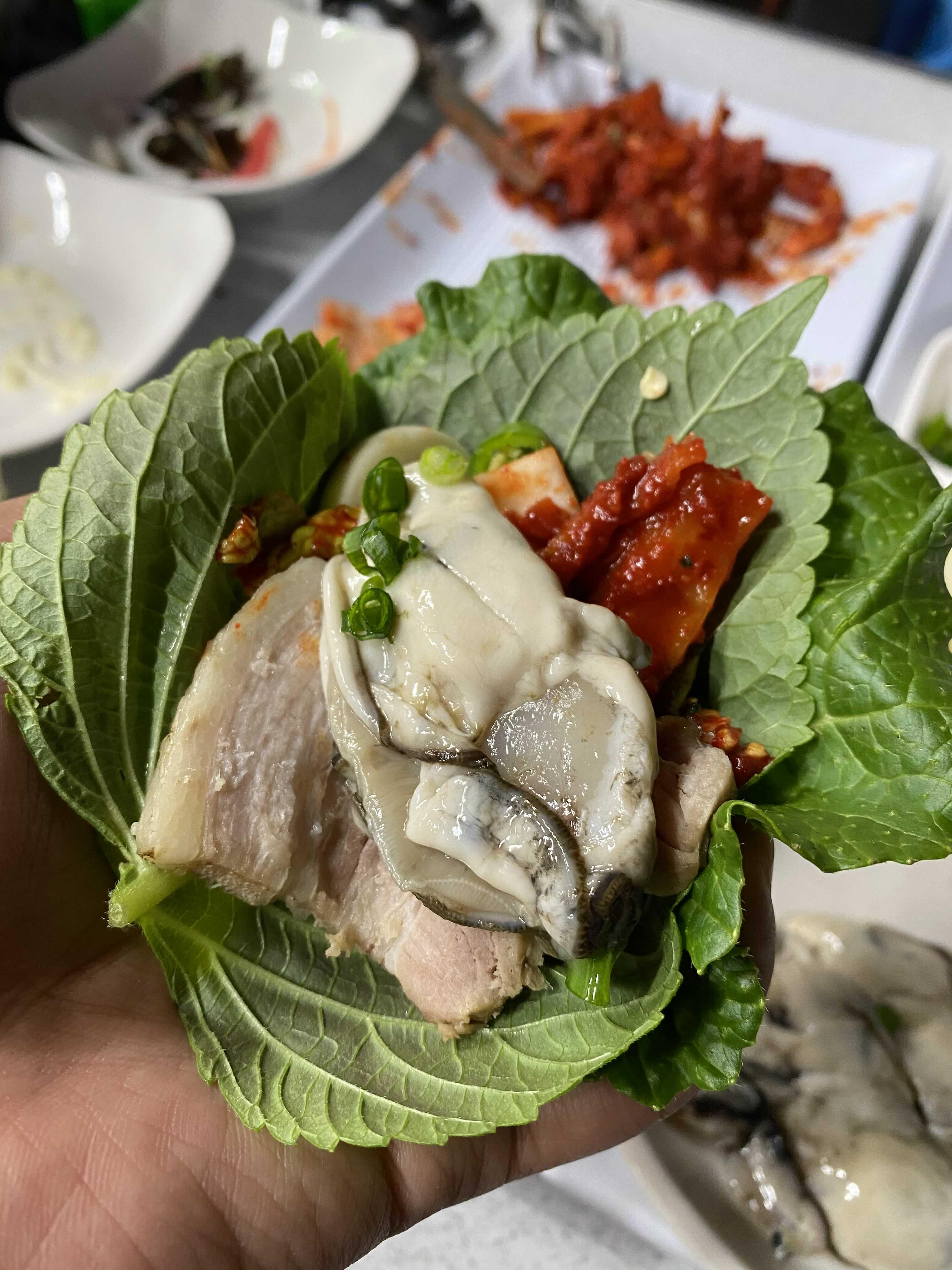 고기는 좀 퍽퍽한 편이었지만, 김치 맛 좋고 생굴 맛 좋고.