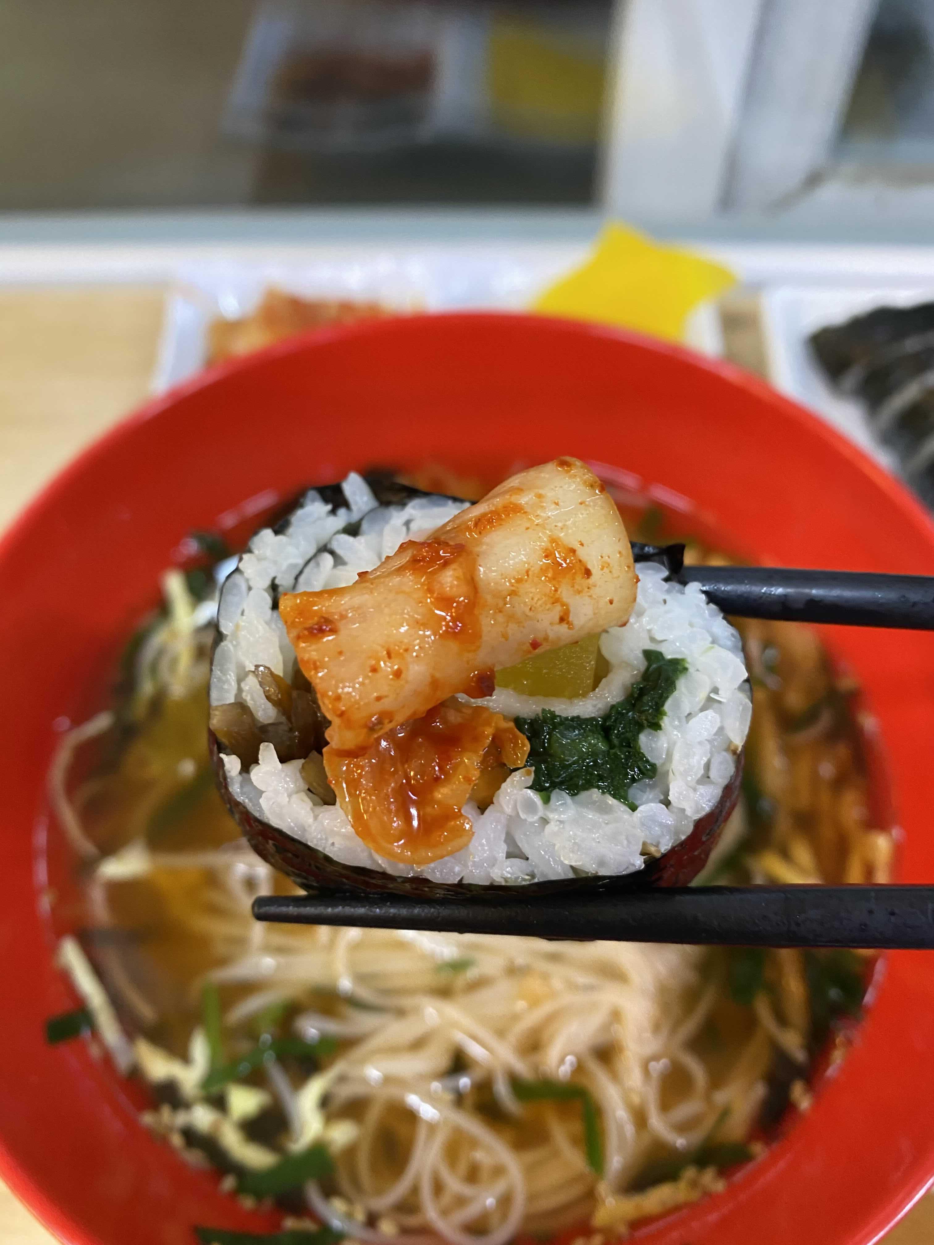 김밥에 김치 올려도 먹어본다. 김치말이 김밥을 먹는 느낌이랄까.