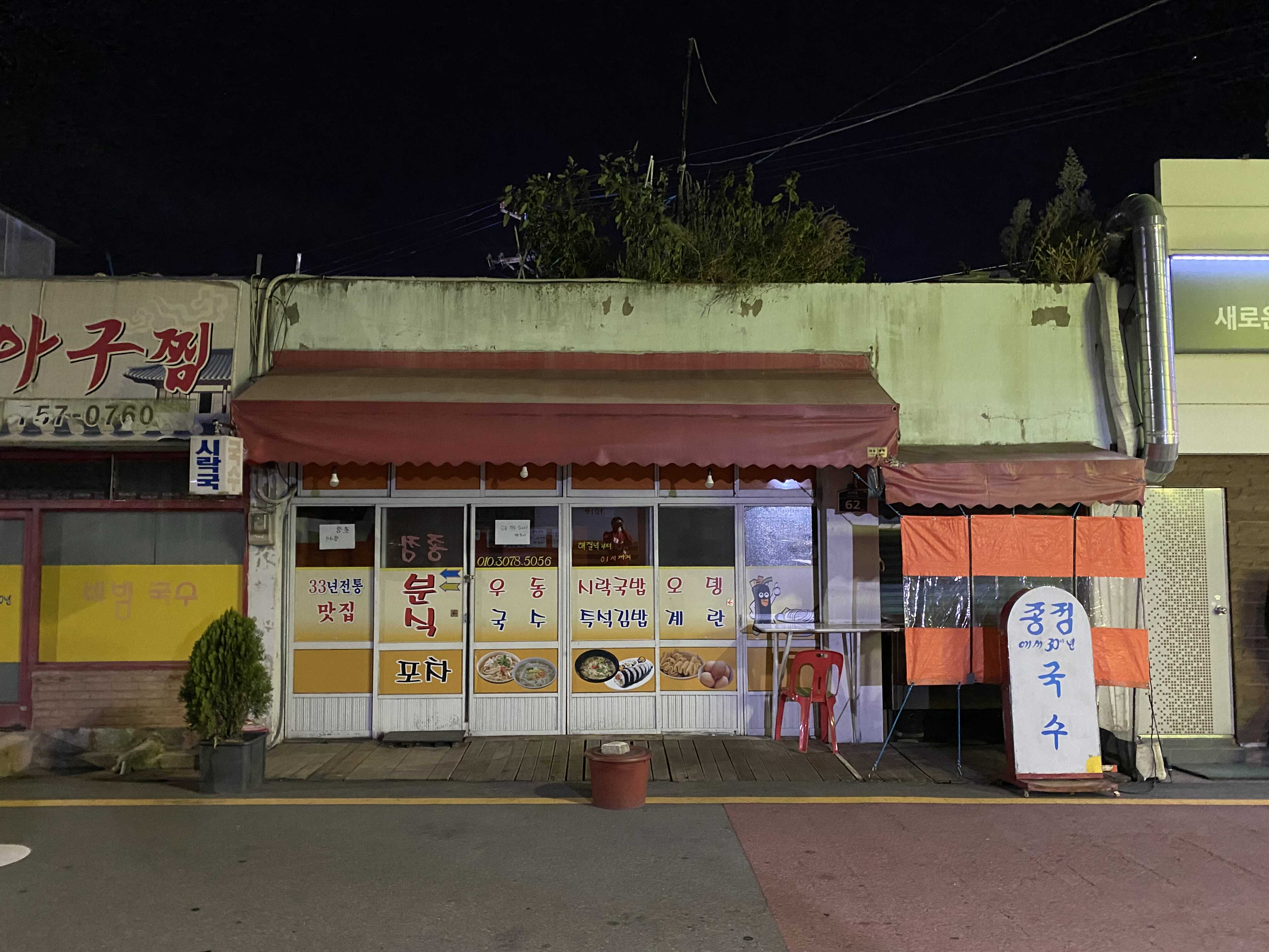 아쉬운 마음에 걷다가 발견한 분식집. 수영 팔도시장 인근에 위치해 있다. 팔도시장 안에 있는 칼국수집은 문을 닫았고, 이 집도 퇴근하려던 사장님이 마지막 손님으로 받아주셨다.