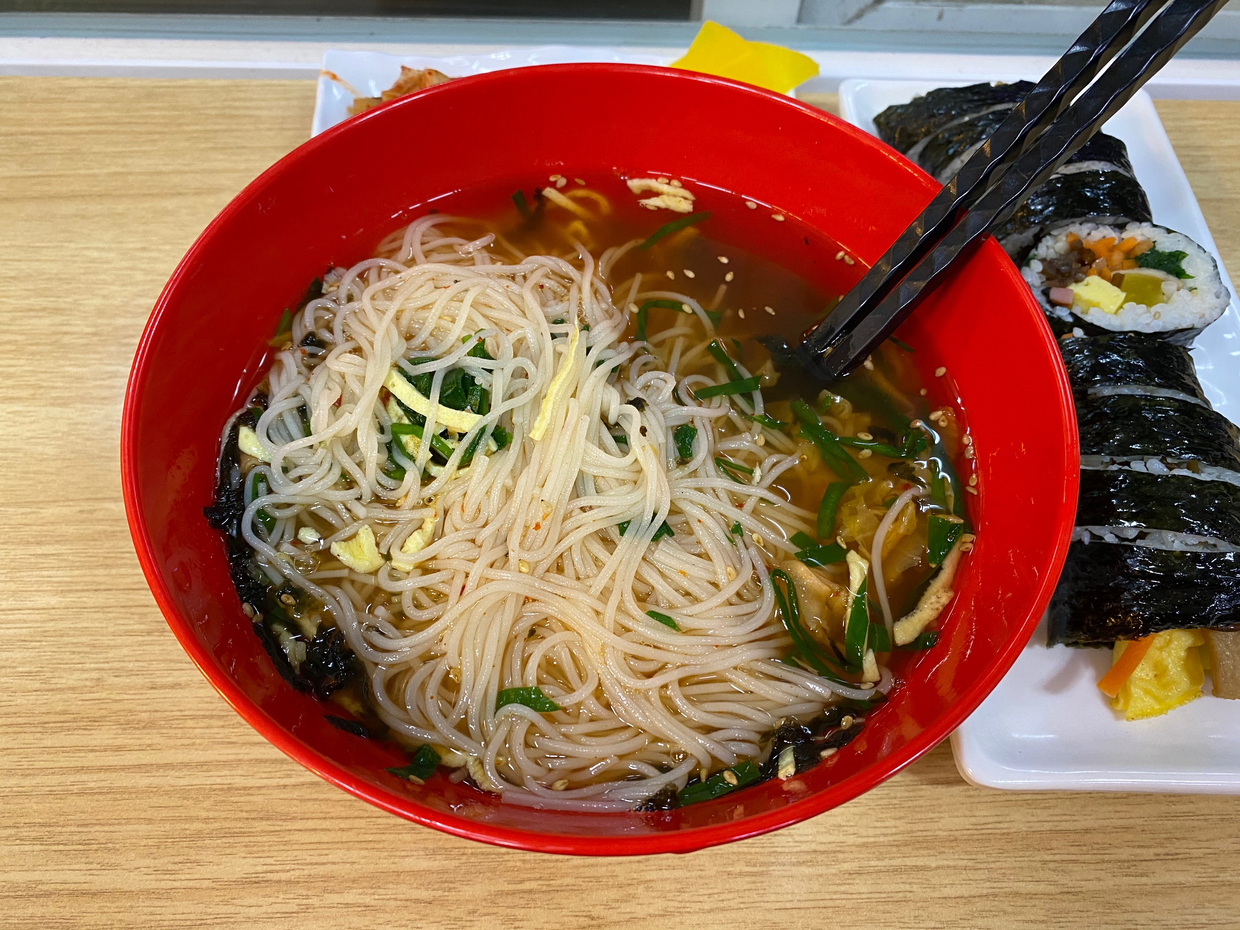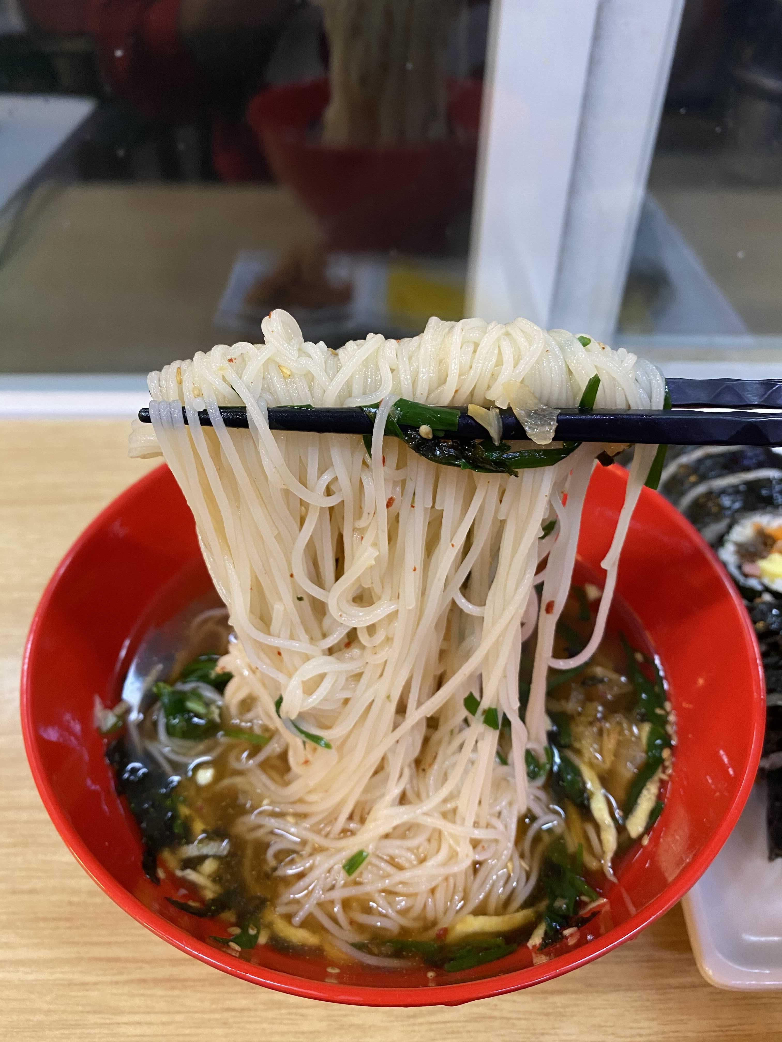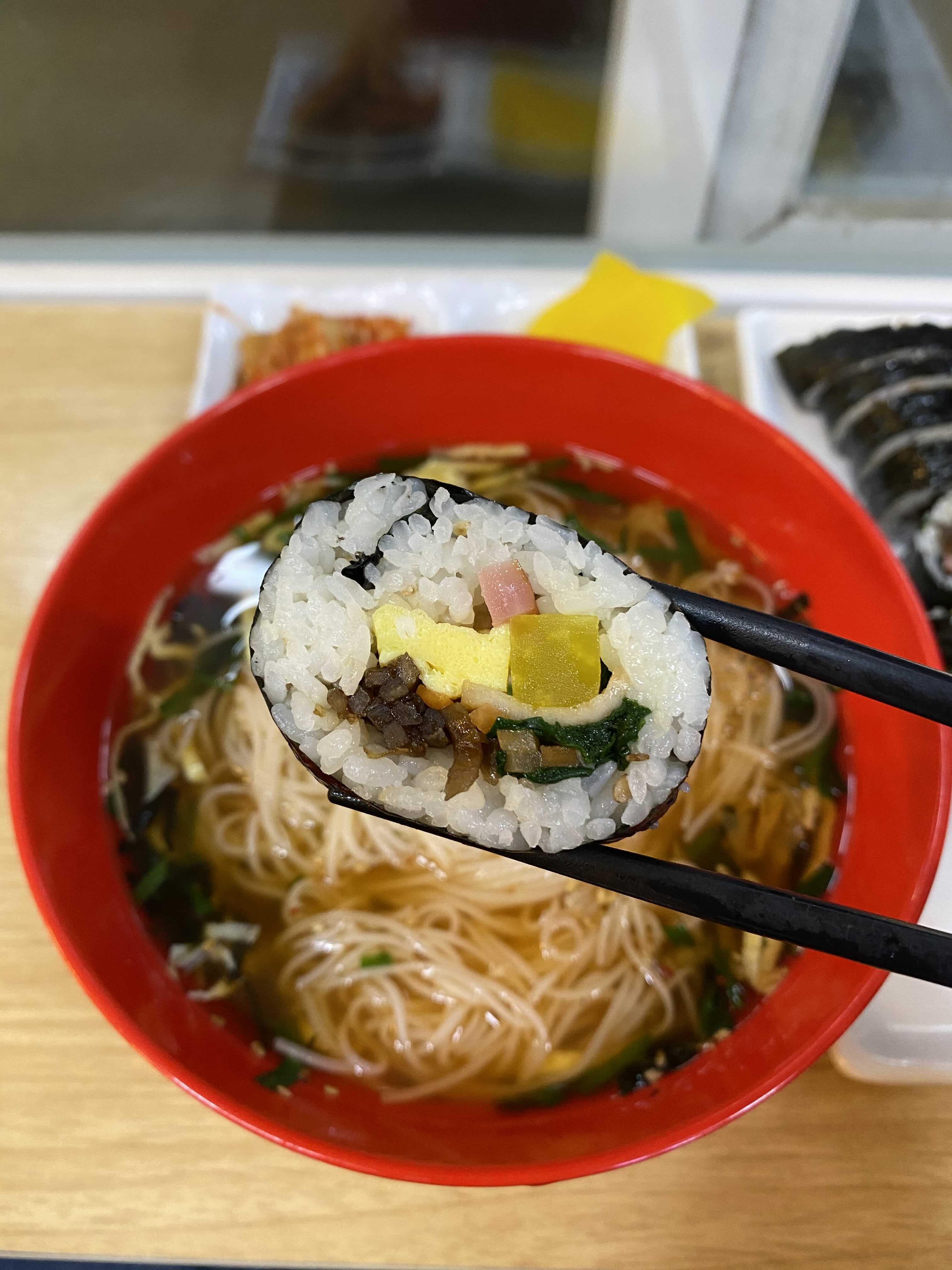국수만 먹으면 뭔가 허전하지 않은가. 평소 칼국수와는 달리 국수나 우동 국물에 밥을 말아 먹은 기억은 없다. 대신 김밥이 있으면 항상 주문하는 편이다.