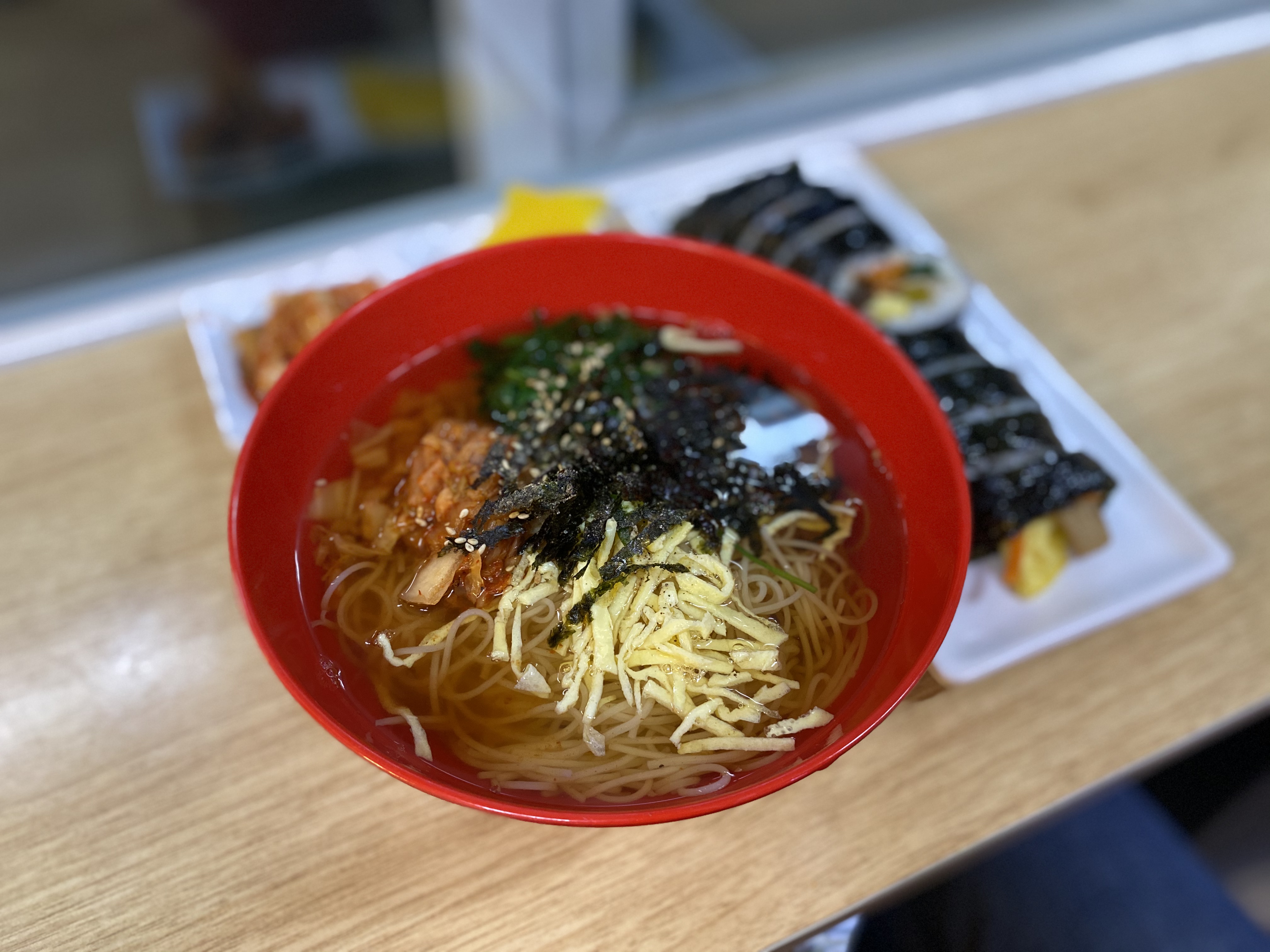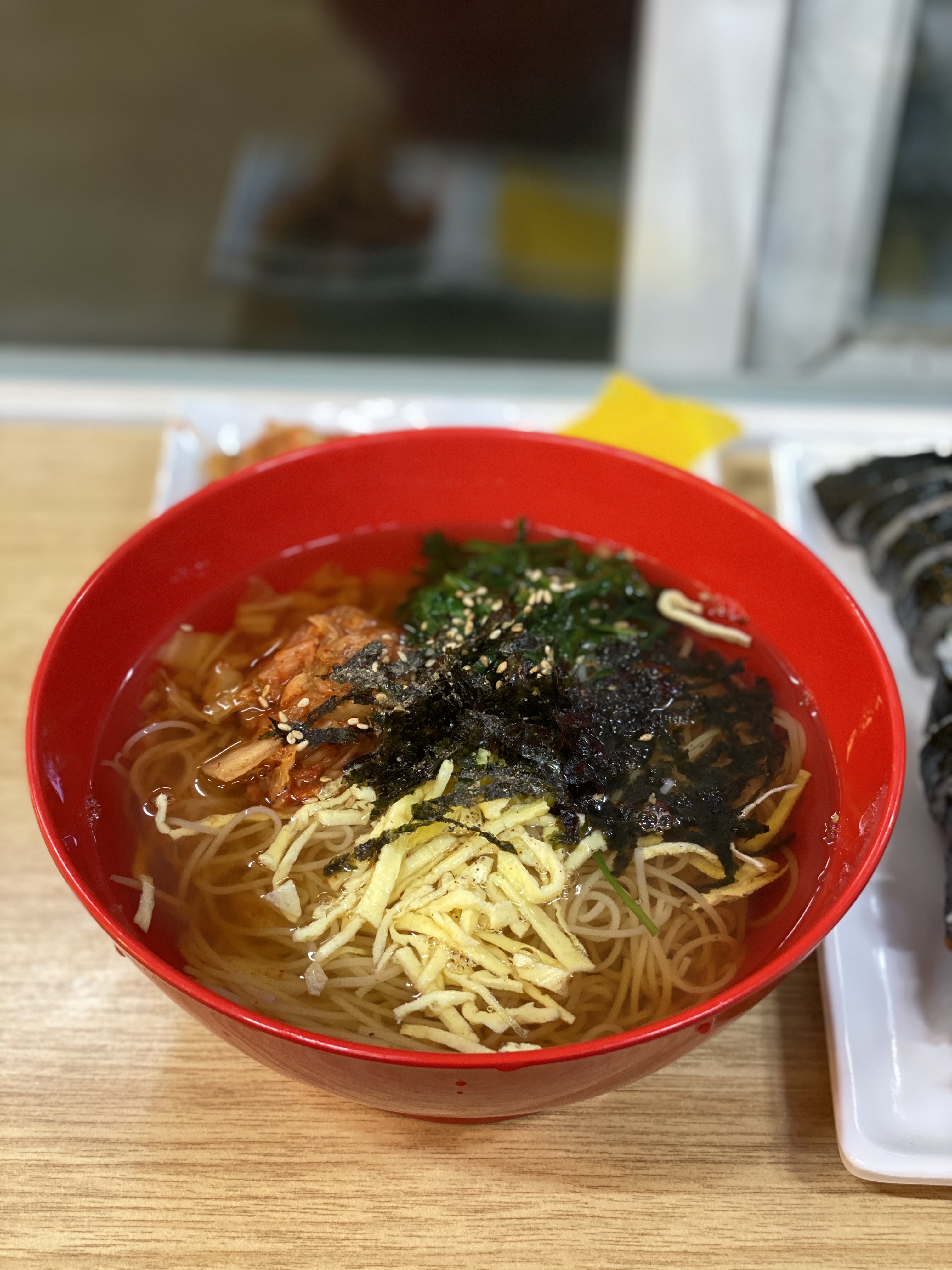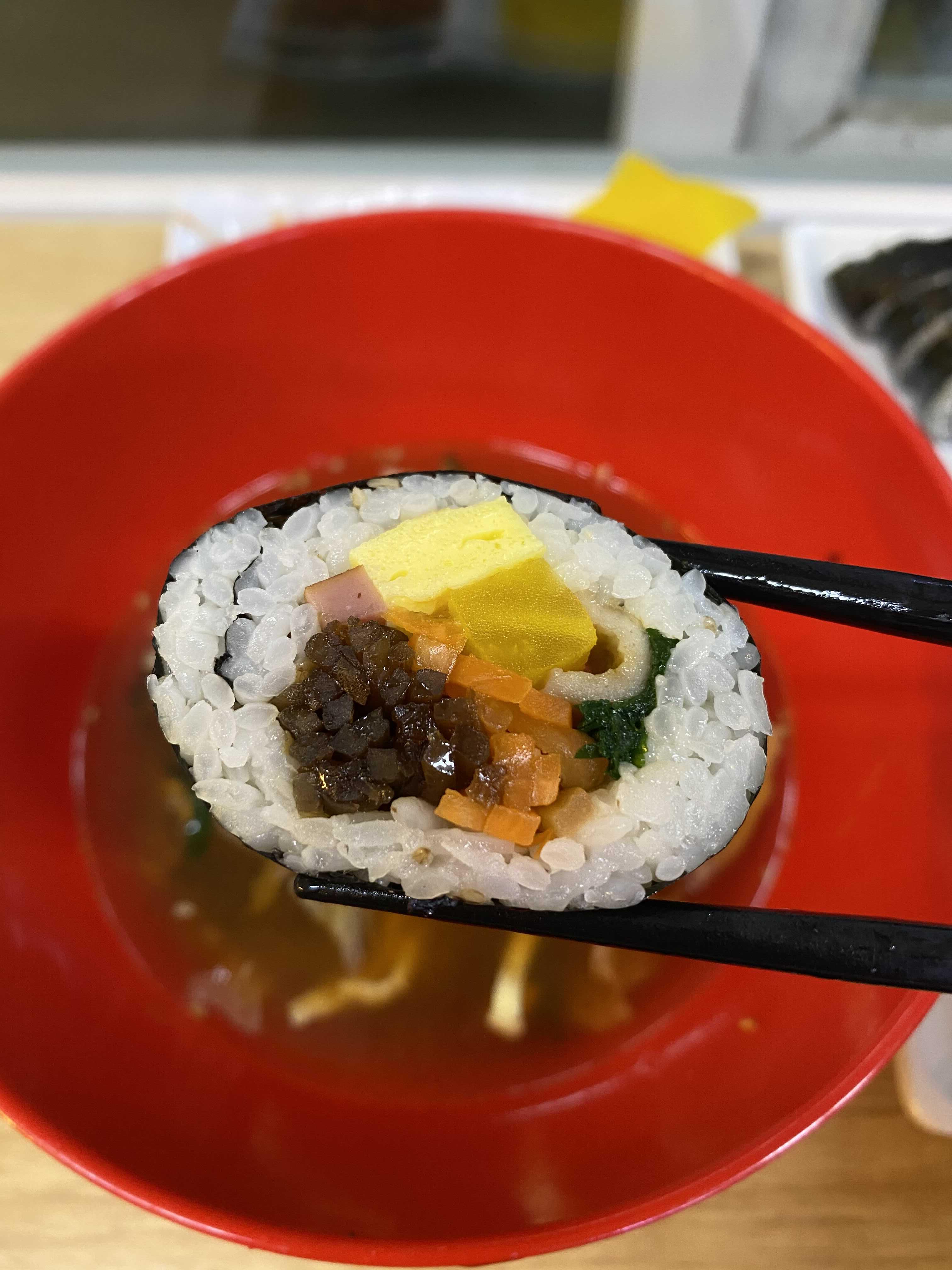 국수만 먹으면 뭔가 허전하지 않은가. 평소 칼국수와는 달리 국수나 우동 국물에 밥을 말아 먹은 기억은 없다. 대신 김밥이 있으면 항상 주문하는 편이다.