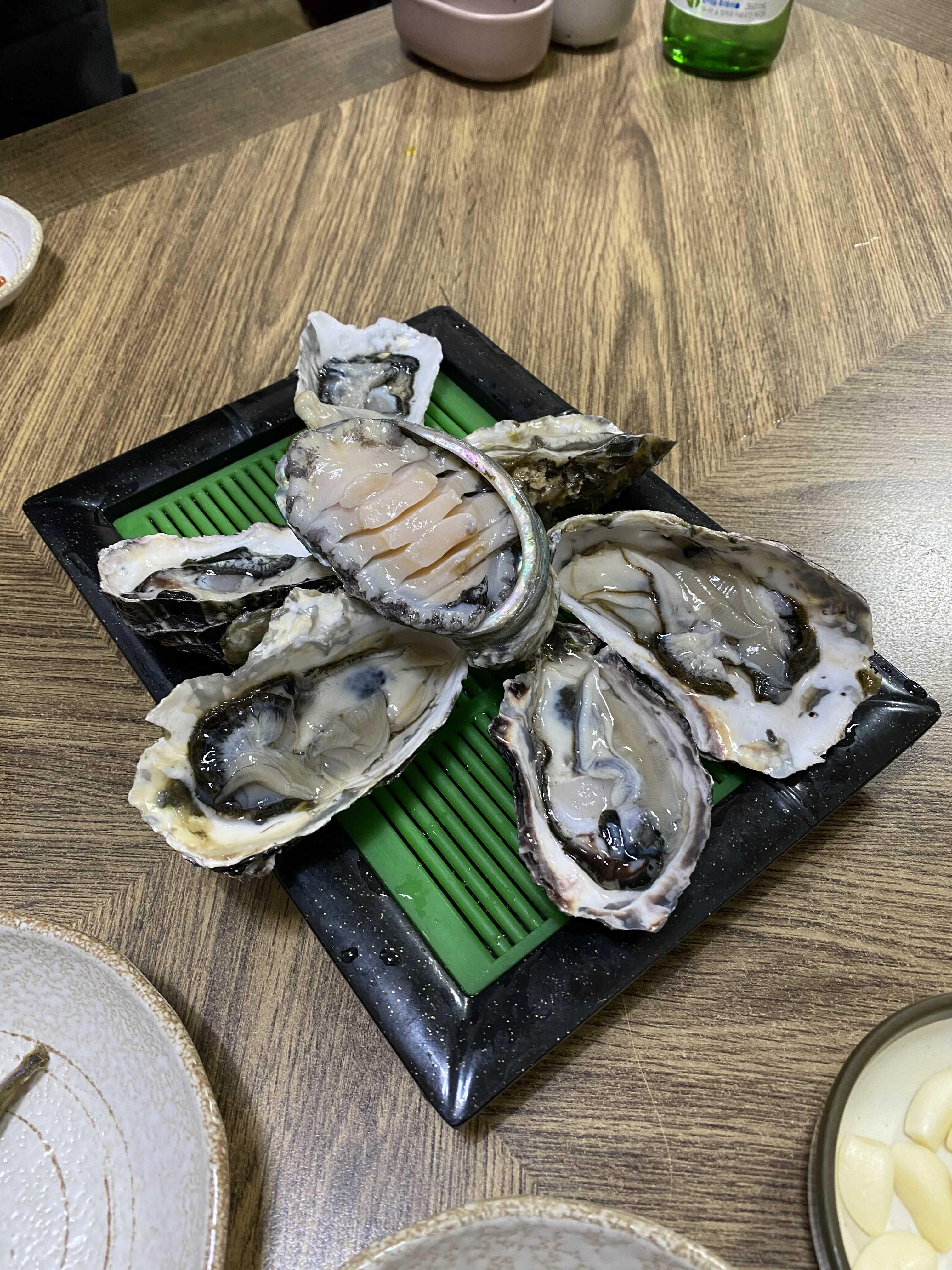 생굴과 전복회. 일잔에 일점 메뉴.