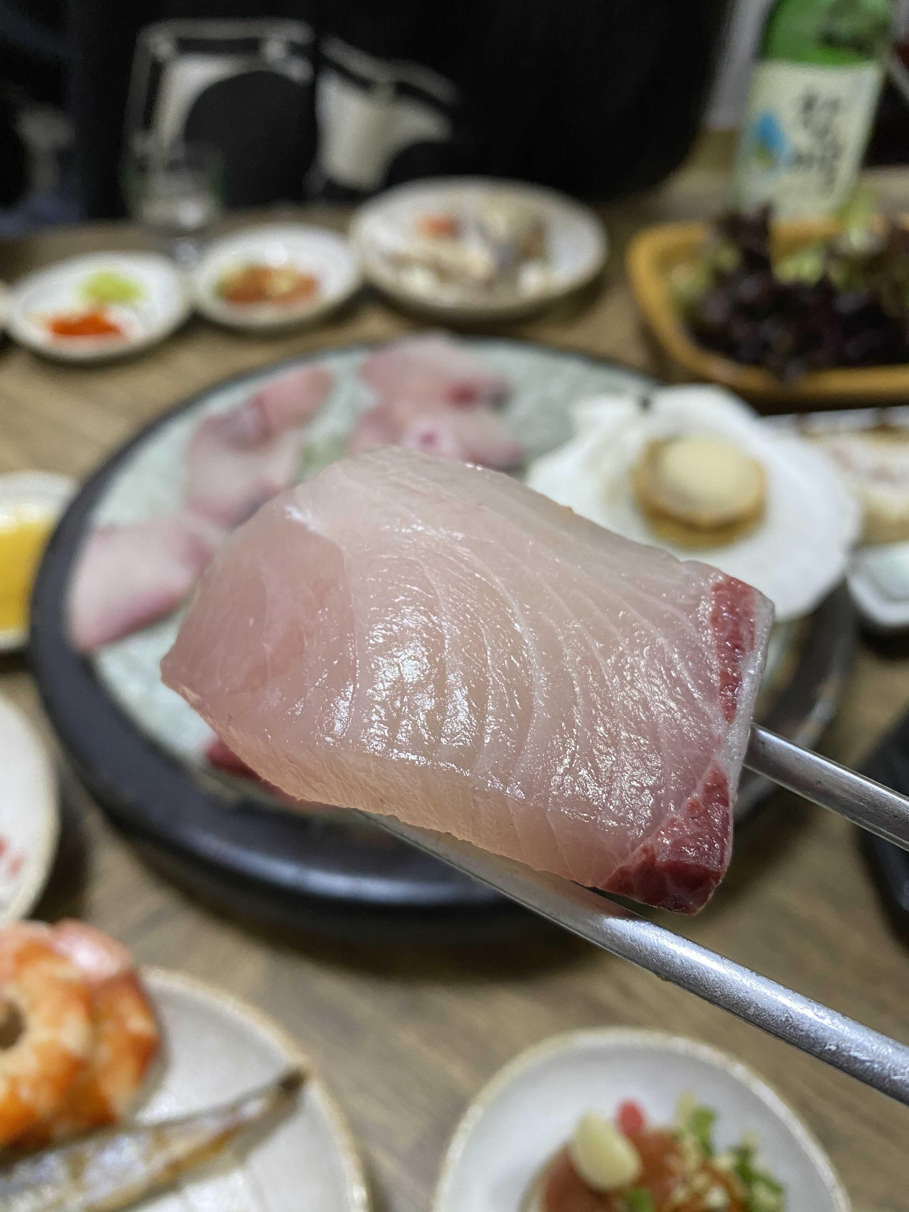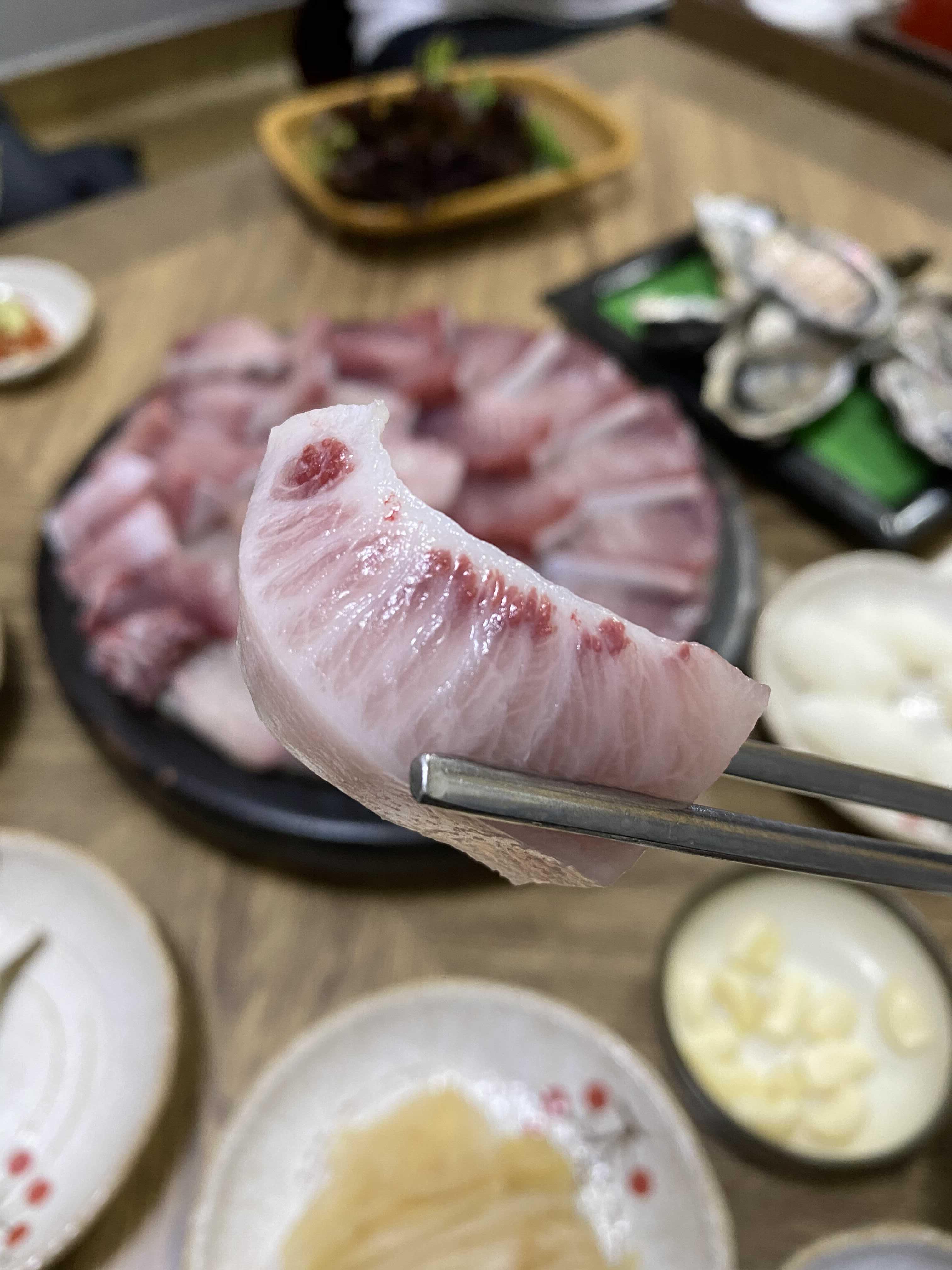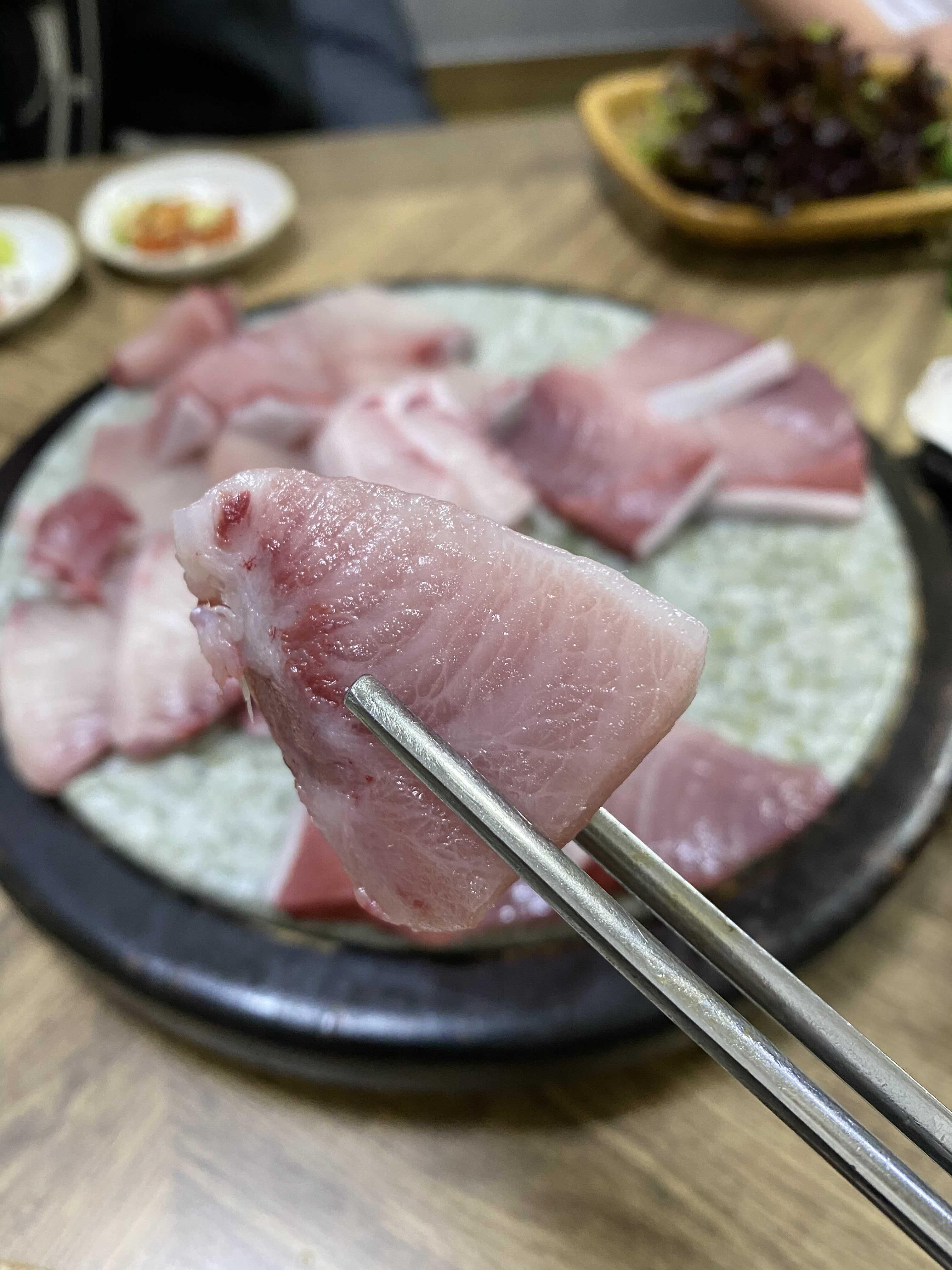 아이폰 사진 촬영모드에 따라서 색감의 차이가 있는데 이 사진의 색감이 실제 대방어회의 색감과 가장 비슷하다.