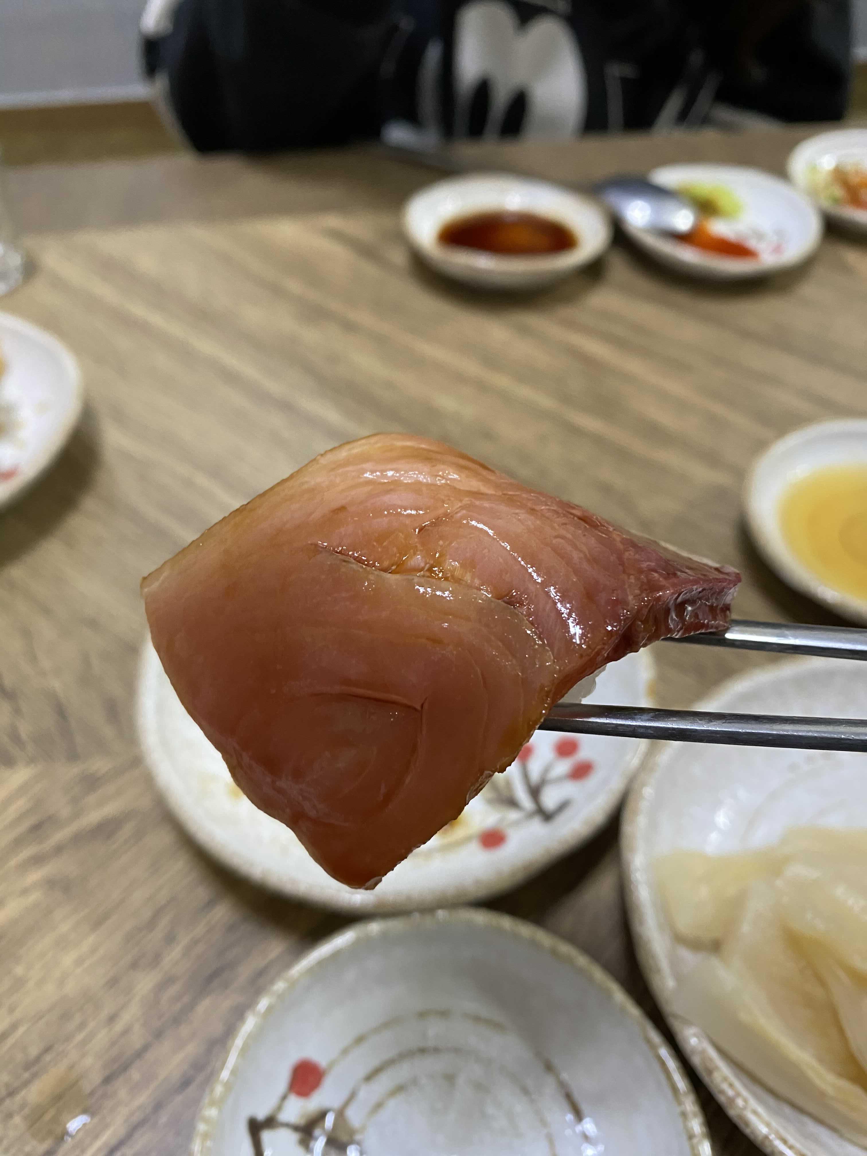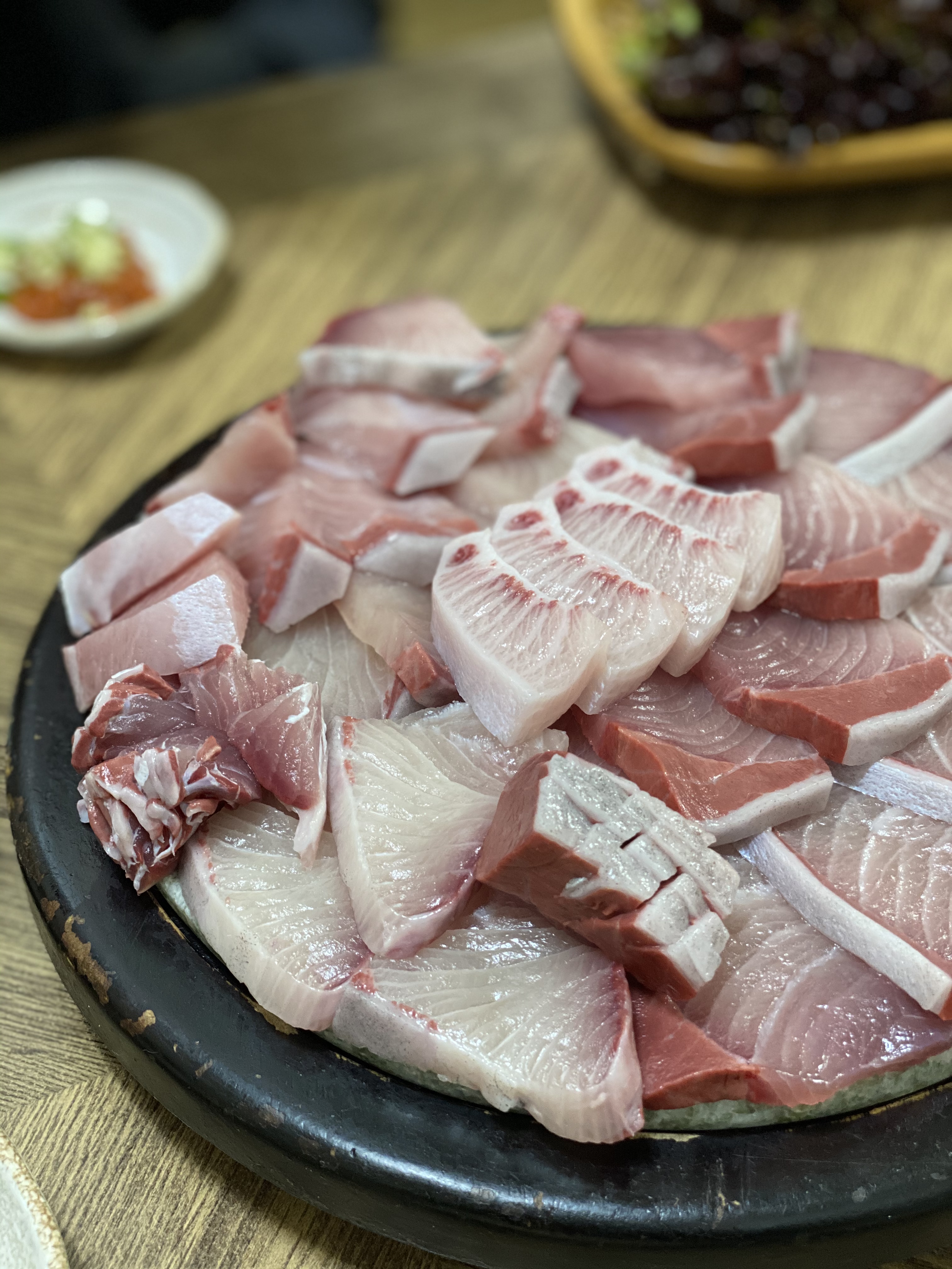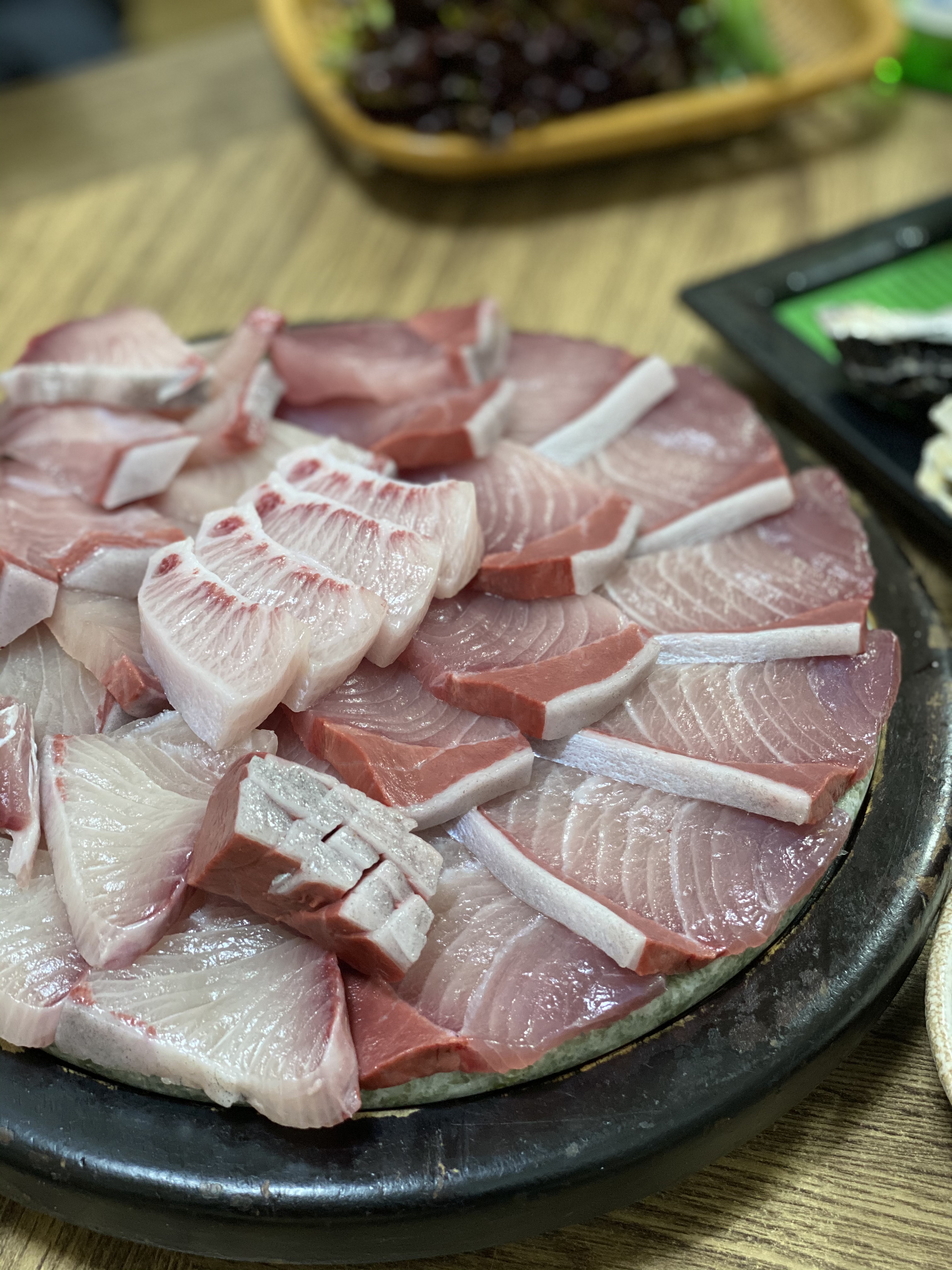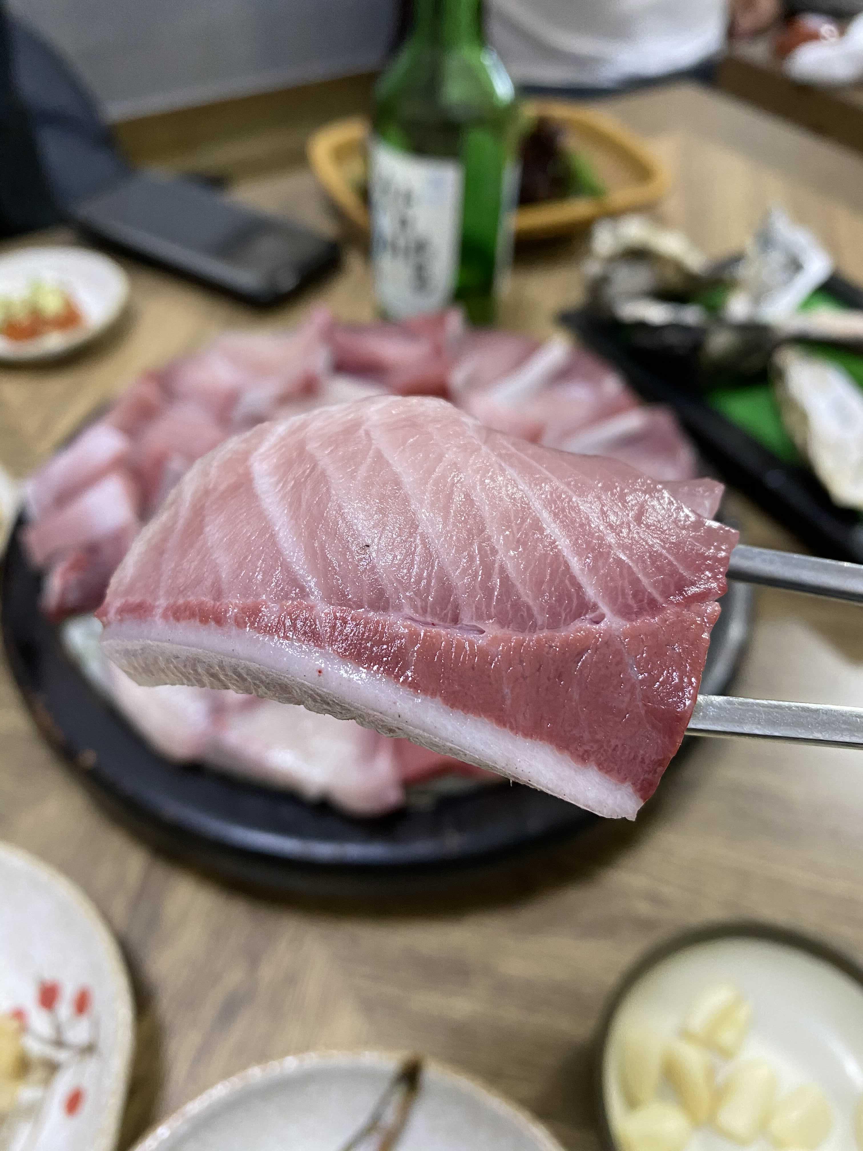 아이폰 사진 촬영모드에 따라서 색감의 차이가 있는데 이 사진의 색감이 실제 대방어회의 색감과 가장 비슷하다.