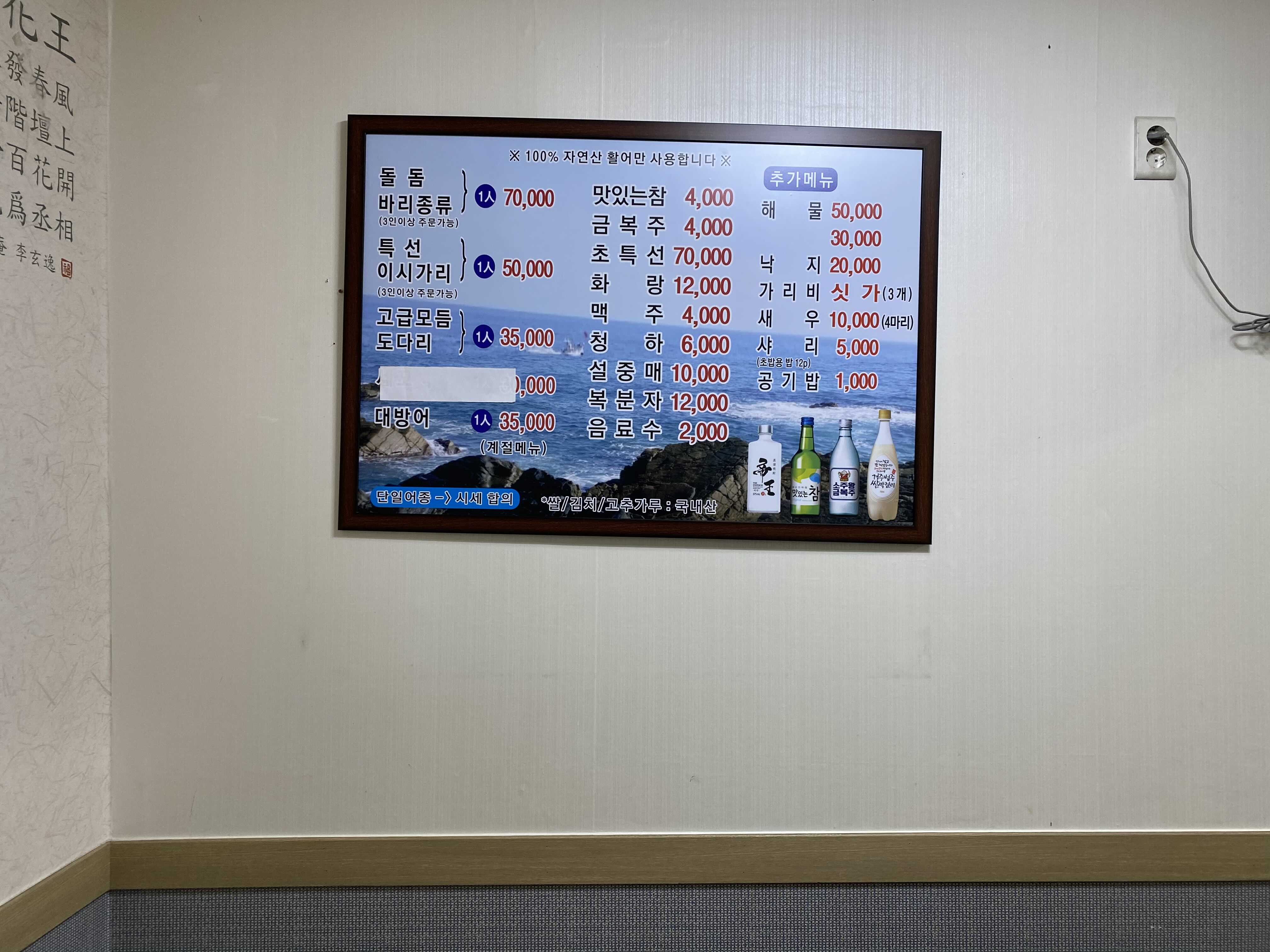 항상 두명이서 방문하다보니 다른 메뉴는 못 먹고 1인 35,000원짜리 고급모듬으로만 먹었다. 계절메뉴인 대방어회는 고급모듬처럼 3인이상 주문가능하다는 말은 없지만, 예약을 위해 3인으로 주문했다. 참고로 이 집은 2인 예약이 안된다. 과거 노쇼 때문에 일이 좀 있었나보다. 그래서 예약할 때 대방어 3인으로 예약.