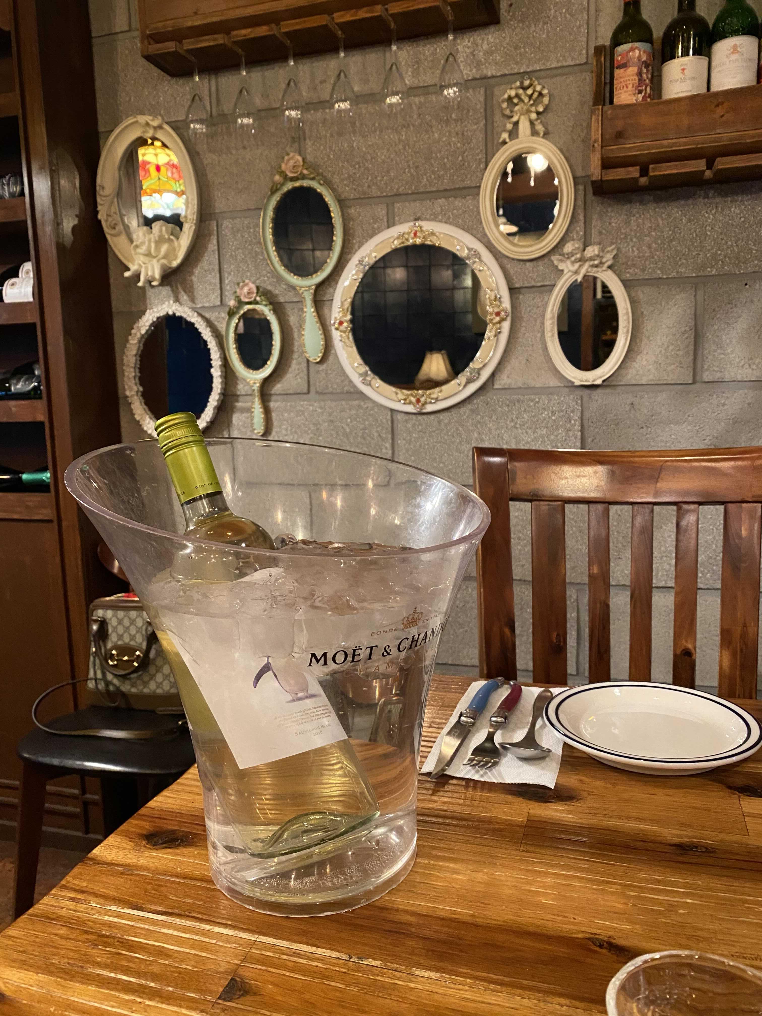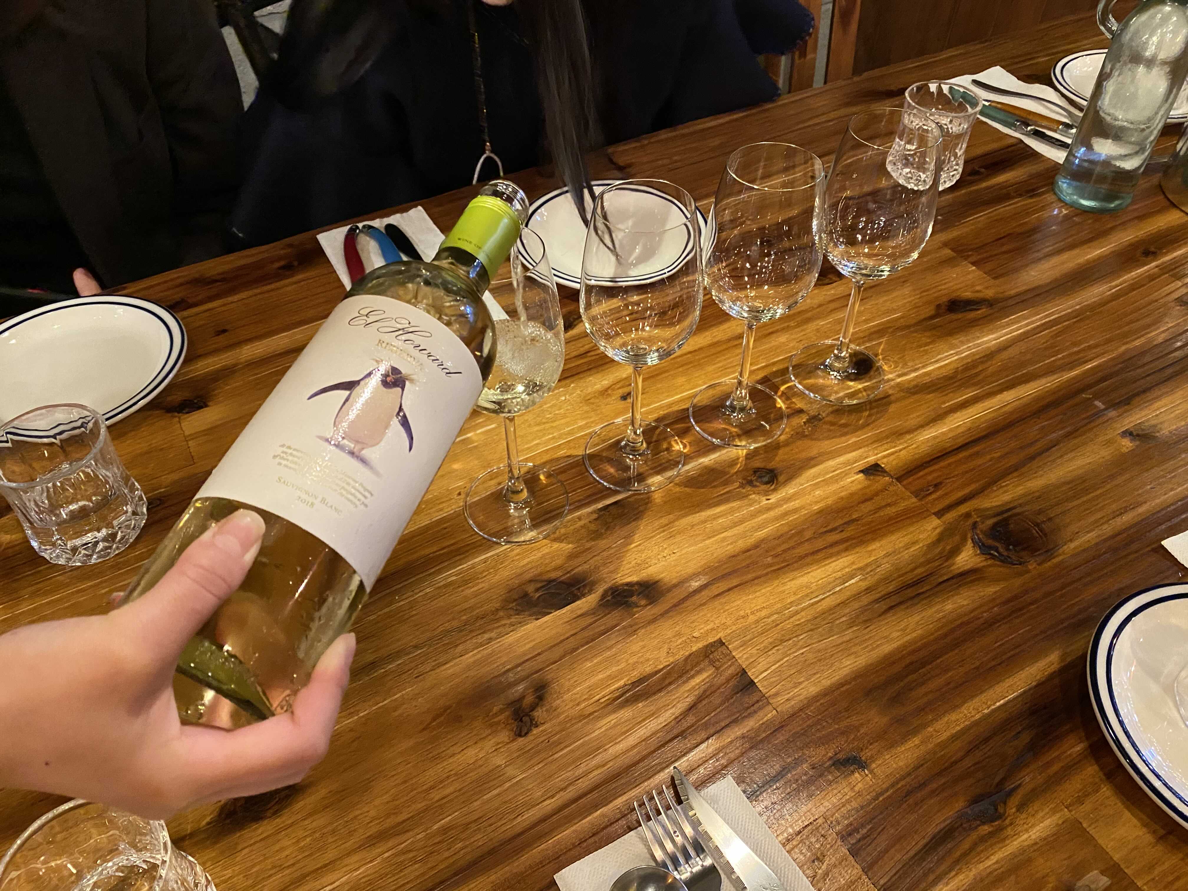 먼저 화이트 와인 한 잔씩 따르고.