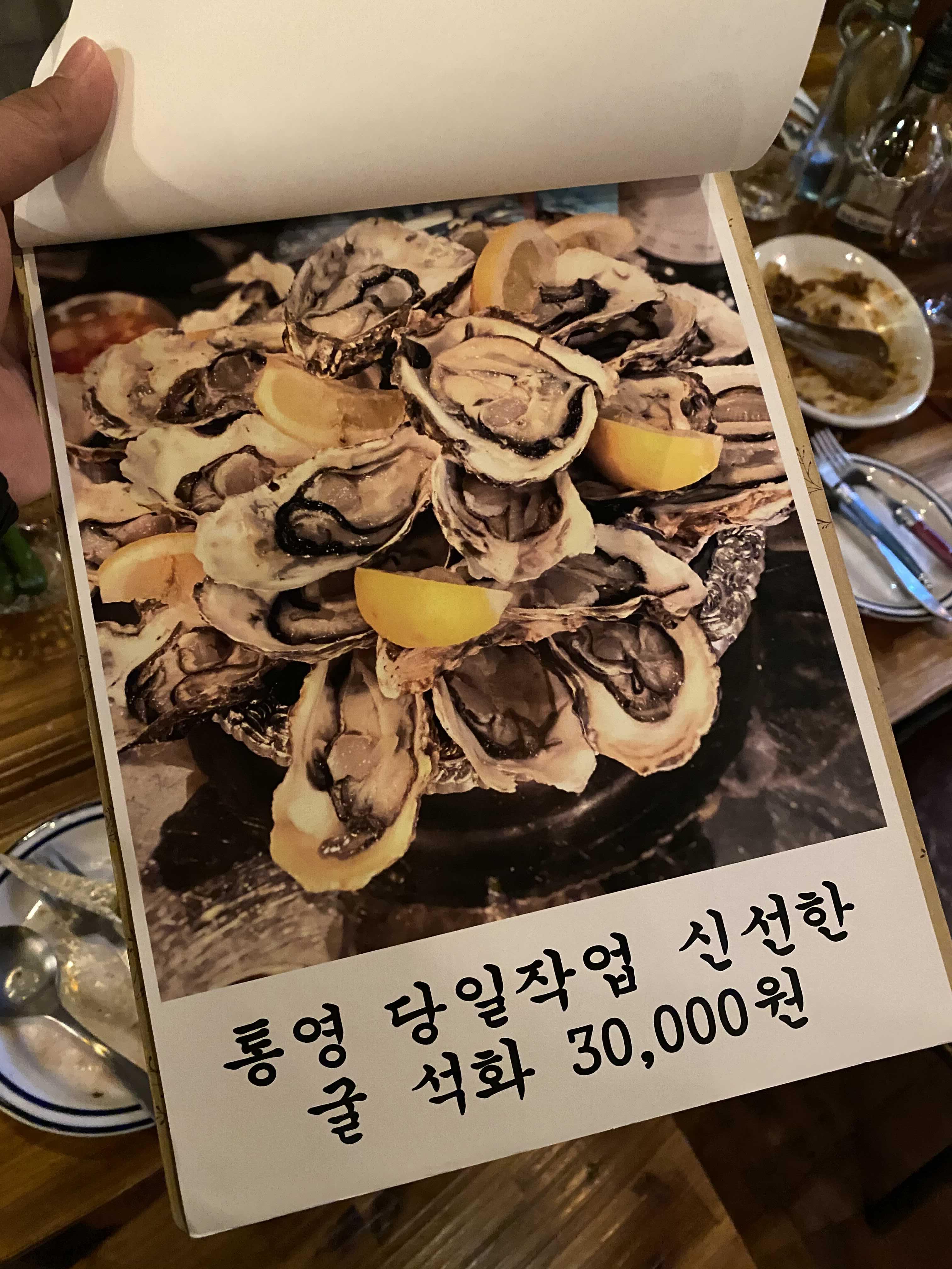 먼저 주문한 메뉴는 통영에서 당일 작업해서 받았다는 석화 하프쉘.