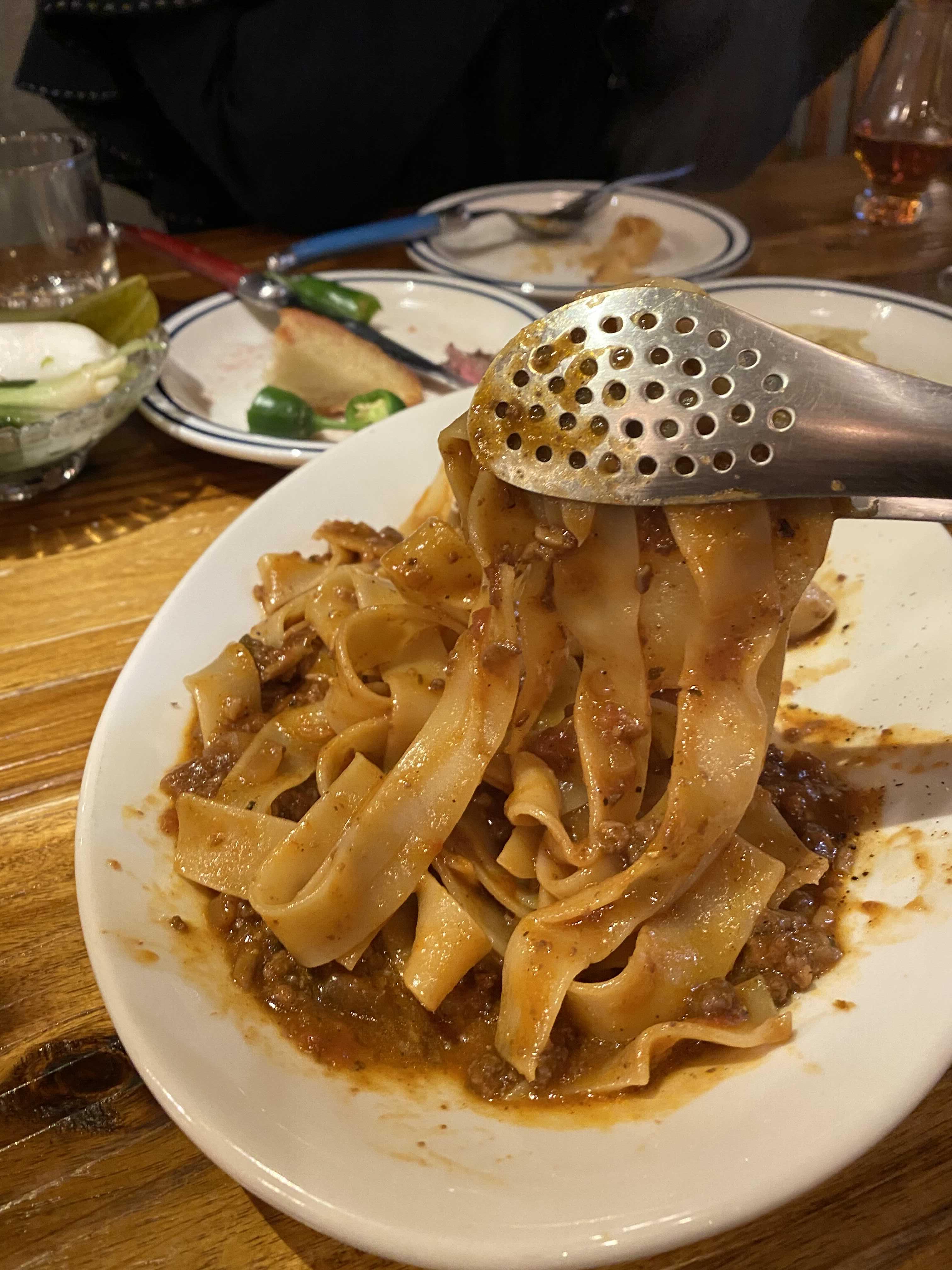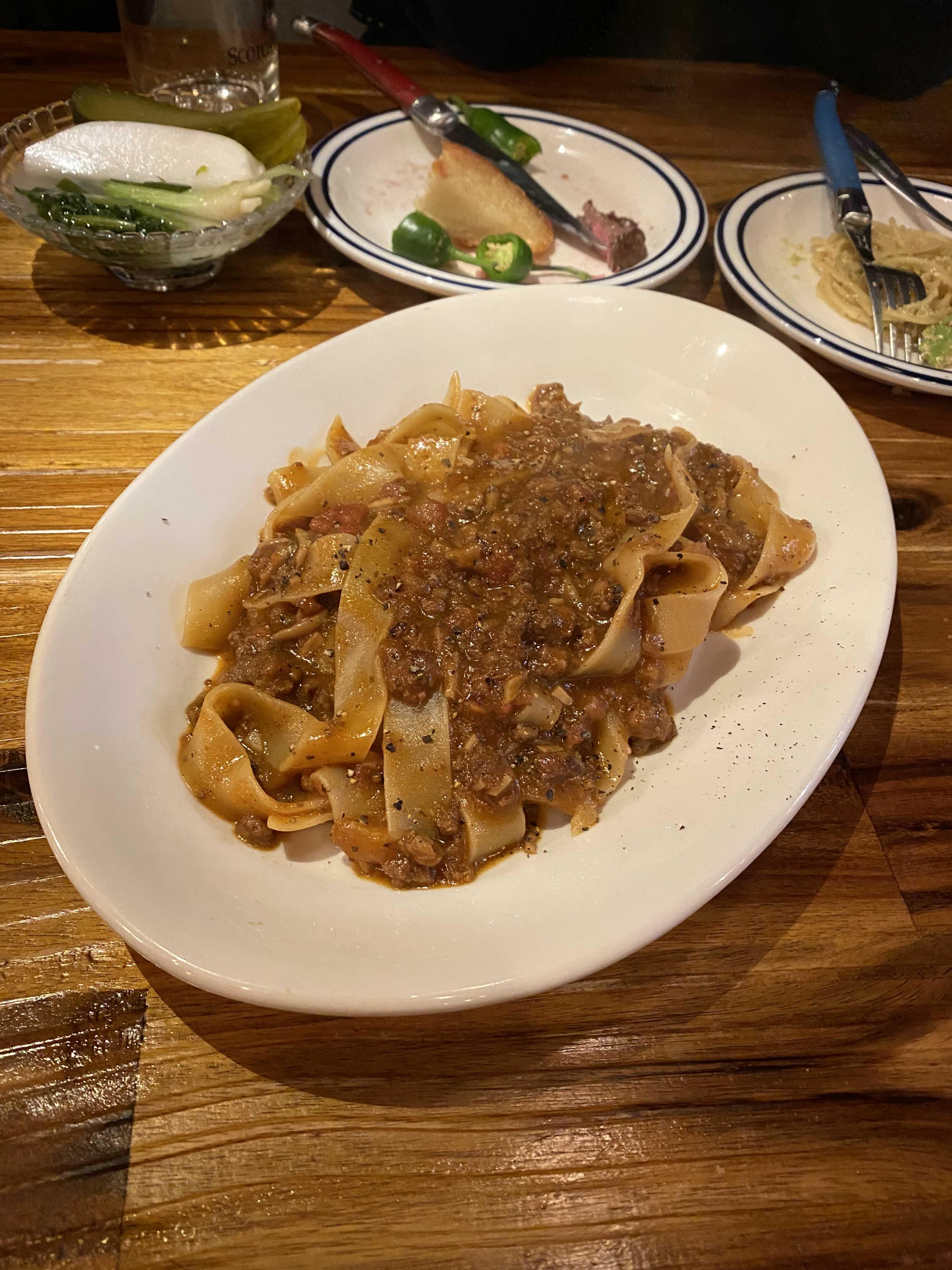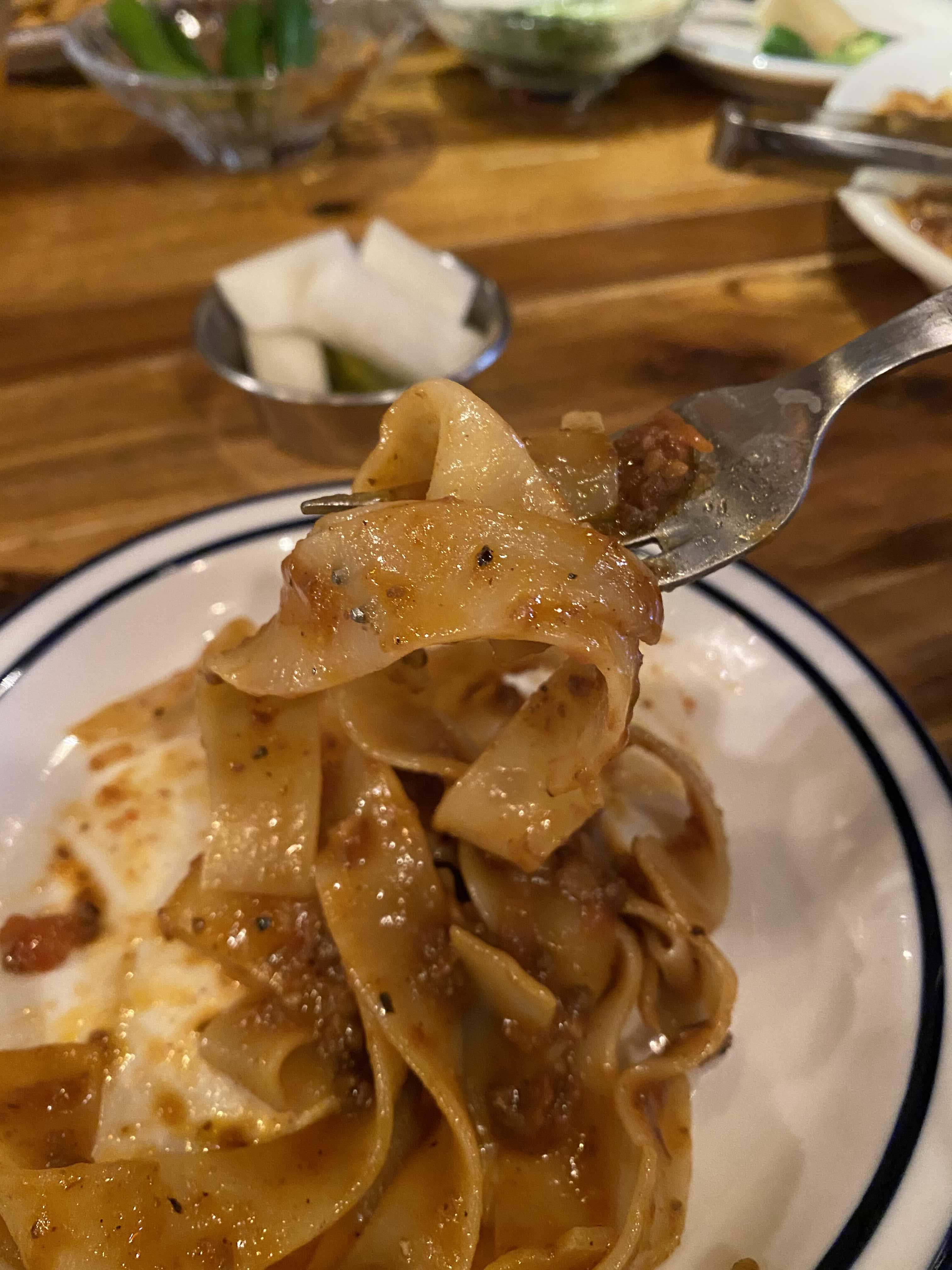 다진 한우와 토마토를 장시간 끓여 소스를 만들었다고 한다. 산미가 감돌고 고소한 맛.