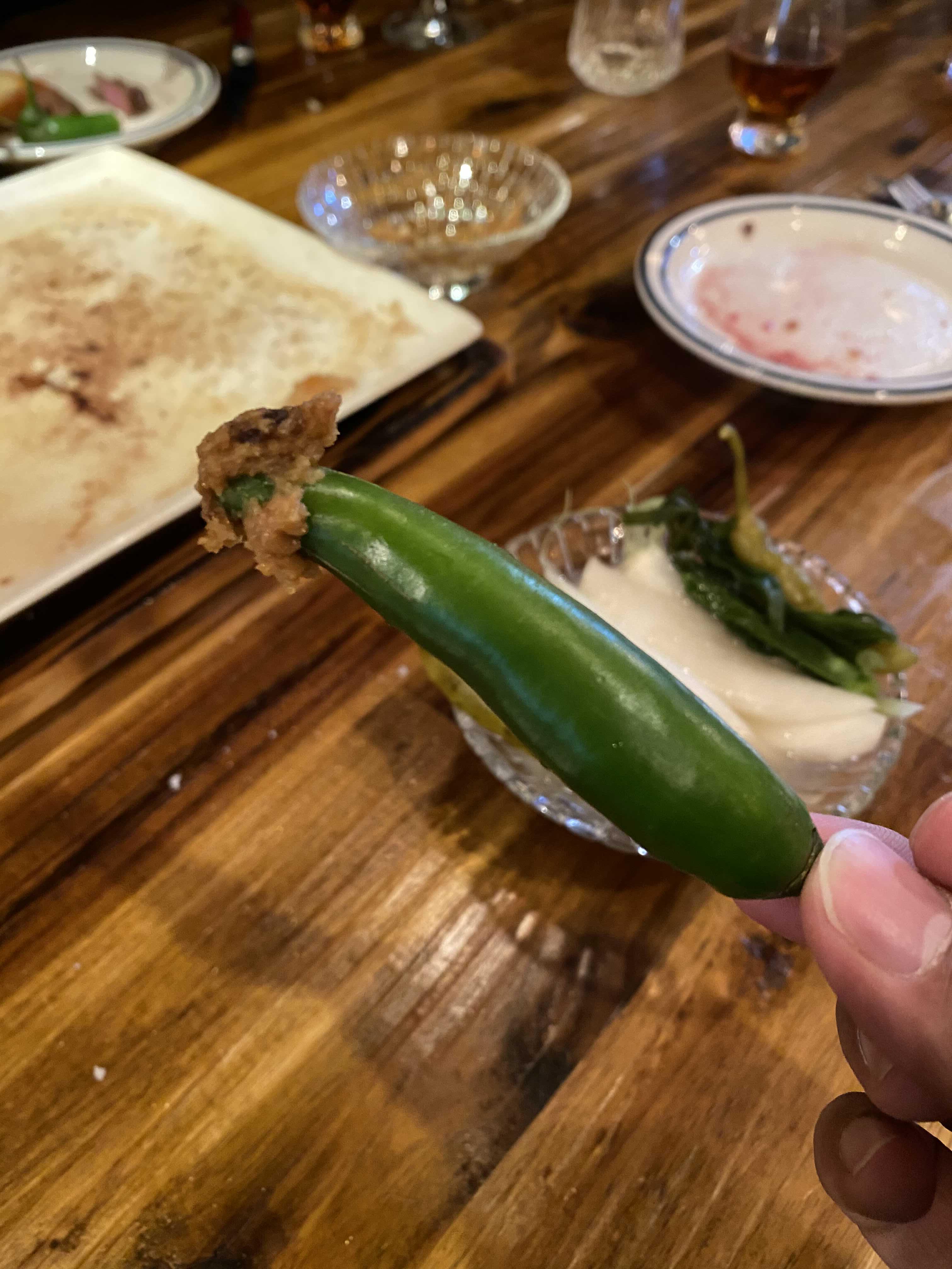 양념을 곁들이지 않고 고추를 올린 채로 맛본다.
