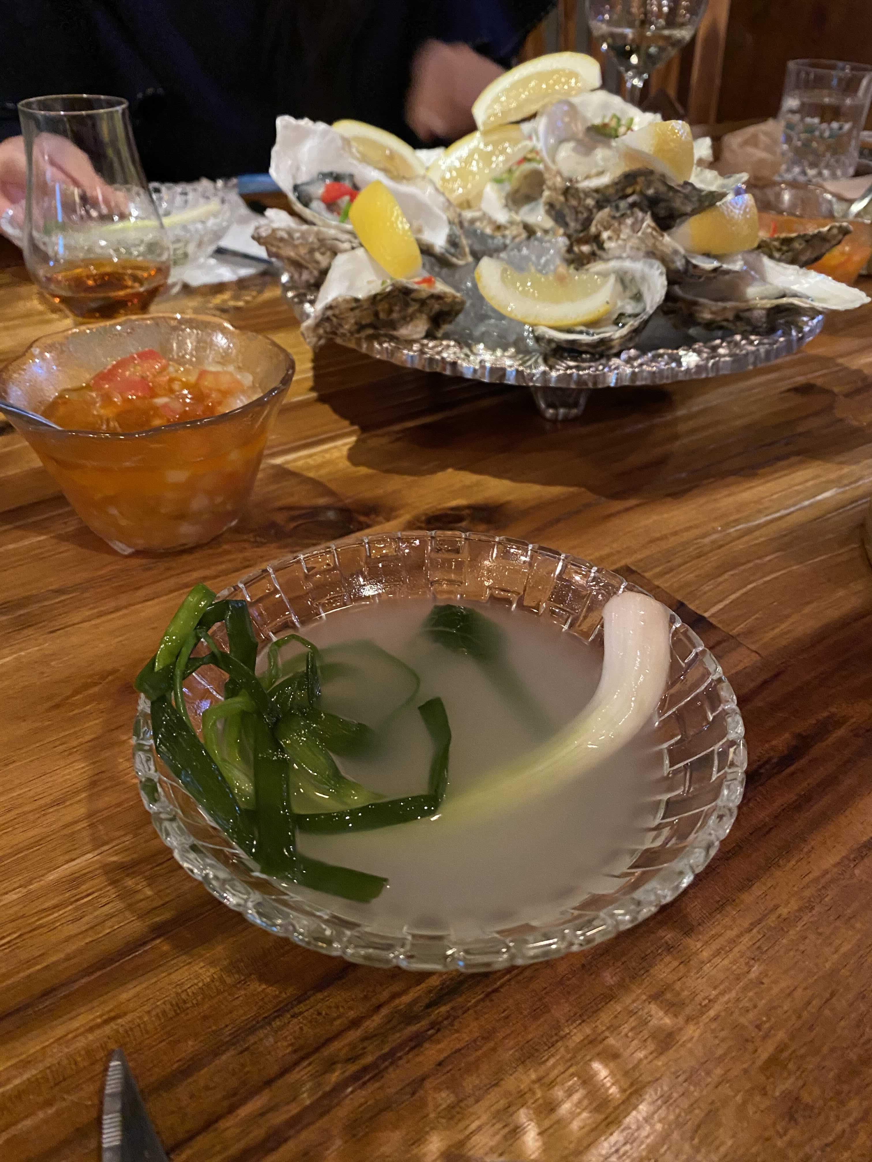 먼저 파 한 뿌리가 들어간 물김치를 내어준다.