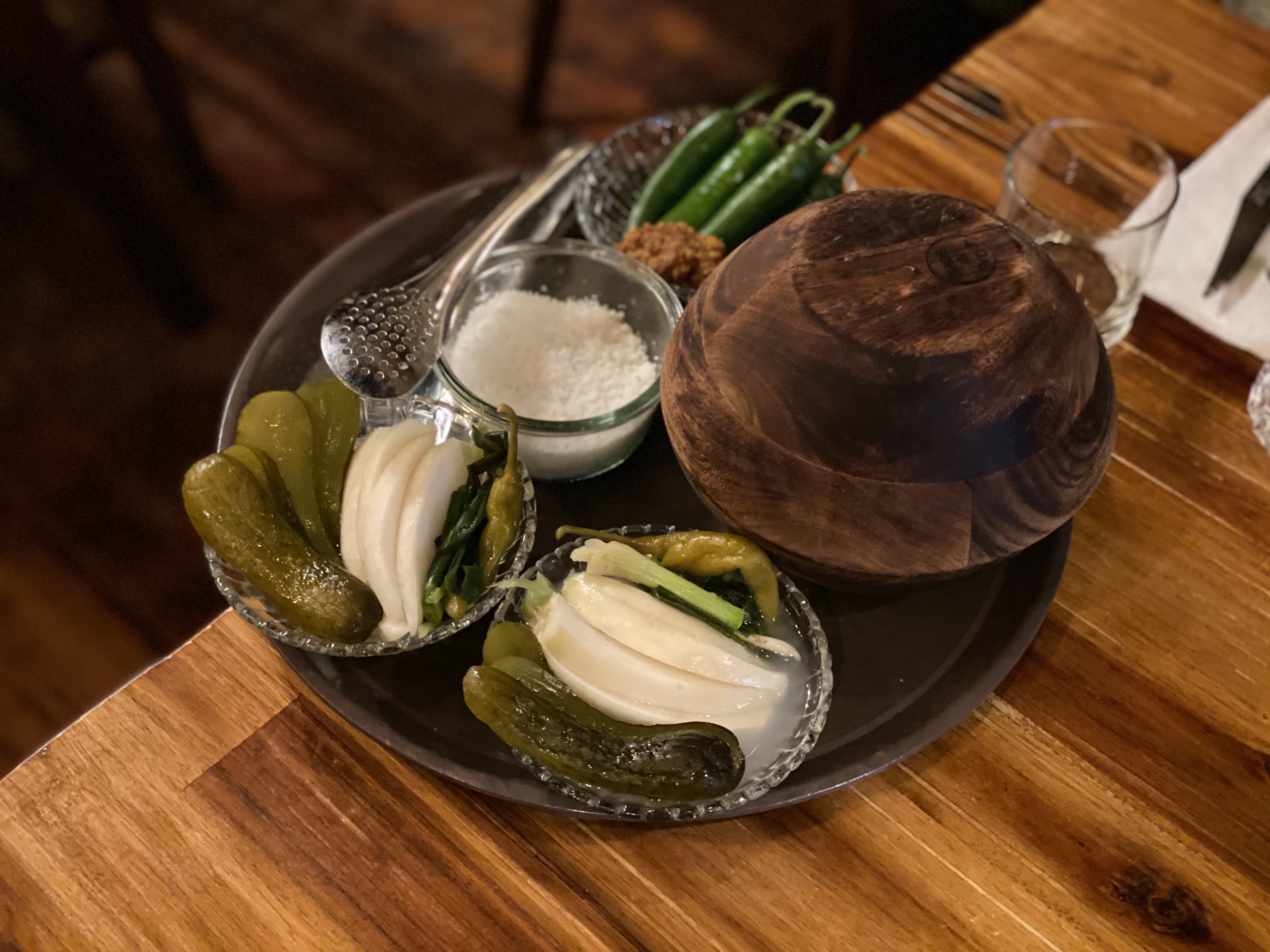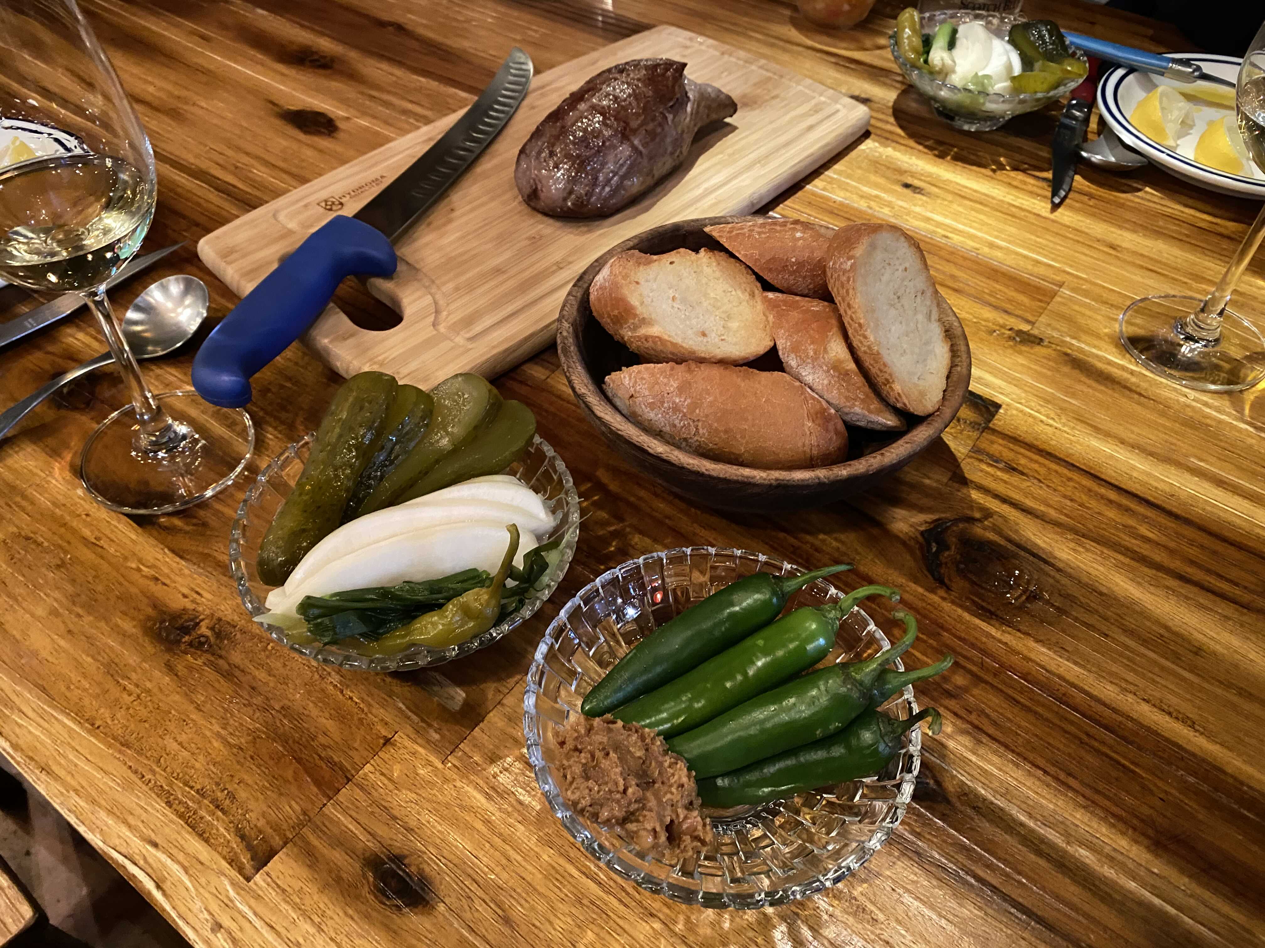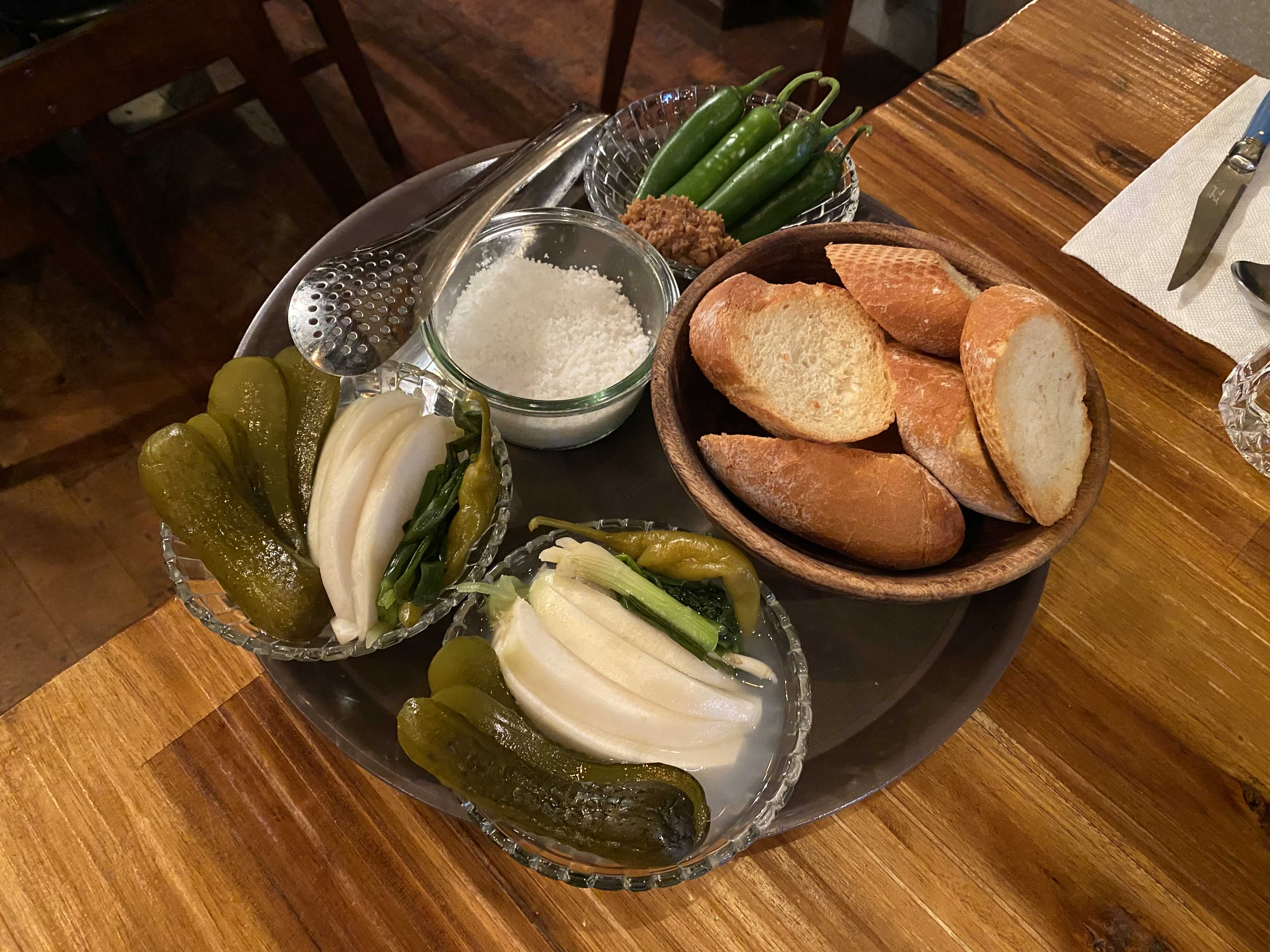 버터를 두른 스테이크와 바게트가 느끼할 수도 있으니 그걸 잡아주는 용도로 준비했다고 한다.