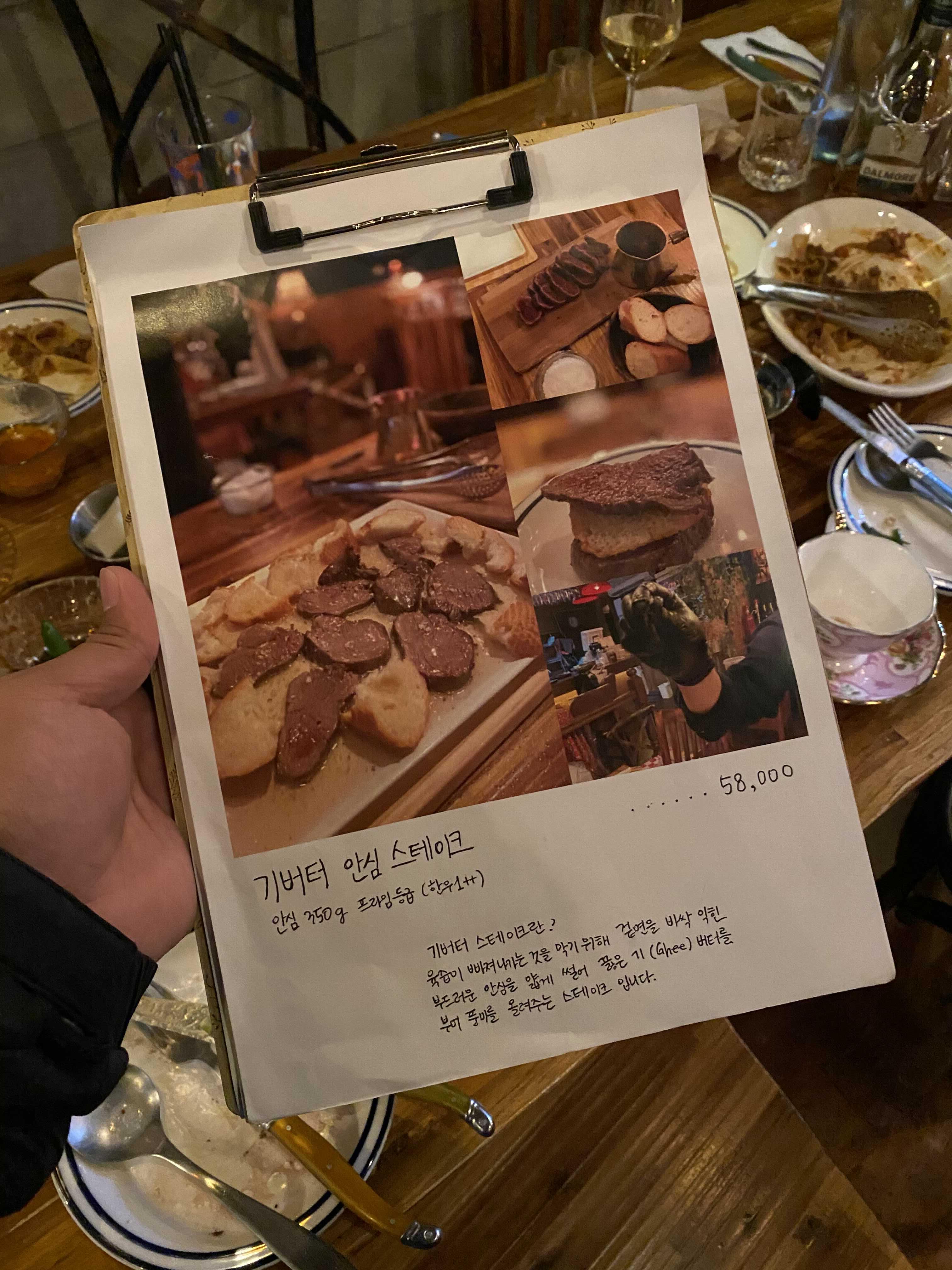 두 번째 메뉴는 오늘의 메인 메뉴, 기버터 스테이크.