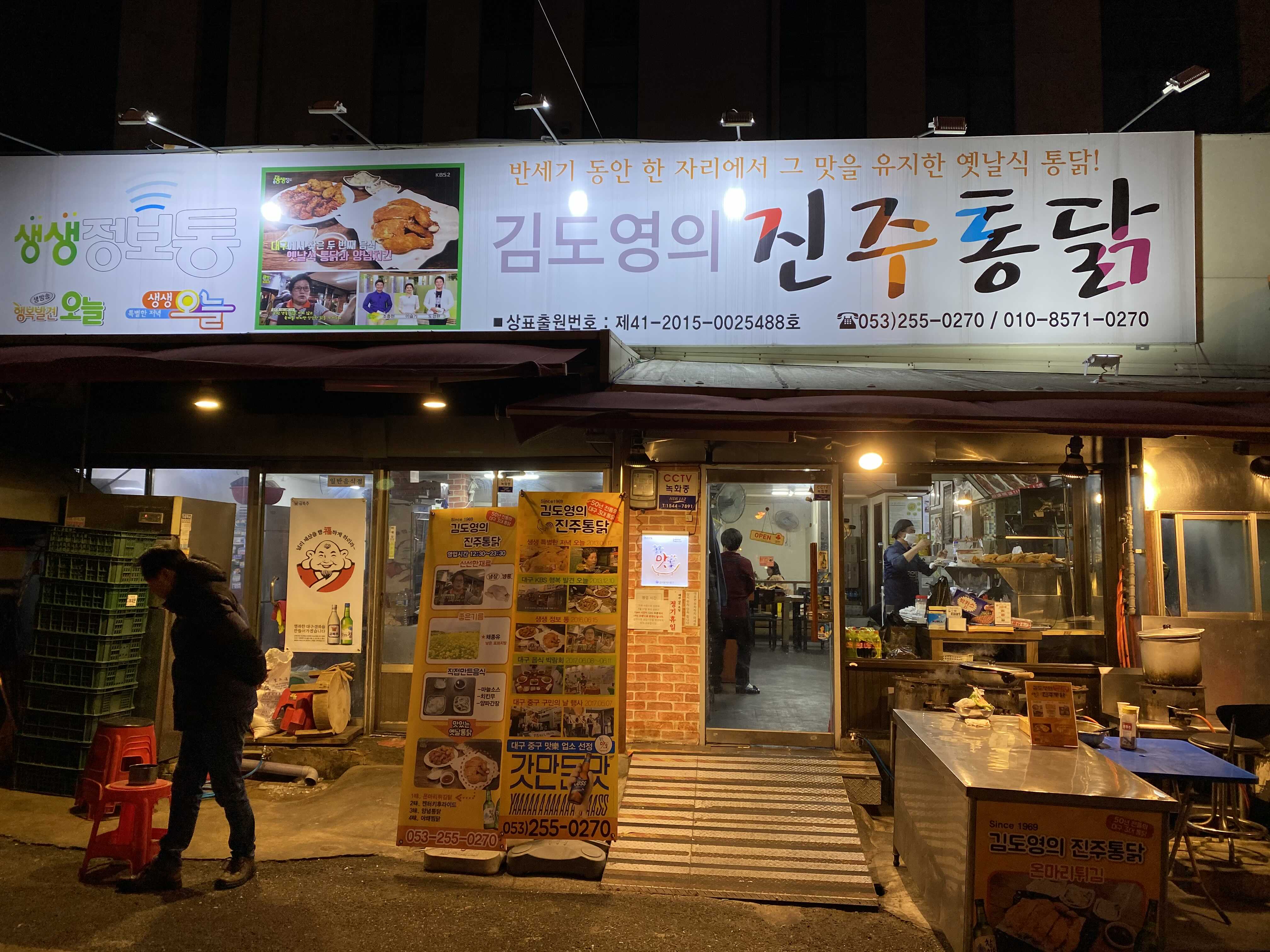 대구 남산동, 남문시장에 위치한 김도영의 진주통닭. 최근 남문시장 일대는 개발과 재정비로 정신이 없었다. 진주통닭은 뉴욕통닭, 원주통닭과 함께 대구 3대 통닭이라고도 불리는 집이다. 사실 언급한 세 집은 다 가봤지만, 대구에서 통닭집을 많이 가본 것이 아니기에 그 부분에 대해 언급하기는 어렵겠다.