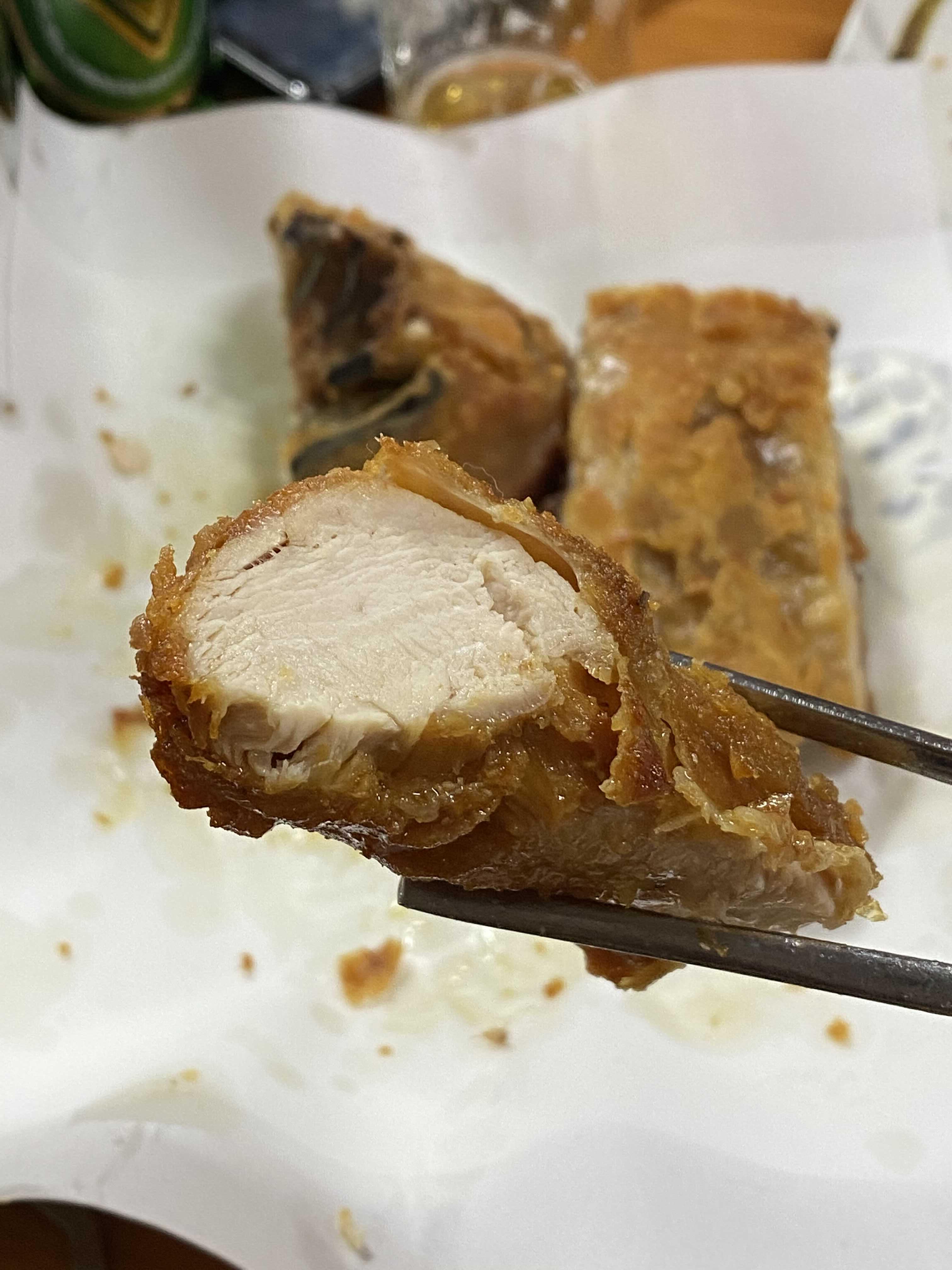 튀김옷이 얇은데도 바싹바싹하다. 이 식감과 튀김옷이 부서지는 소리에 기분이 좋아지고, 더 맛있게 느껴진다.