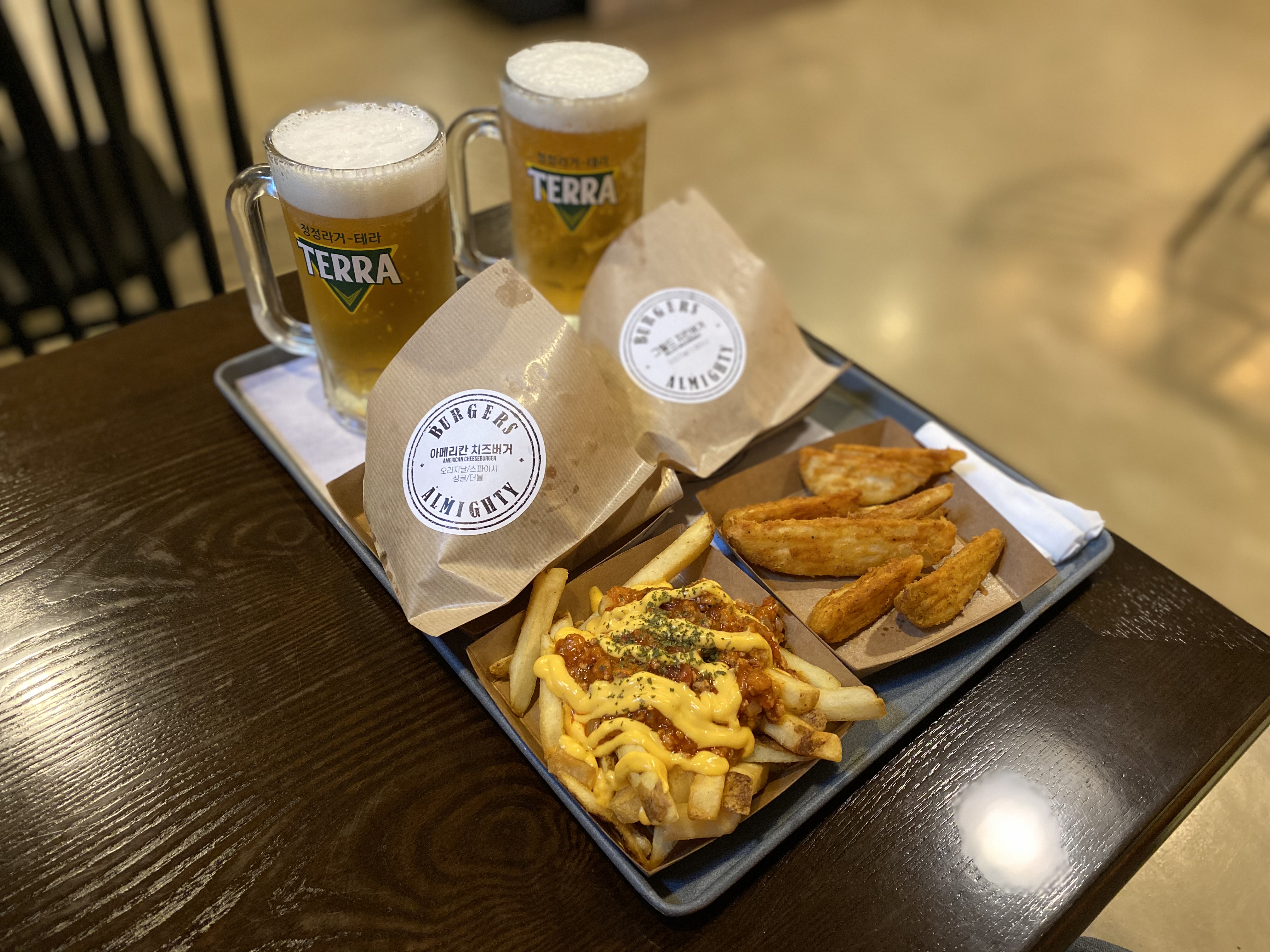 지인이 서면에 미국인 사장님이 운영하는 햄버거집이 있다며 먹어보자고 한다. 내게 당시 기억을 떠올려 보라며 아메리칸 치즈버거 더블로 주문해 줬다. 음료는 밀크쉐이크 대신 맥주 한 잔. 술이 곁들여지면 어떤 느낌일지 궁금하다.