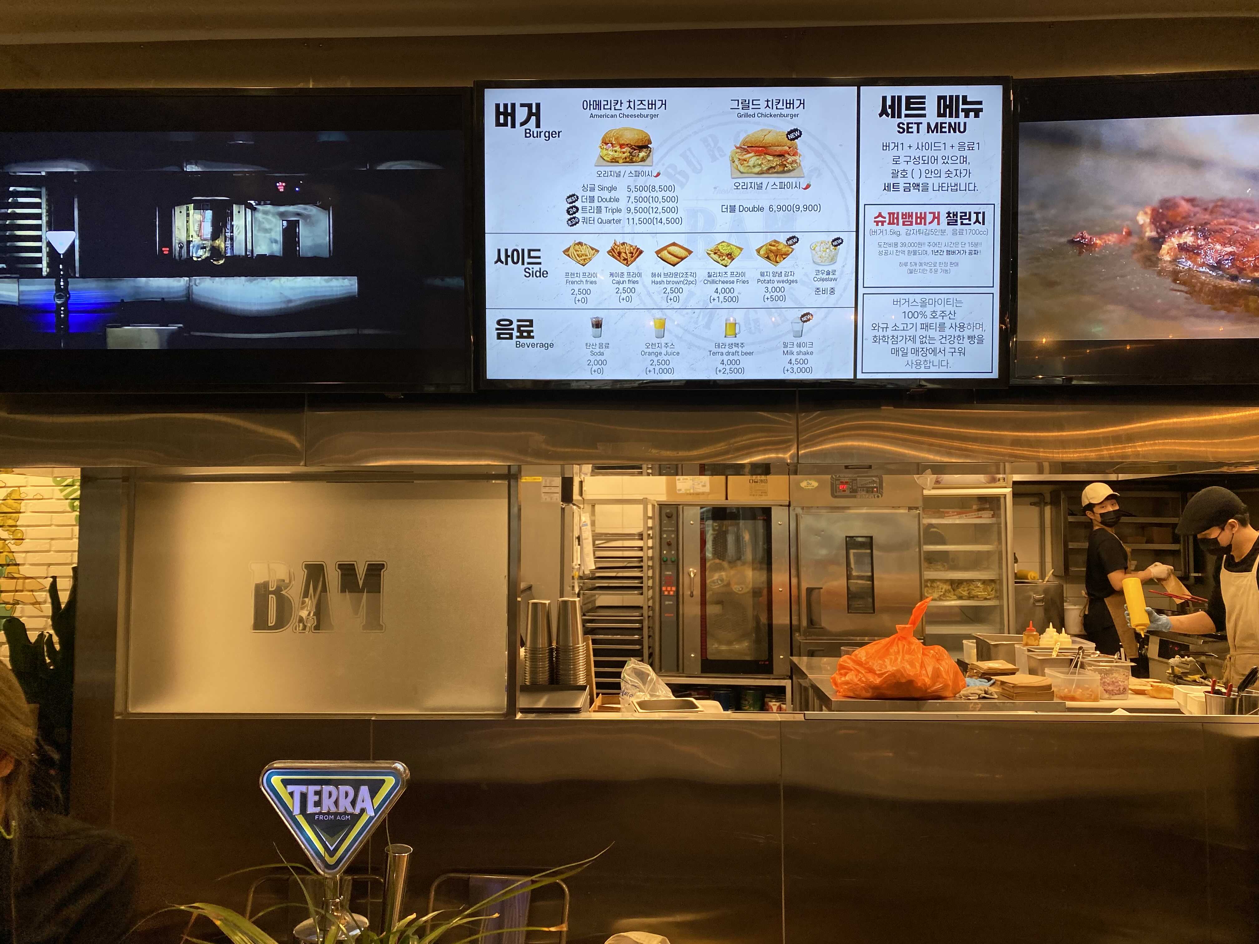 미국스타일을 표방하는 수제 햄버거, 좋은 재료를 사용해 햄버거를 만드는 모습도 보기 좋고, 오랜만에 먹은 햄버거라 더 맛있게 먹을 수 있어 좋았다. 탄산감 있는 시원한 맥주 한잔이 곁들여져 더 좋았을지도 모르겠다. 파이브가이즈의 기억처럼 밀크쉐이크를 곁들였더라면 또 한동안 생각나지 않는 햄버거였을지도. 그만큼 패티의 촉촉함도 육향도 좋았다.