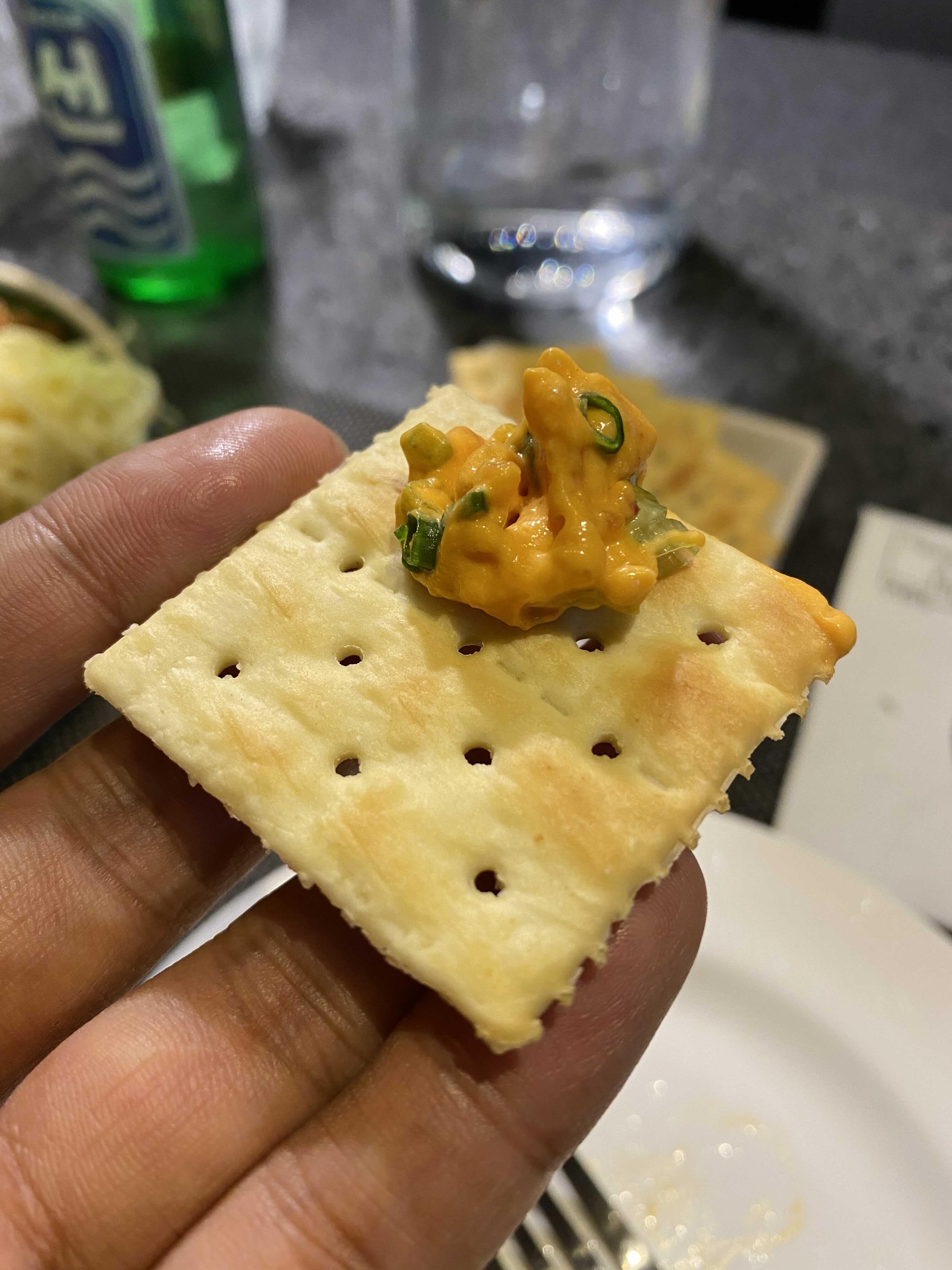 크래커에 치즈를 올려 한 잔.