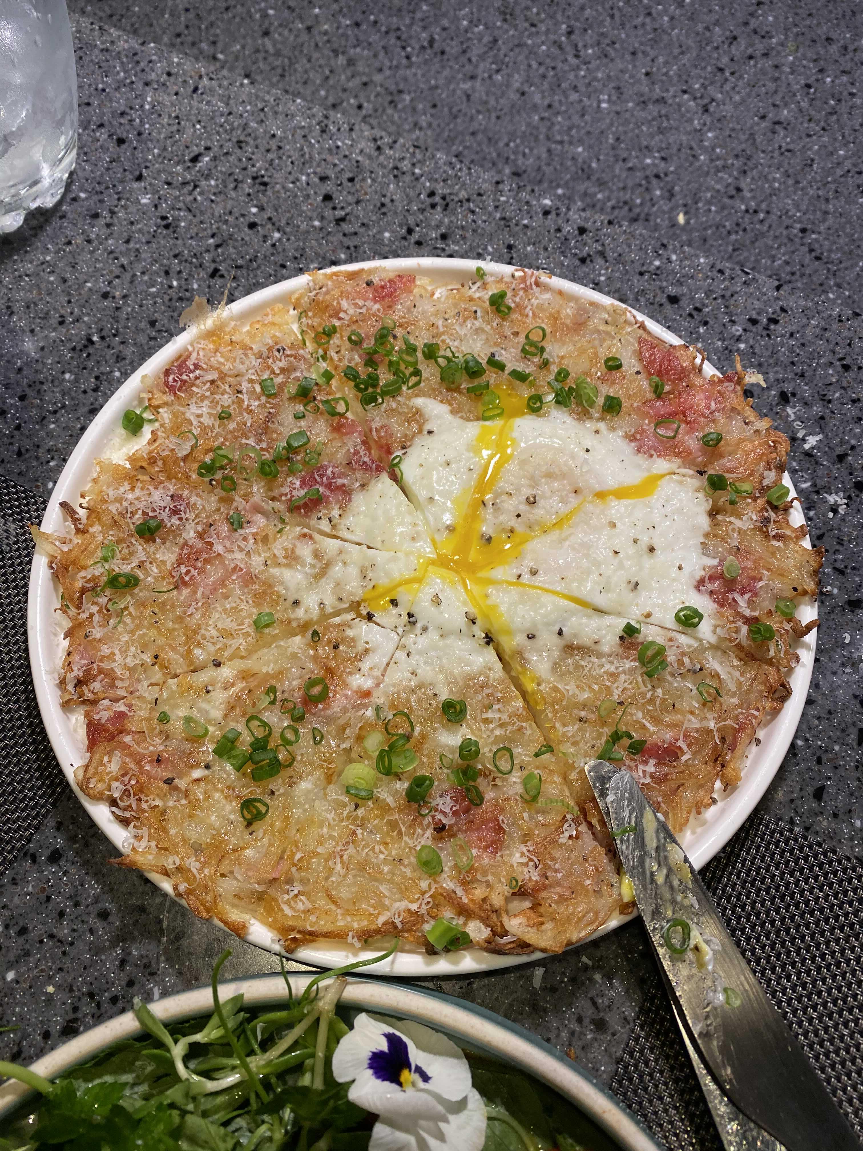 감자와 베이컨을 구워서 위에 계란을 올렸다.