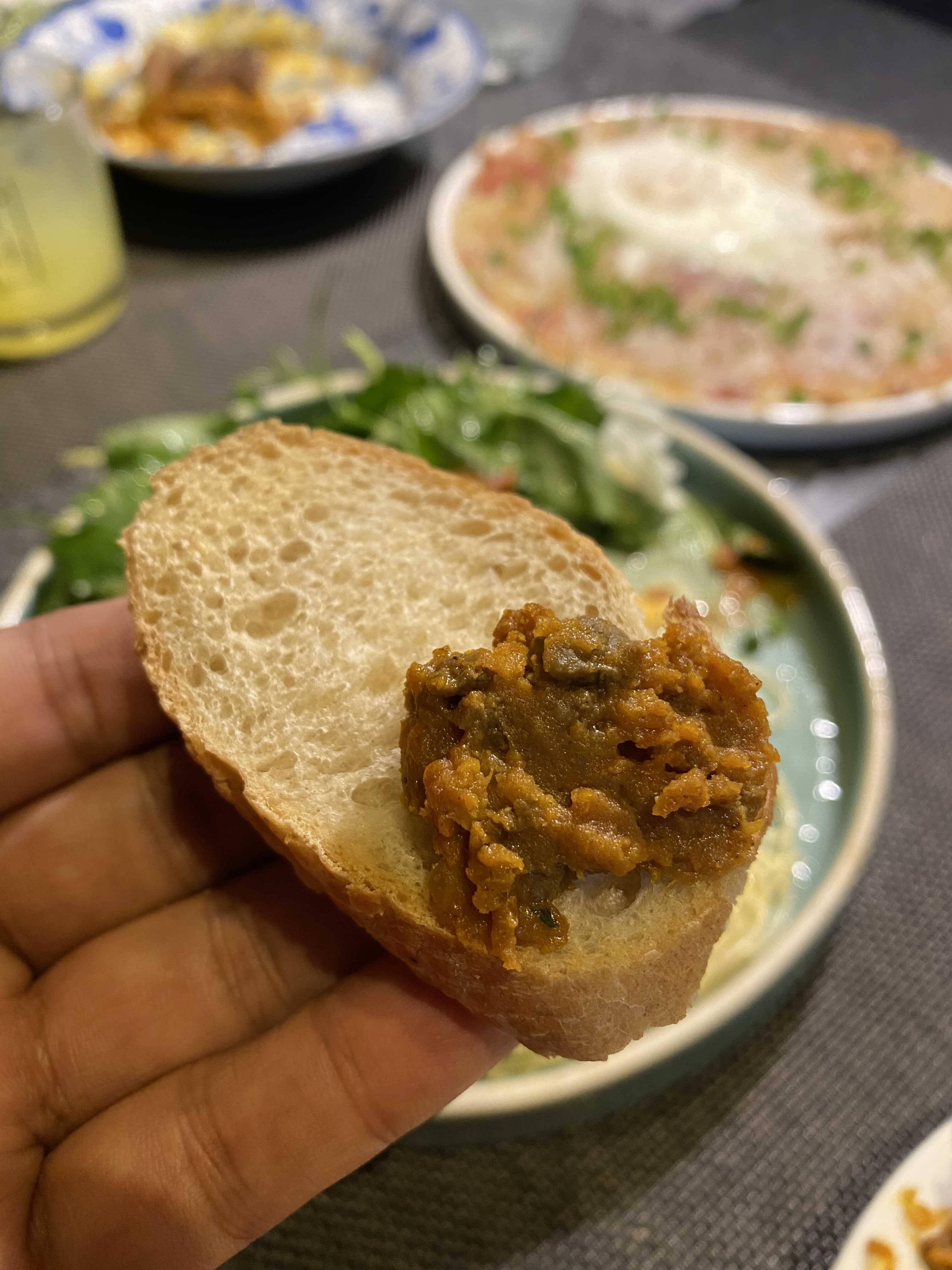 친구가 혼자 먹고 있던 드라이카레와 구운바게트.