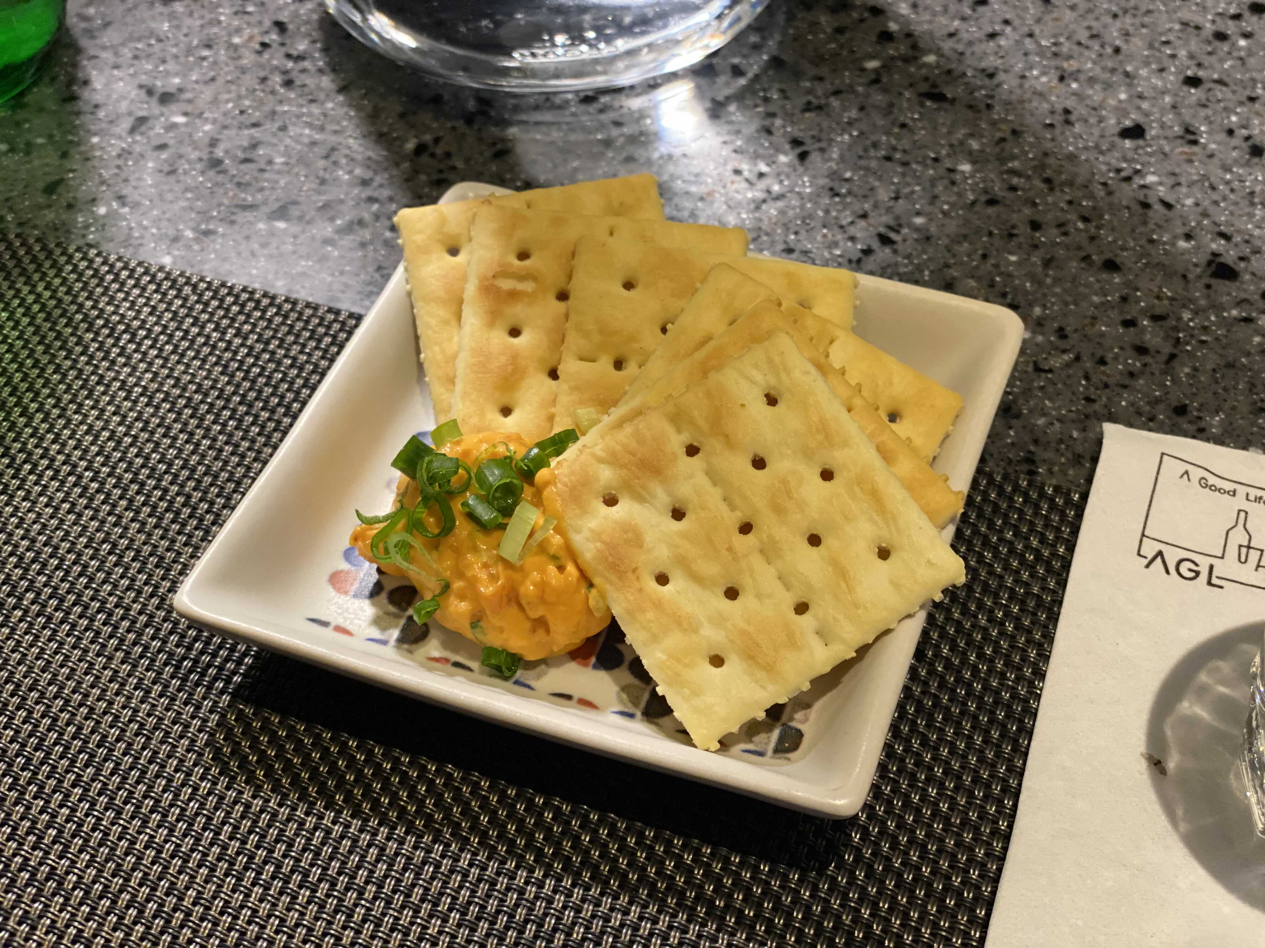 크래커에 치즈를 올려 한 잔.