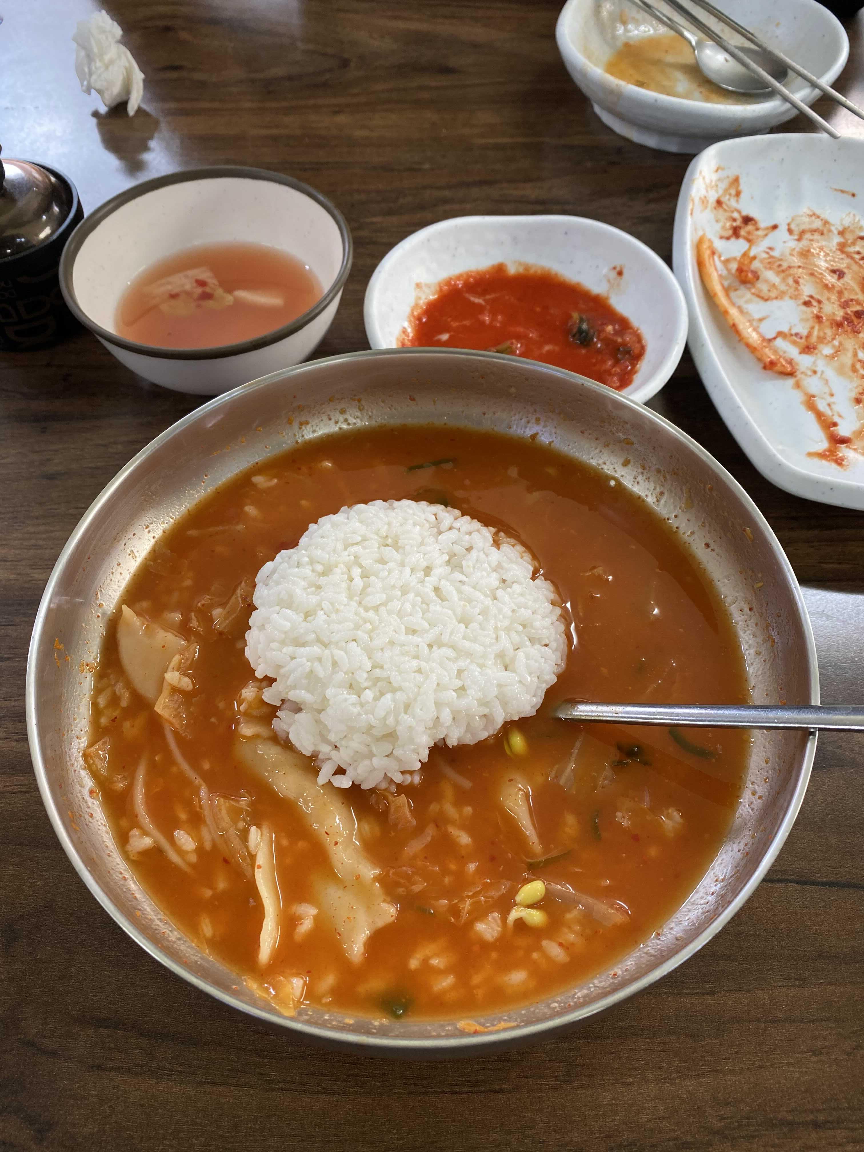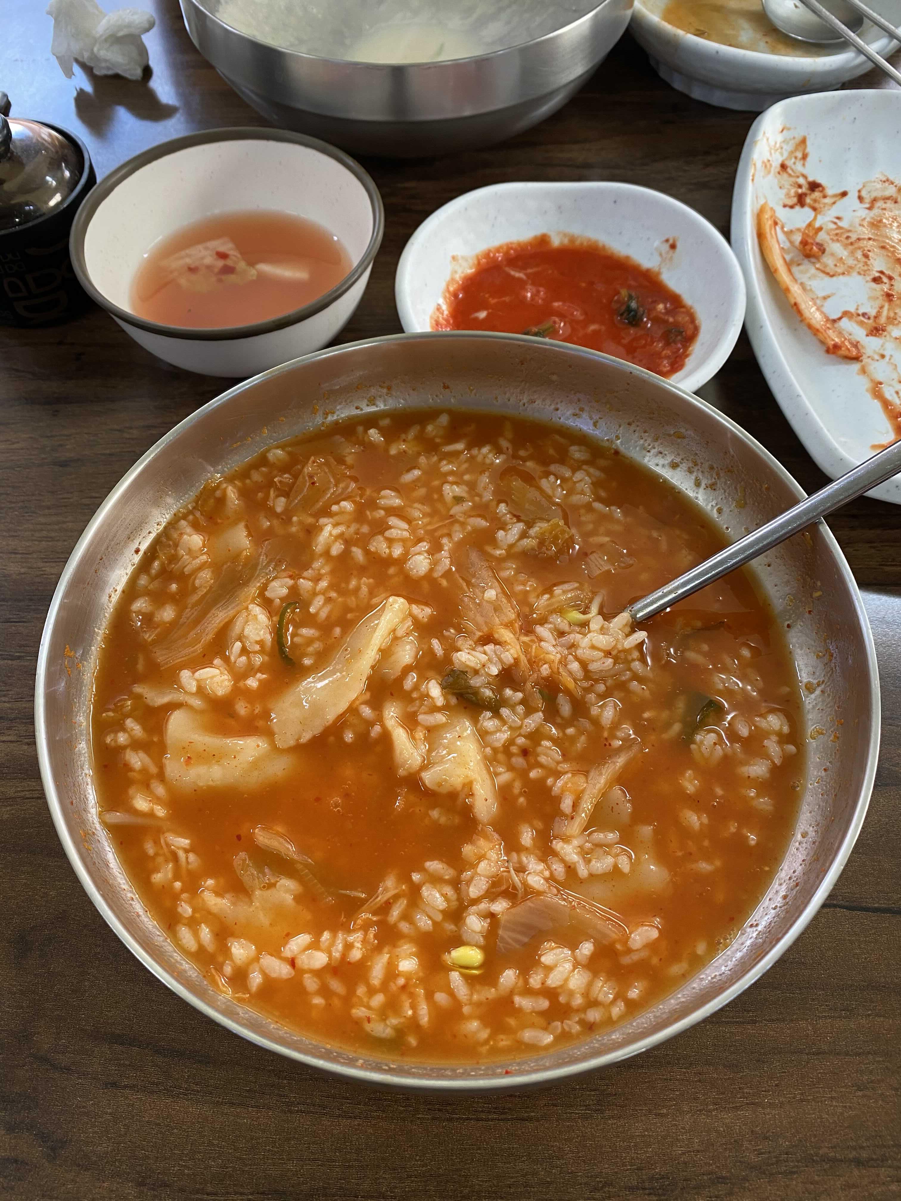 김치 더 가져다 먹기엔 뭔가 애매하고 귀찮고, 그래도 나에겐 김치국밥 국물이 있다.