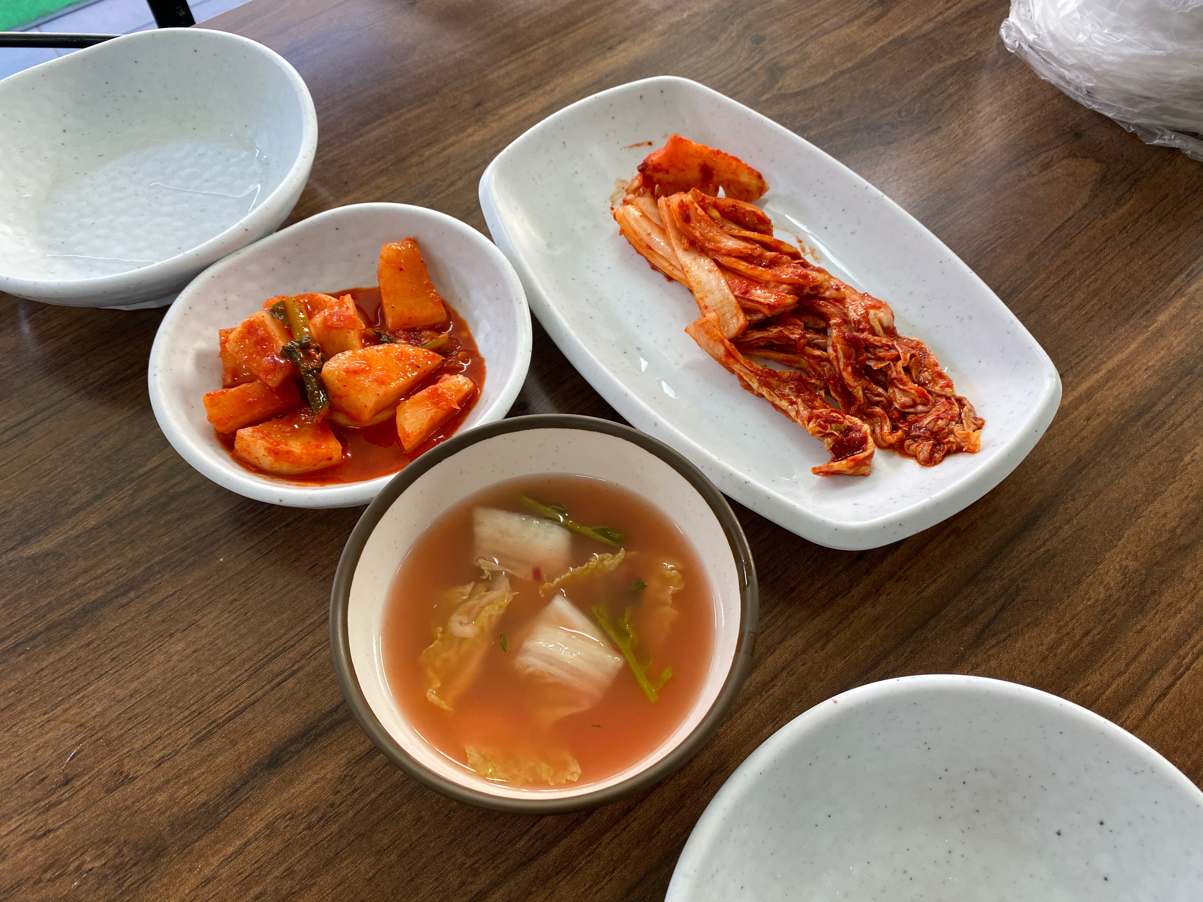 메인메뉴만큼이나 유명한 김치 3종. 배추김치, 총각무김치, 물김치는 따로 판매할 정도로 김치부심이 있는 집이다.