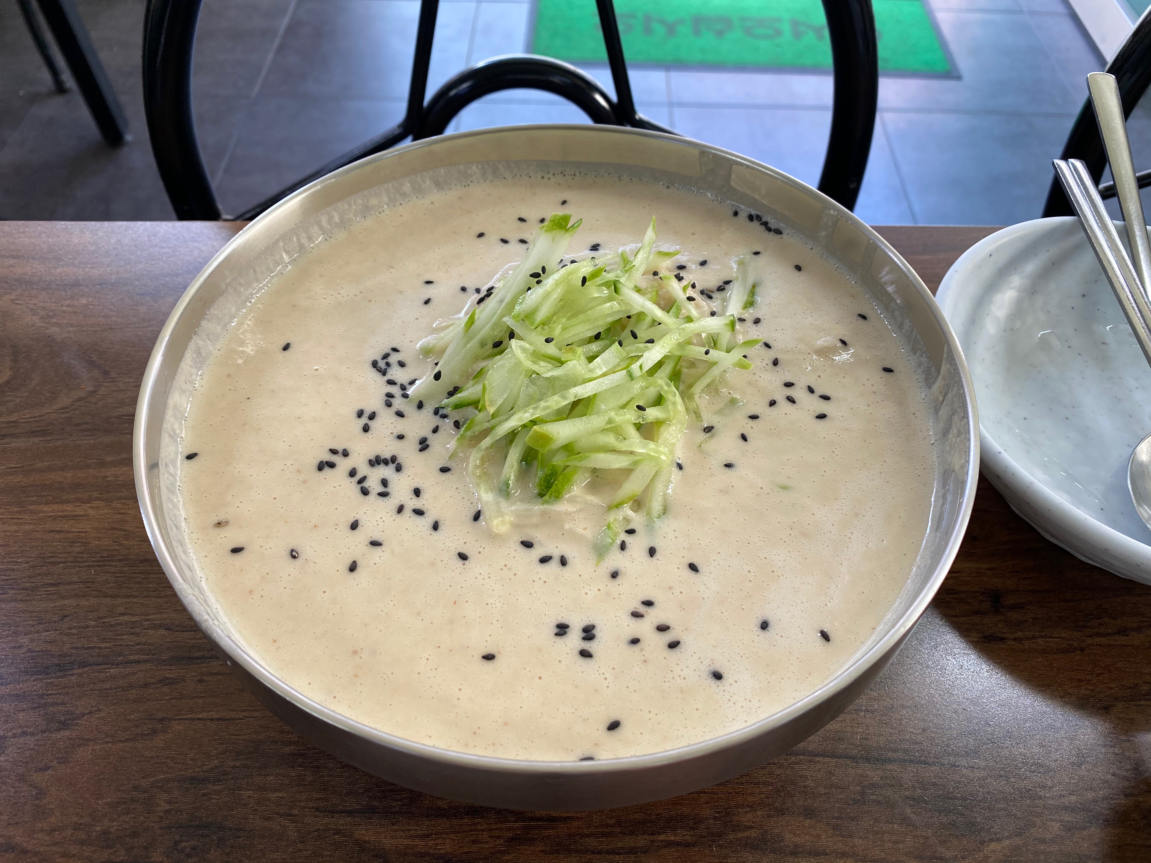음식이 나왔는데 친구는 올 생각을 안한다. 콩국수는 면발이 가늘기에 불어버릴까 걱정도 됐지만, 사진 찍다 보면 오겠지 싶었다.