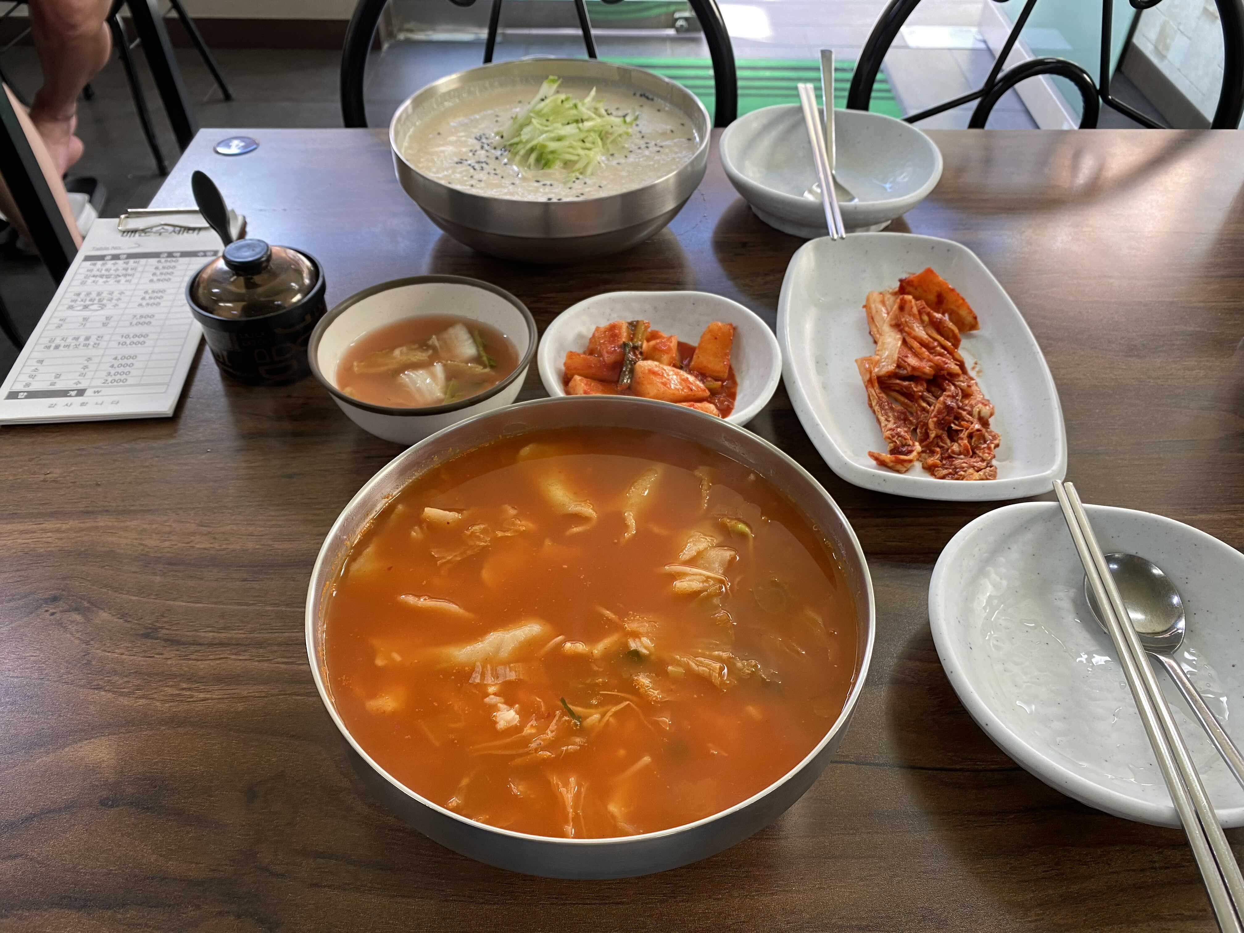 이 날은 집나간 입맛을 잡으려고 김치국밥수제비 주문. 아직 식사전이라는 친구는 전화로 콩국수를 주문했다.