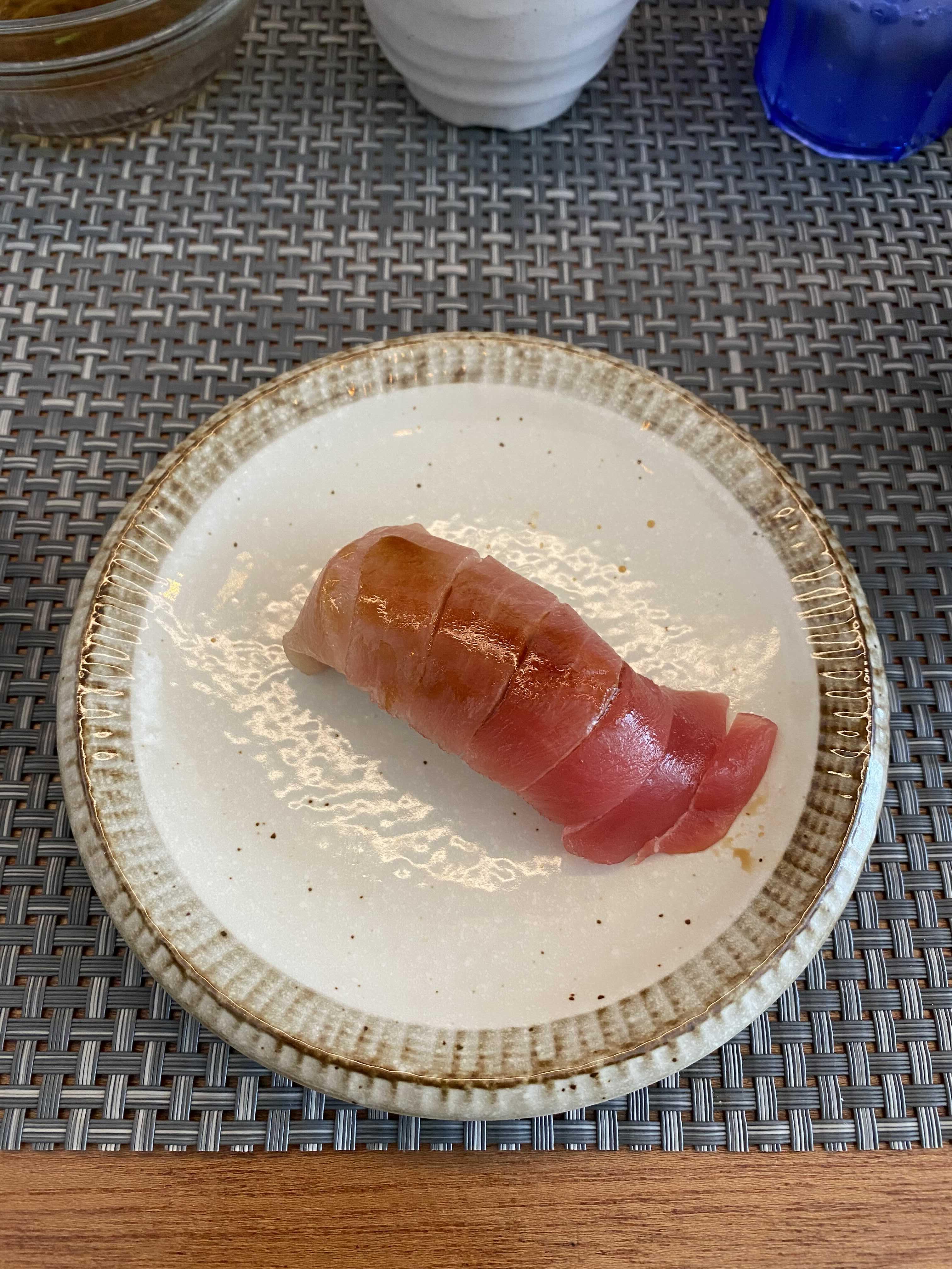생참치 중뱃살. 기름지고 고소한 부위. 와사비를 더 올려 먹어도 맛이 좋다.