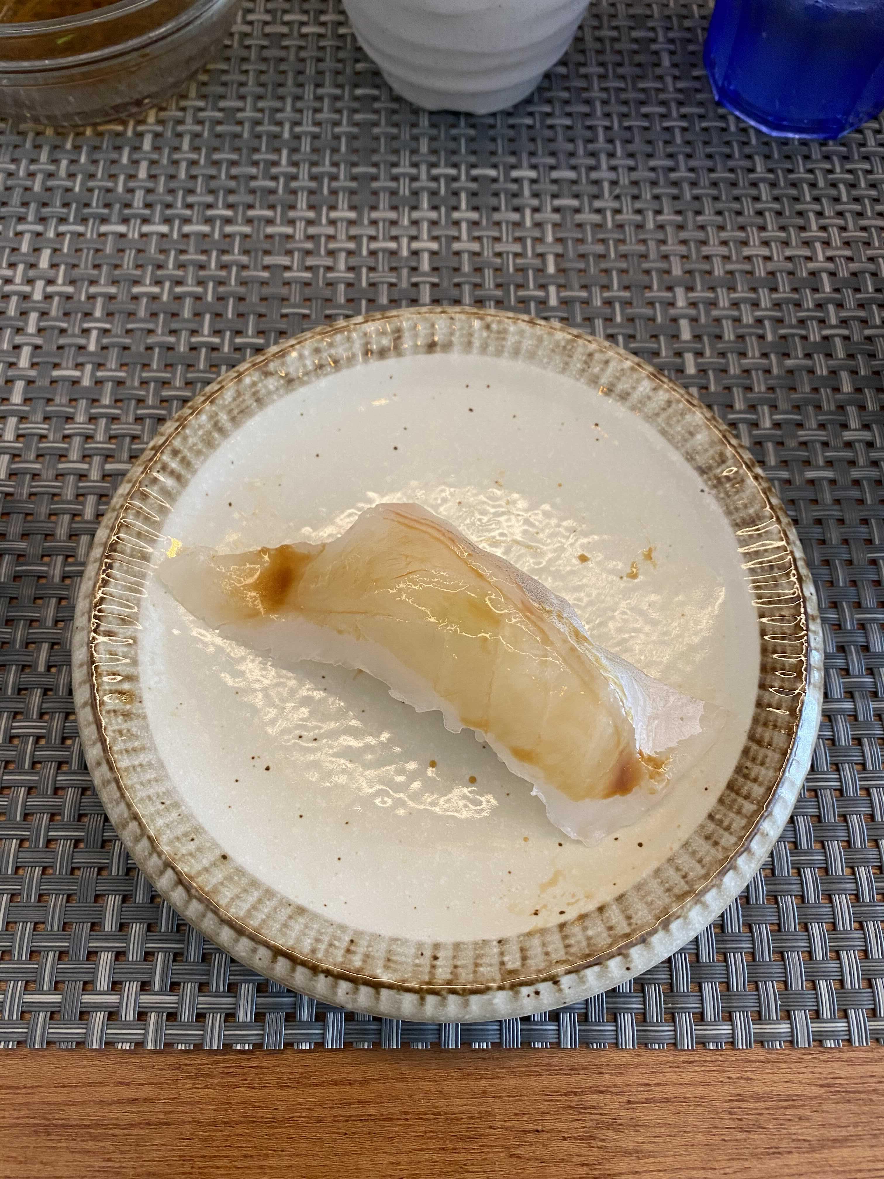 먹다가 한 판을 더 주문했다. 12피스짜리 이에스시를 먹기엔 아직 대식가가 아니라서 힘들다고 생각했고, 6피스짜리 광어, 생연어초밥을 주문했는데 광어대신 그 날의 추천 생선인 농어로 구성되는데 괜찮냐고 했다.