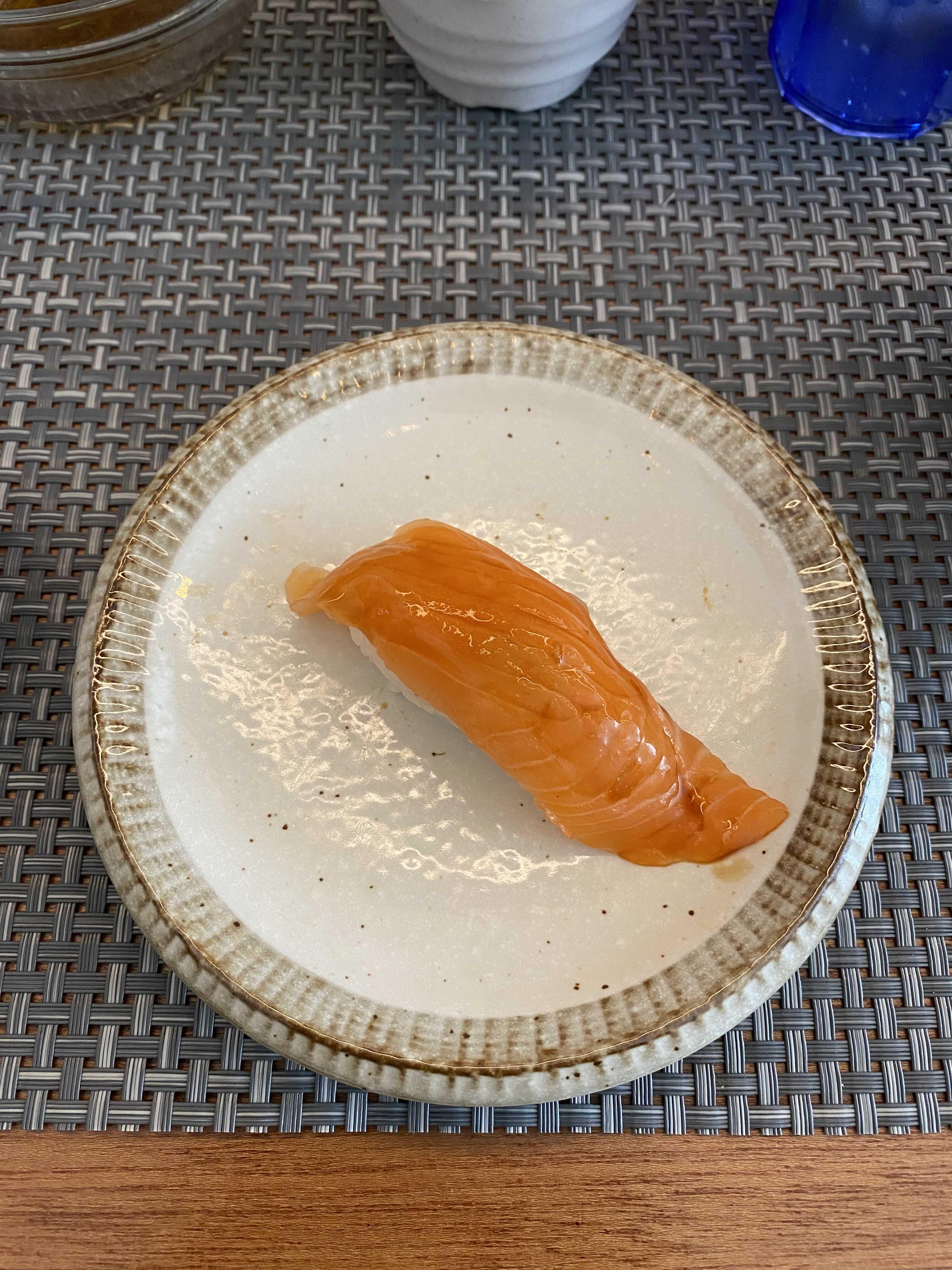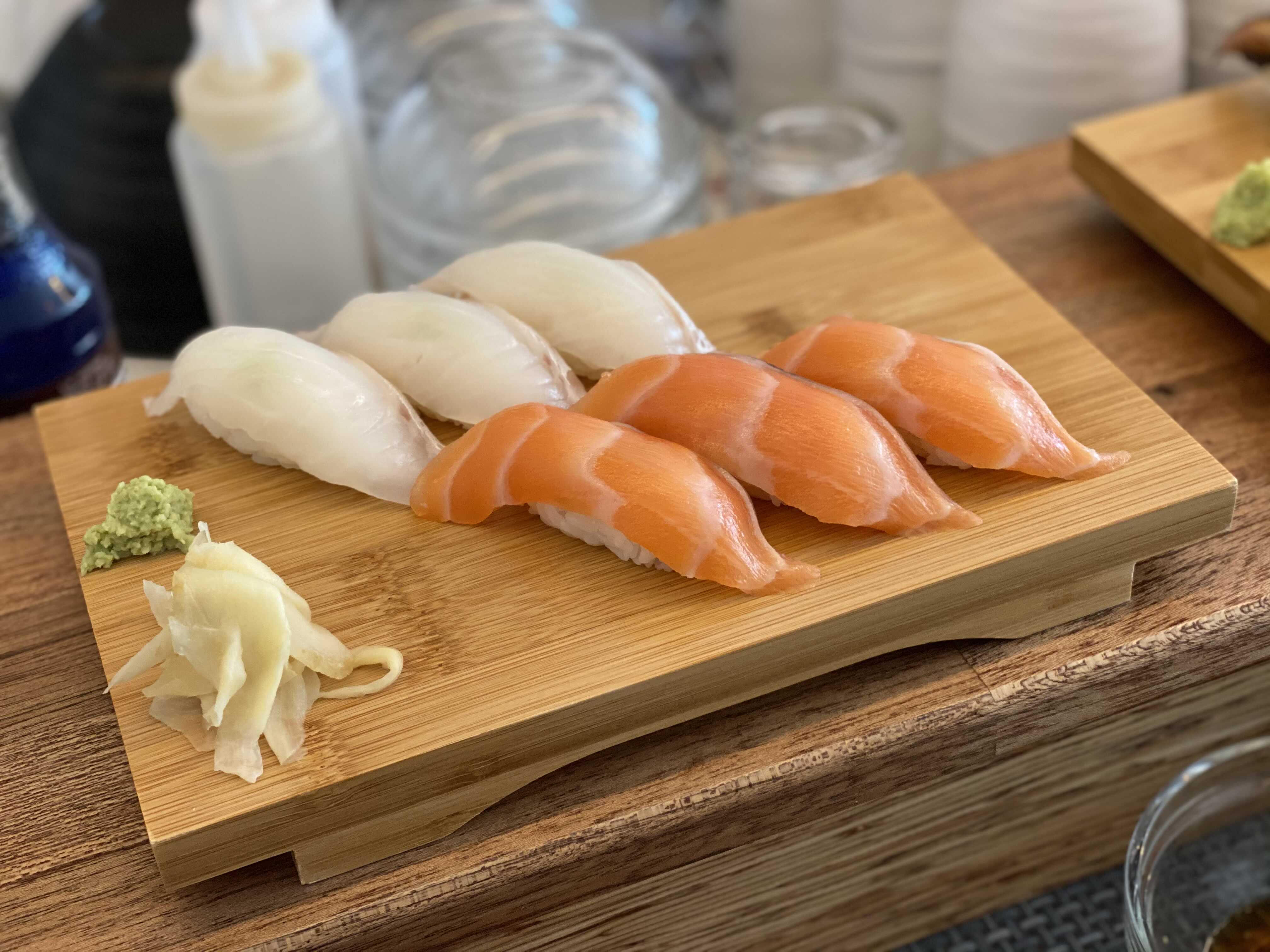 먹다가 한 판을 더 주문했다. 12피스짜리 이에스시를 먹기엔 아직 대식가가 아니라서 힘들다고 생각했고, 6피스짜리 광어, 생연어초밥을 주문했는데 광어대신 그 날의 추천 생선인 농어로 구성되는데 괜찮냐고 했다.
